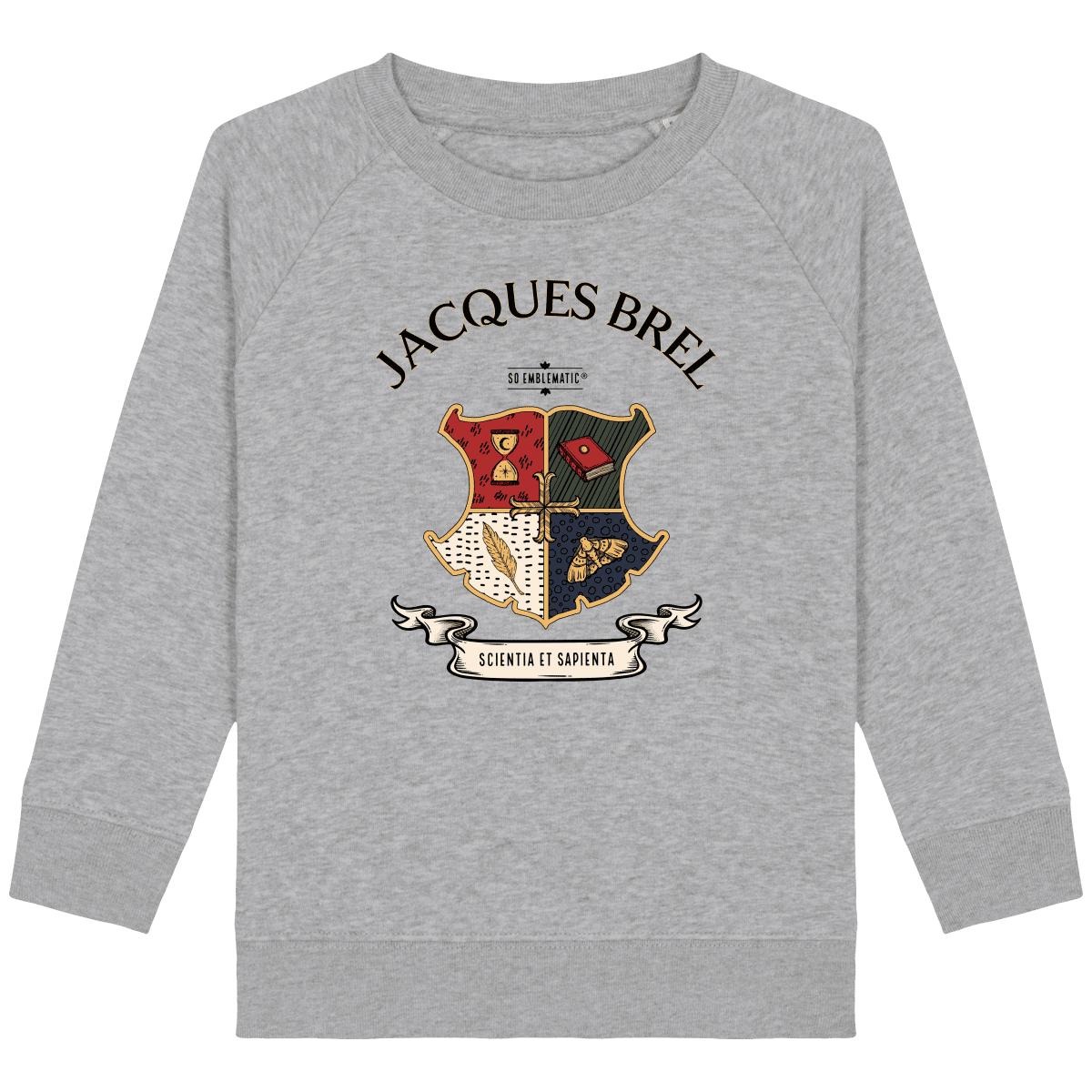 Sweat Enfant BLASON ECOLE JACQUES BREL. Sweat enfant col rond en coton BIO de la marque STANLEY STELLA. Manches raglan, Col en côte 1×1. Bande de propreté intérieur col en jersey. 1/2 lune intérieur col dans la matière principale, Côte 1×1 au bas de manches et bas de corps. Surpiqûre double aux emmanchures, bas de manches et bas de corps. Sweat intérieur en molleton non brossé (non duveteux). 85% coton biologique filé et peigné, 15% polyester recyclé. Coupe normale du 3/4 ans au 12/14 ans. 300 G/M².