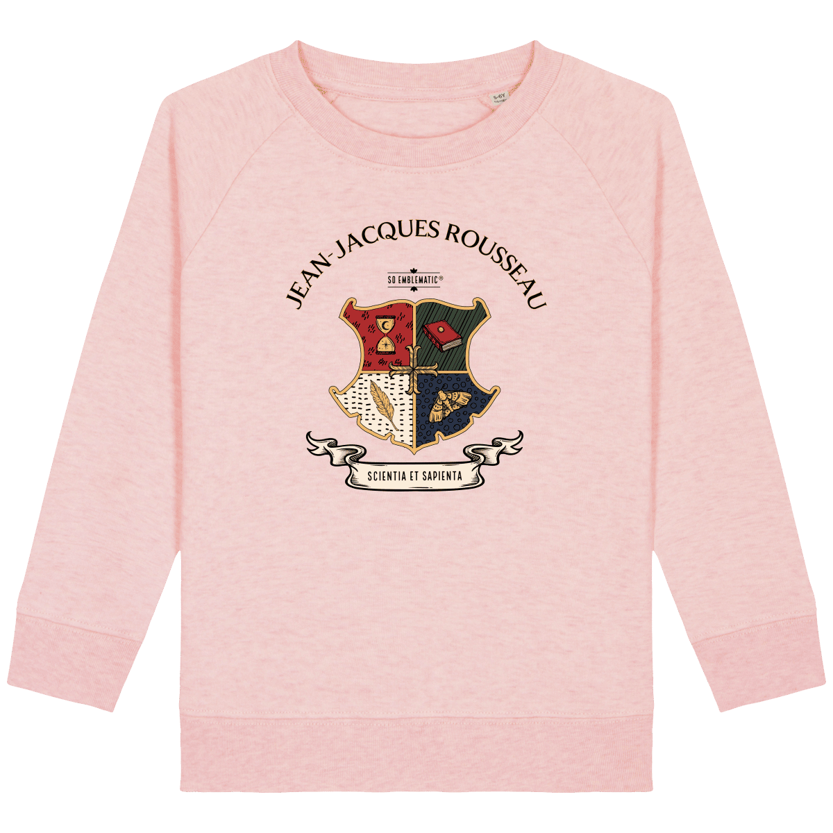 Sweat Enfant BLASON ECOLE JEAN-JACQUES ROUSSEAU. Sweat enfant col rond en coton BIO de la marque STANLEY STELLA. Manches raglan, Col en côte 1×1. Bande de propreté intérieur col en jersey. 1/2 lune intérieur col dans la matière principale, Côte 1×1 au bas de manches et bas de corps. Surpiqûre double aux emmanchures, bas de manches et bas de corps. Sweat intérieur en molleton non brossé (non duveteux). 85% coton biologique filé et peigné, 15% polyester recyclé. Coupe normale du 3/4 ans au 12/14 ans. 300 G/M².