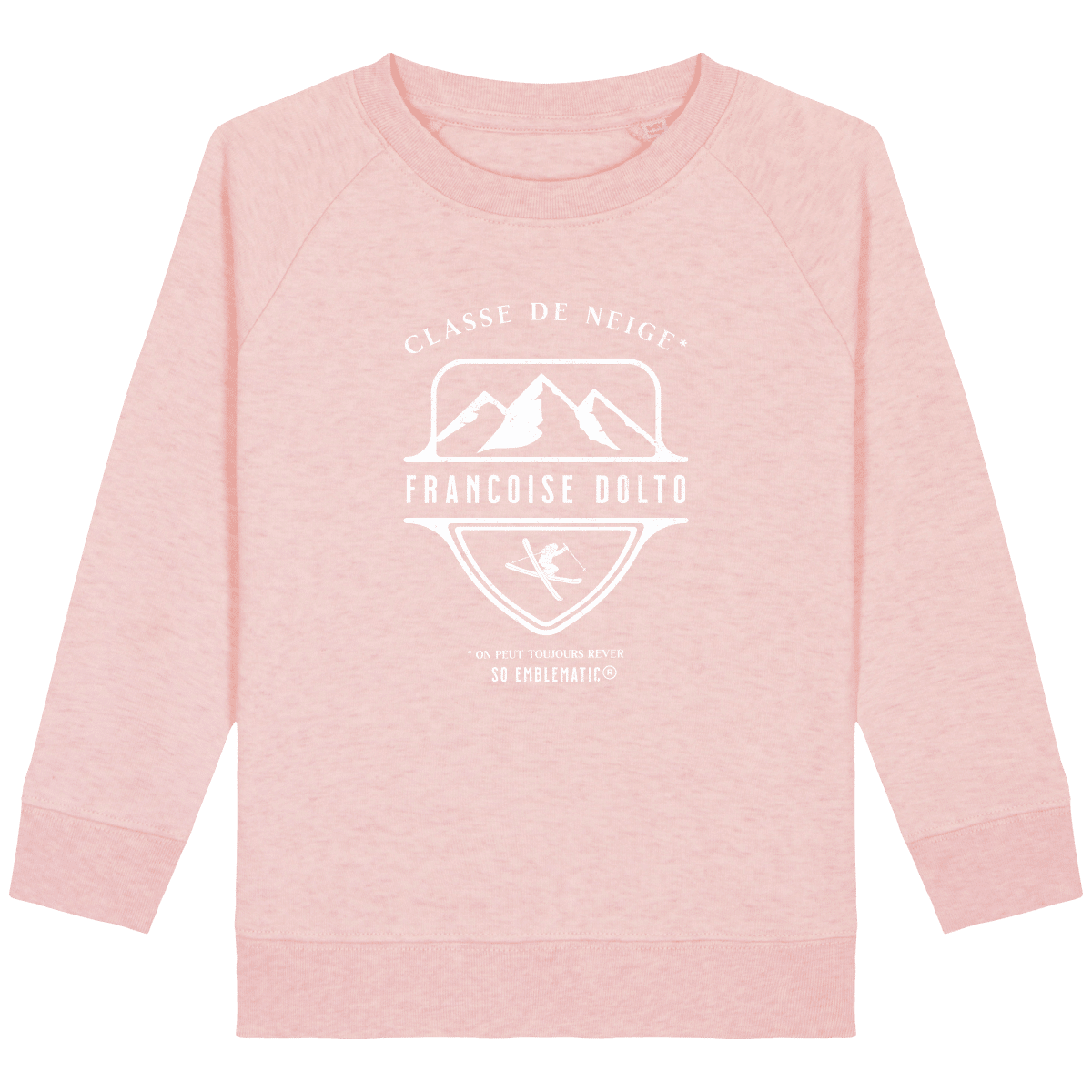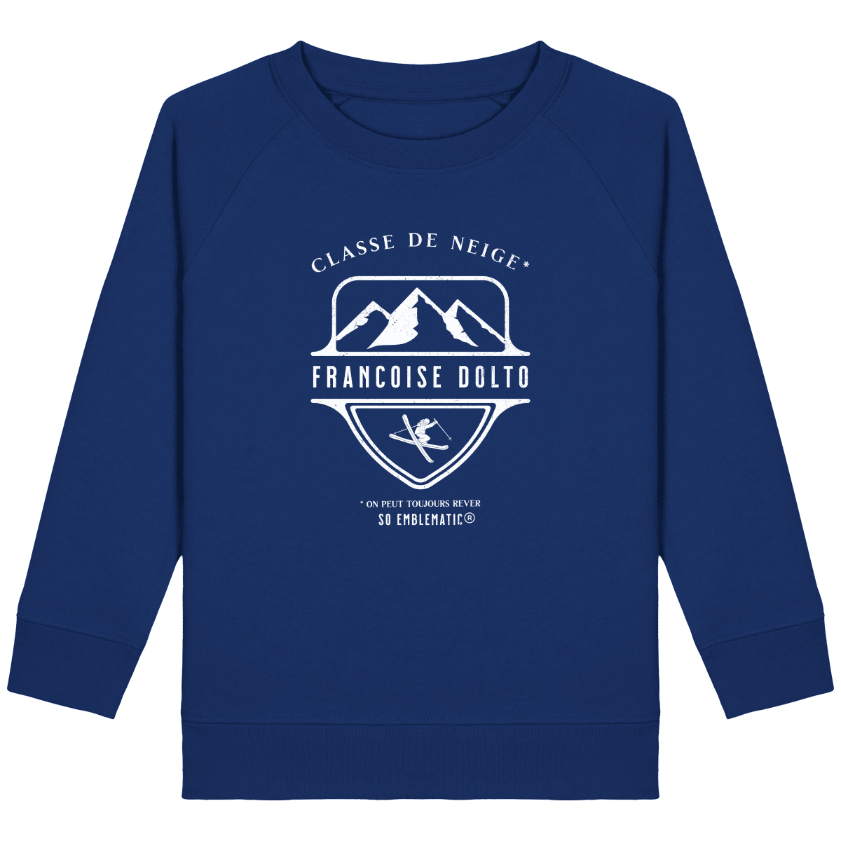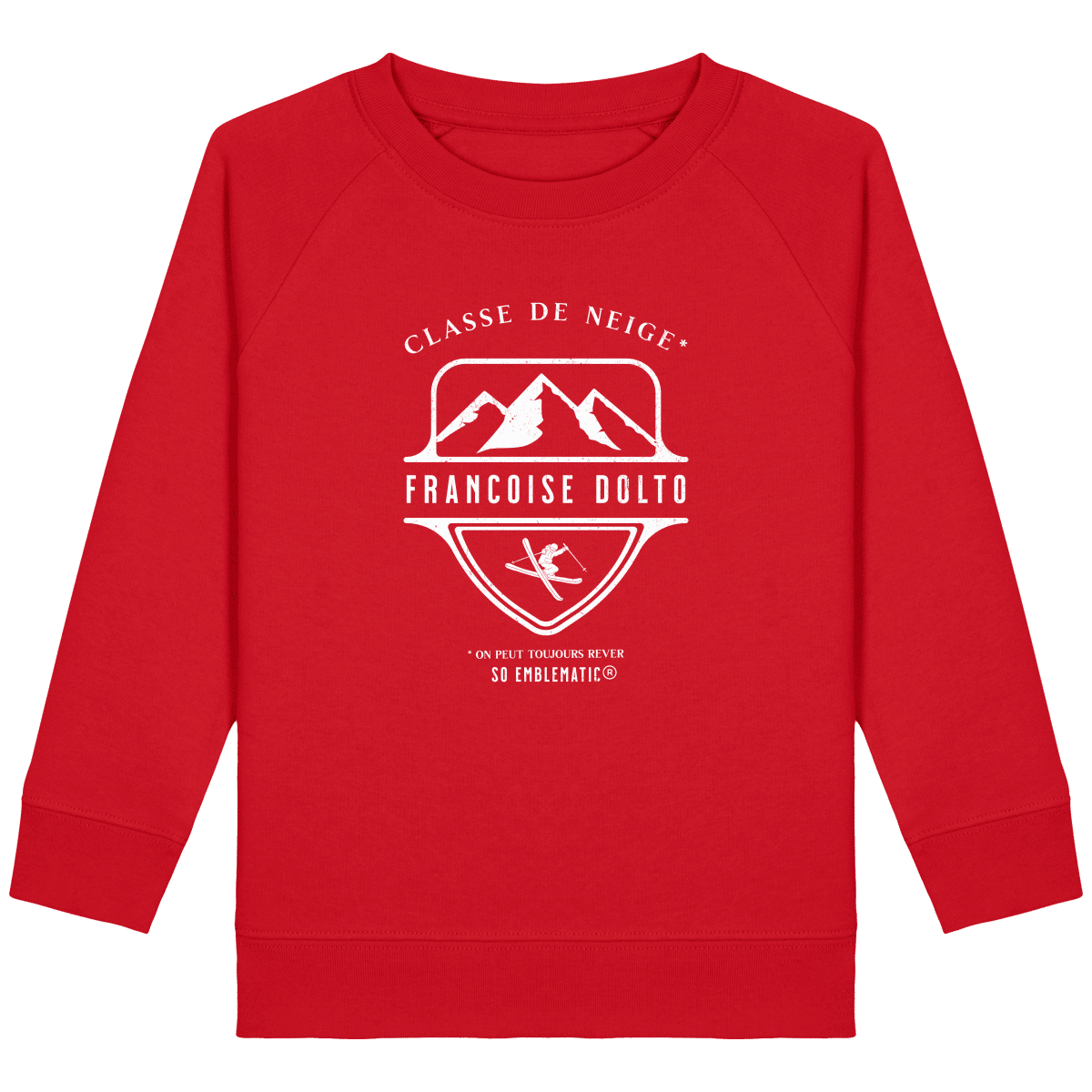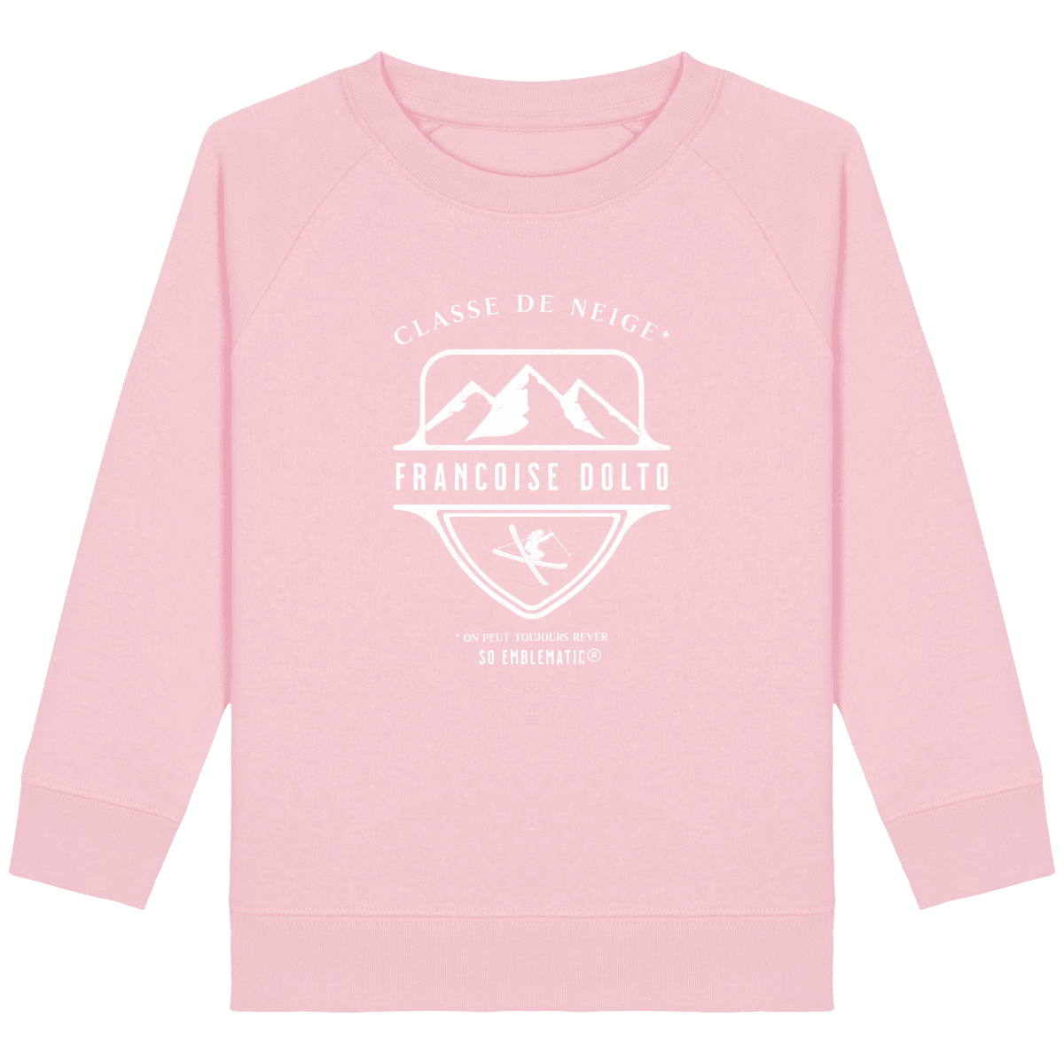 Sweat humoristique Enfant Classe de neige avec le nom d’école FRANCOISE DOLTO. Sweat enfant col rond en coton BIO de la marque STANLEY STELLA. Manches raglan, Col en côte 1×1. Bande de propreté intérieur col en jersey. 1/2 lune intérieur col dans la matière principale, Côte 1×1 au bas de manches et bas de corps. Surpiqûre double aux emmanchures, bas de manches et bas de corps. Sweat intérieur en molleton non brossé (non duveteux). 85% coton biologique filé et peigné, 15% polyester recyclé. Coupe normale du 3/4 ans au 12/14 ans. 300 G/M².
