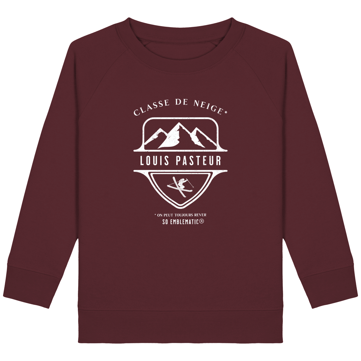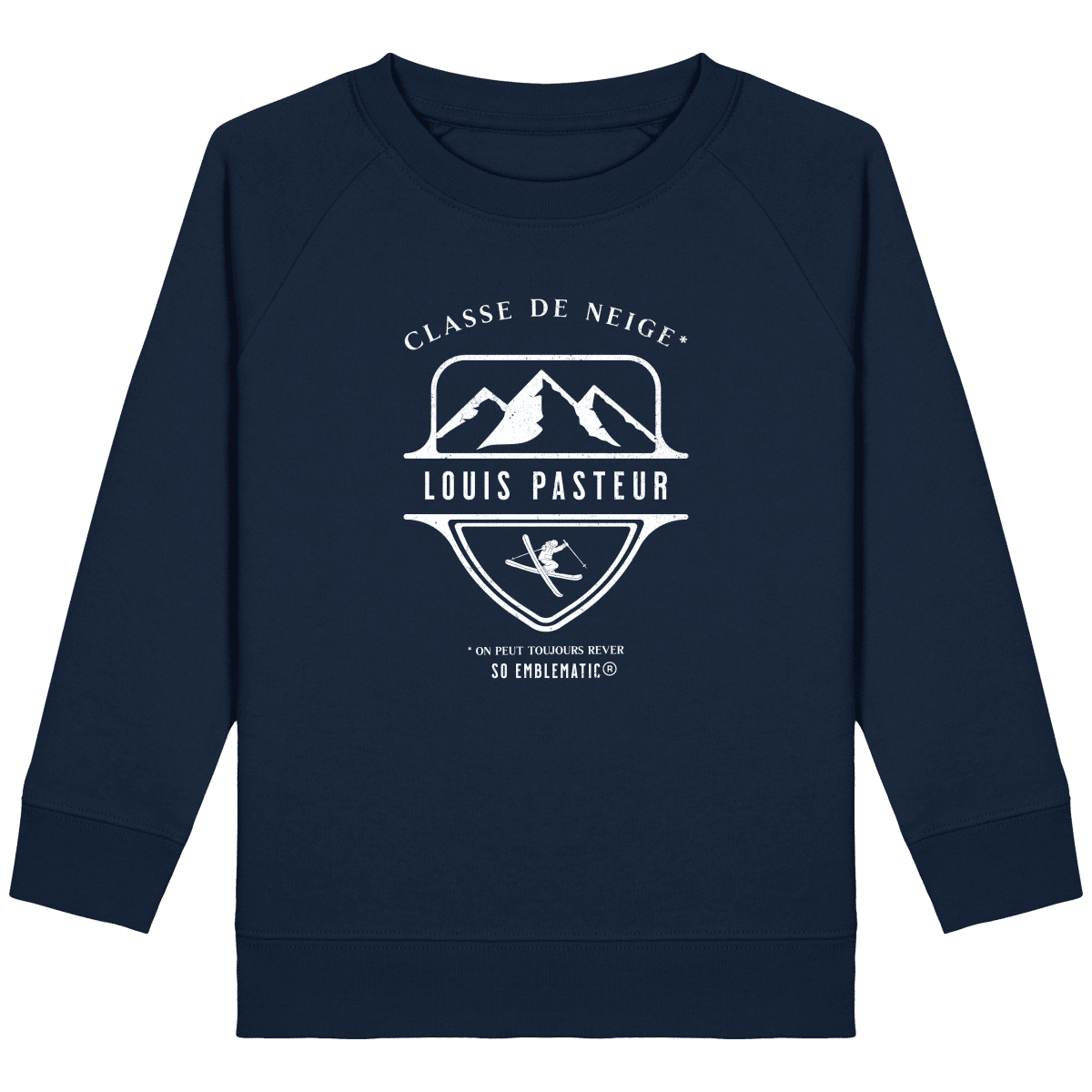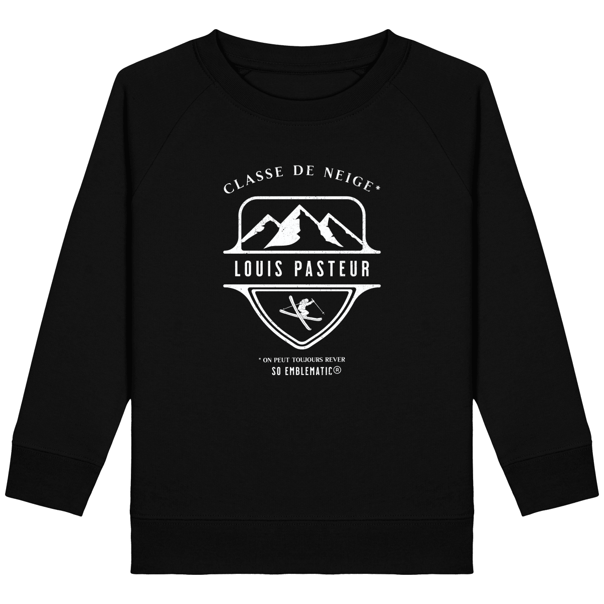 Sweat Enfant Classe de neige LOUIS PASTEUR. Sweat enfant col rond en coton BIO de la marque STANLEY STELLA. Manches raglan, Col en côte 1×1. Bande de propreté intérieur col en jersey. 1/2 lune intérieur col dans la matière principale, Côte 1×1 au bas de manches et bas de corps. Surpiqûre double aux emmanchures, bas de manches et bas de corps. Sweat intérieur en molleton non brossé (non duveteux). 85% coton biologique filé et peigné, 15% polyester recyclé. Coupe normale du 3/4 ans au 12/14 ans. 300 G/M².