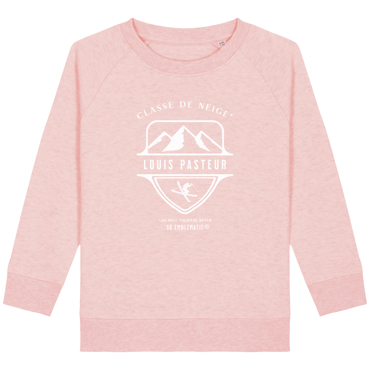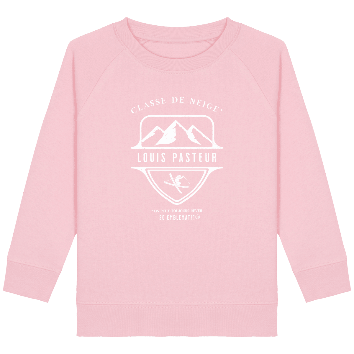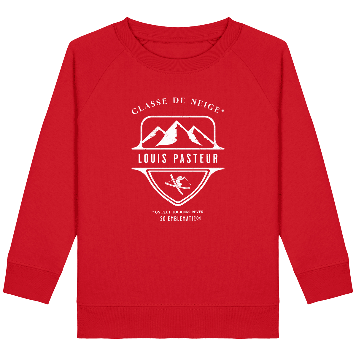 Sweat Enfant Classe de neige LOUIS PASTEUR. Sweat enfant col rond en coton BIO de la marque STANLEY STELLA. Manches raglan, Col en côte 1×1. Bande de propreté intérieur col en jersey. 1/2 lune intérieur col dans la matière principale, Côte 1×1 au bas de manches et bas de corps. Surpiqûre double aux emmanchures, bas de manches et bas de corps. Sweat intérieur en molleton non brossé (non duveteux). 85% coton biologique filé et peigné, 15% polyester recyclé. Coupe normale du 3/4 ans au 12/14 ans. 300 G/M².