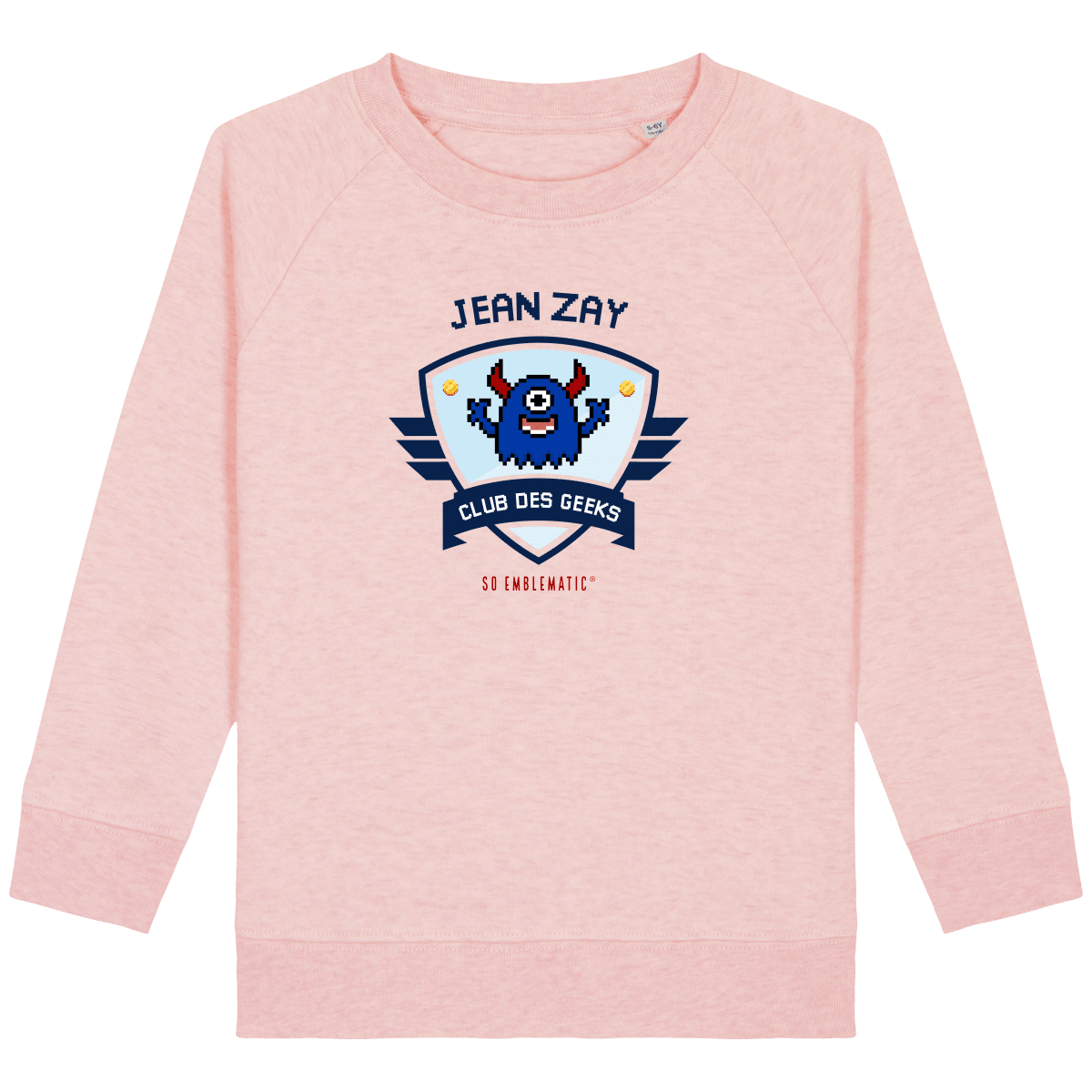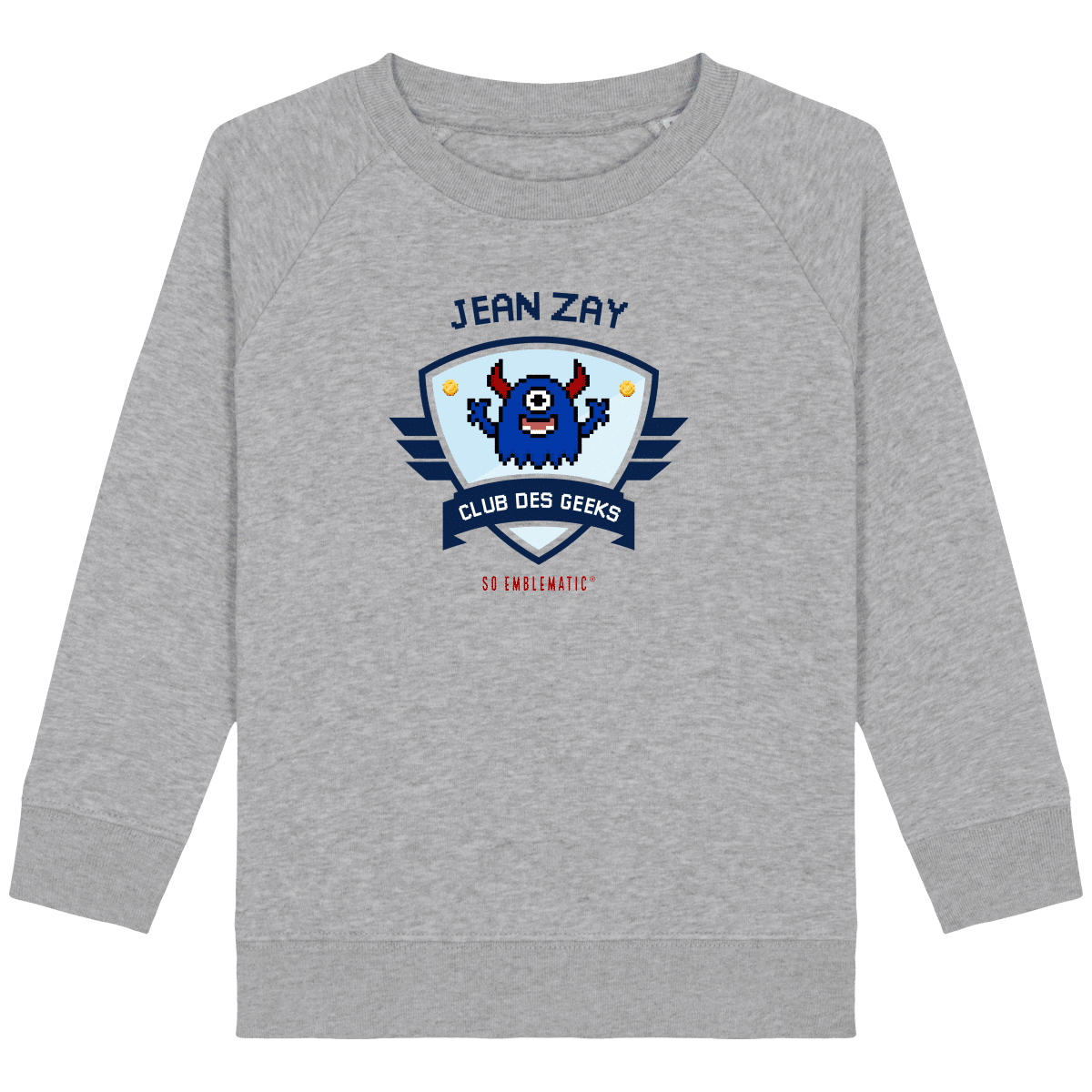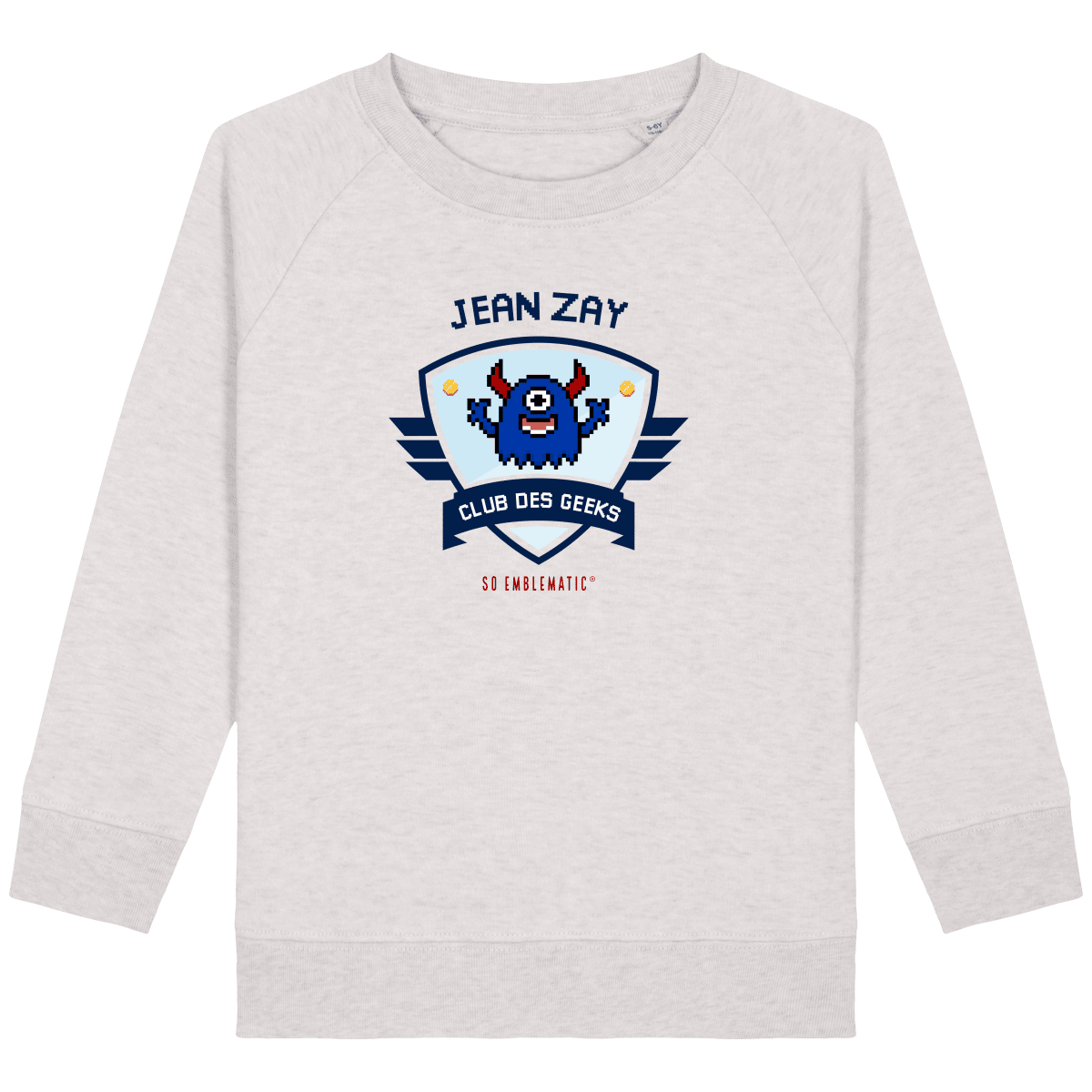 Sweat Enfant CLUB DES GEEKS JEAN ZAY. Sweat enfant col rond en coton BIO de la marque STANLEY STELLA. Manches raglan, Col en côte 1×1. Bande de propreté intérieur col en jersey. 1/2 lune intérieur col dans la matière principale, Côte 1×1 au bas de manches et bas de corps. Surpiqûre double aux emmanchures, bas de manches et bas de corps. Sweat intérieur en molleton non brossé (non duveteux). 85% coton biologique filé et peigné, 15% polyester recyclé. Coupe normale du 3/4 ans au 12/14 ans. 300 G/M².