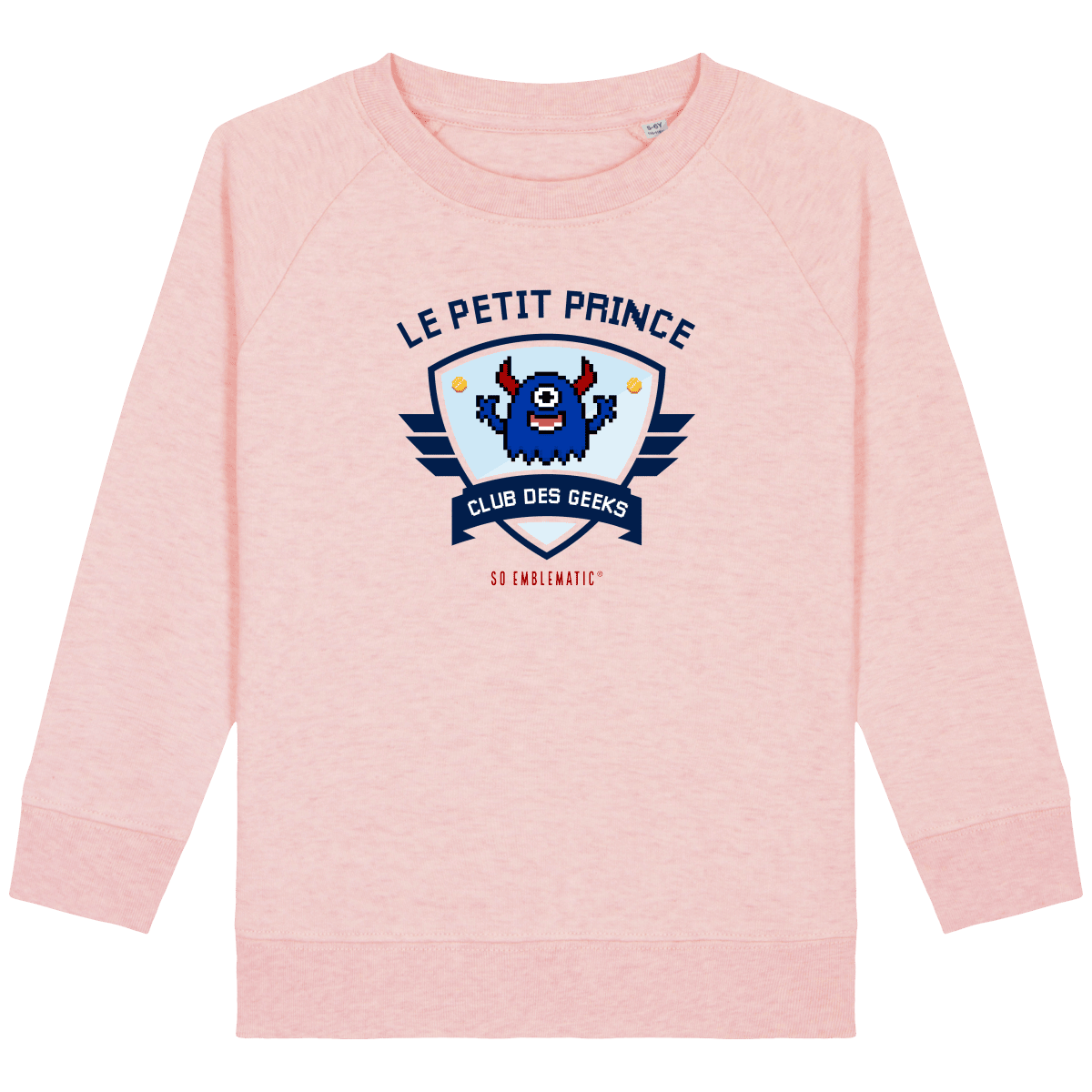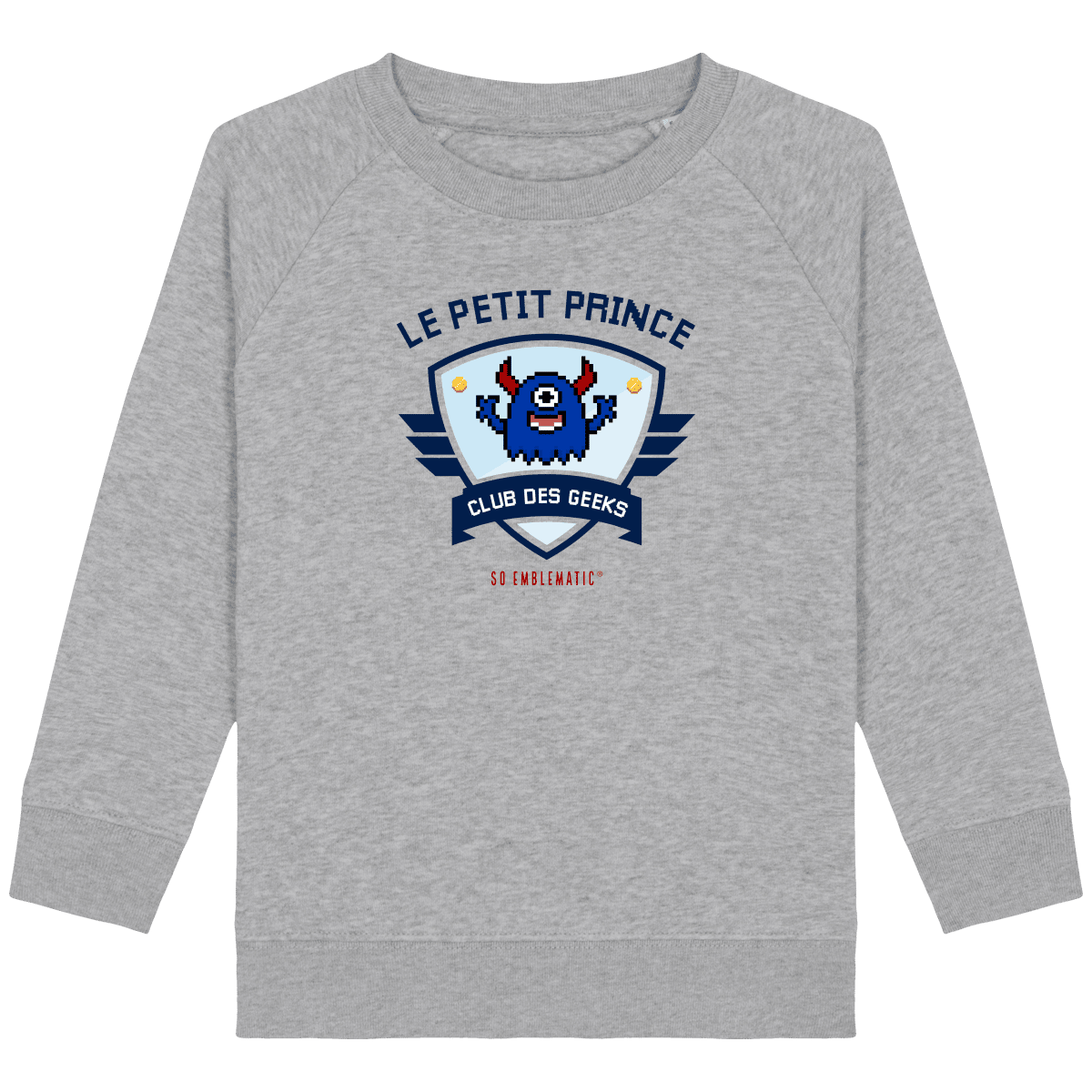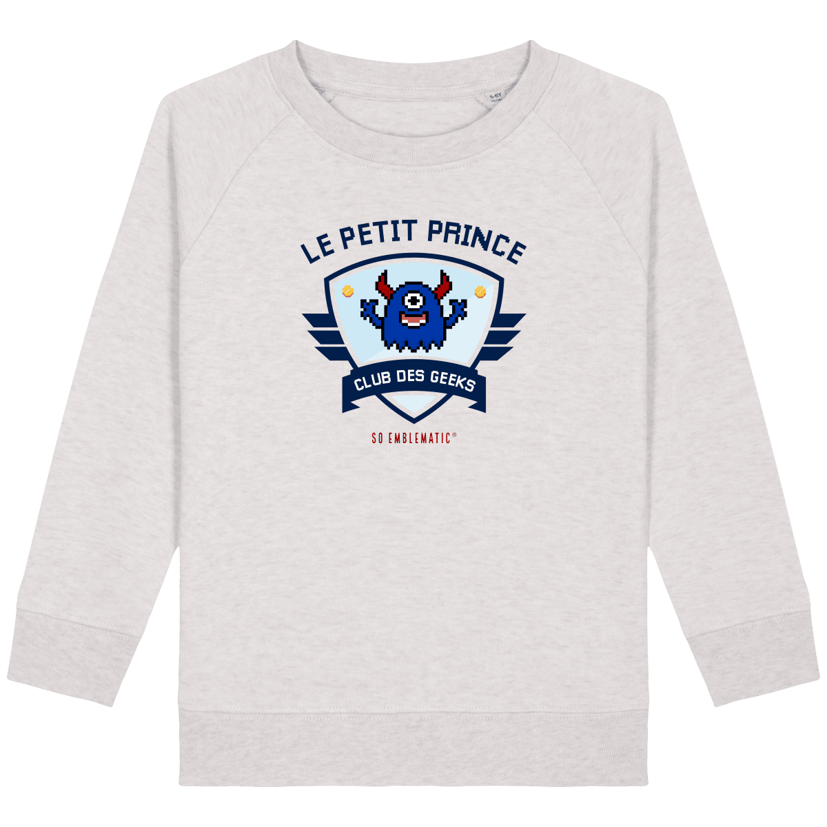 Sweat Enfant CLUB DES GEEKS LE PETIT PRINCE. Sweat enfant col rond en coton BIO de la marque STANLEY STELLA. Manches raglan, Col en côte 1×1. Bande de propreté intérieur col en jersey. 1/2 lune intérieur col dans la matière principale, Côte 1×1 au bas de manches et bas de corps. Surpiqûre double aux emmanchures, bas de manches et bas de corps. Sweat intérieur en molleton non brossé (non duveteux). 85% coton biologique filé et peigné, 15% polyester recyclé. Coupe normale du 3/4 ans au 12/14 ans. 300 G/M².