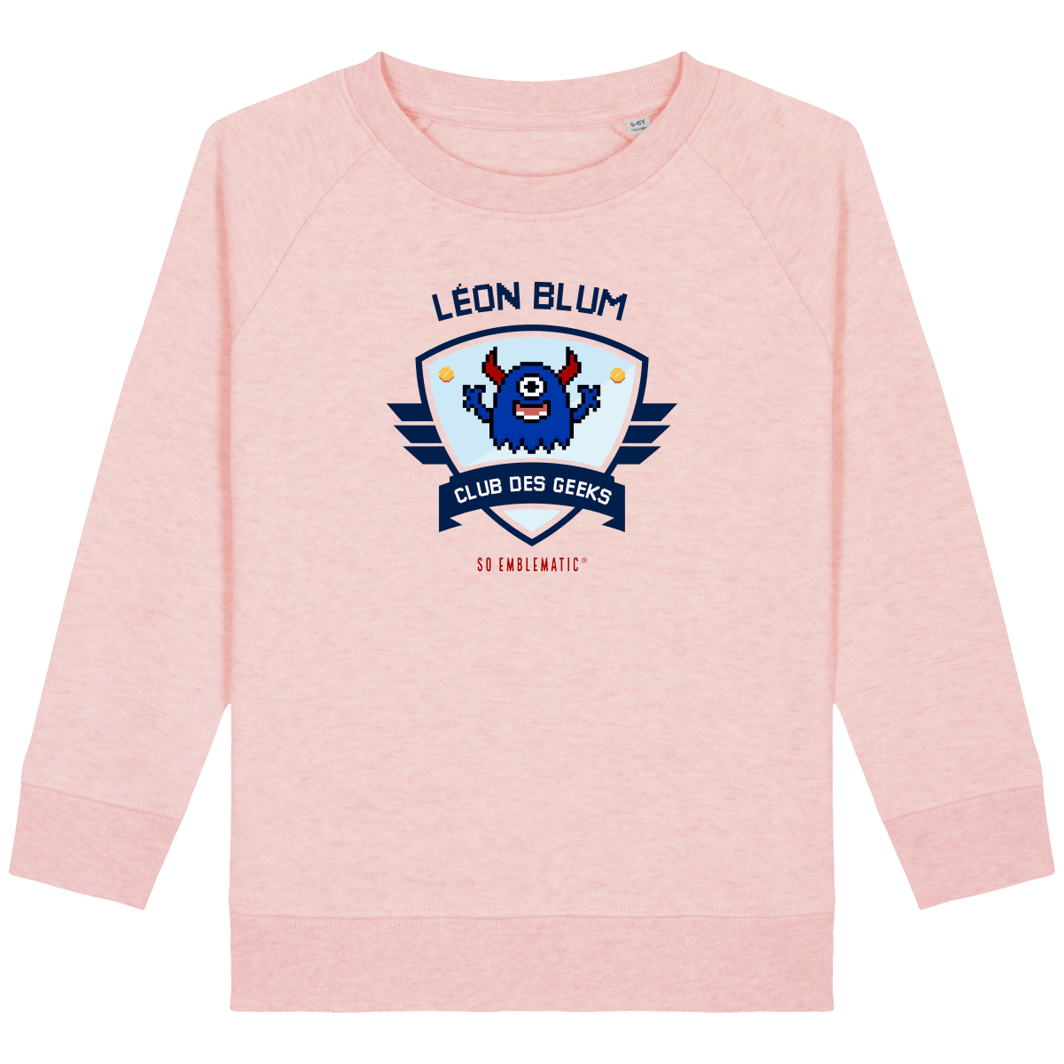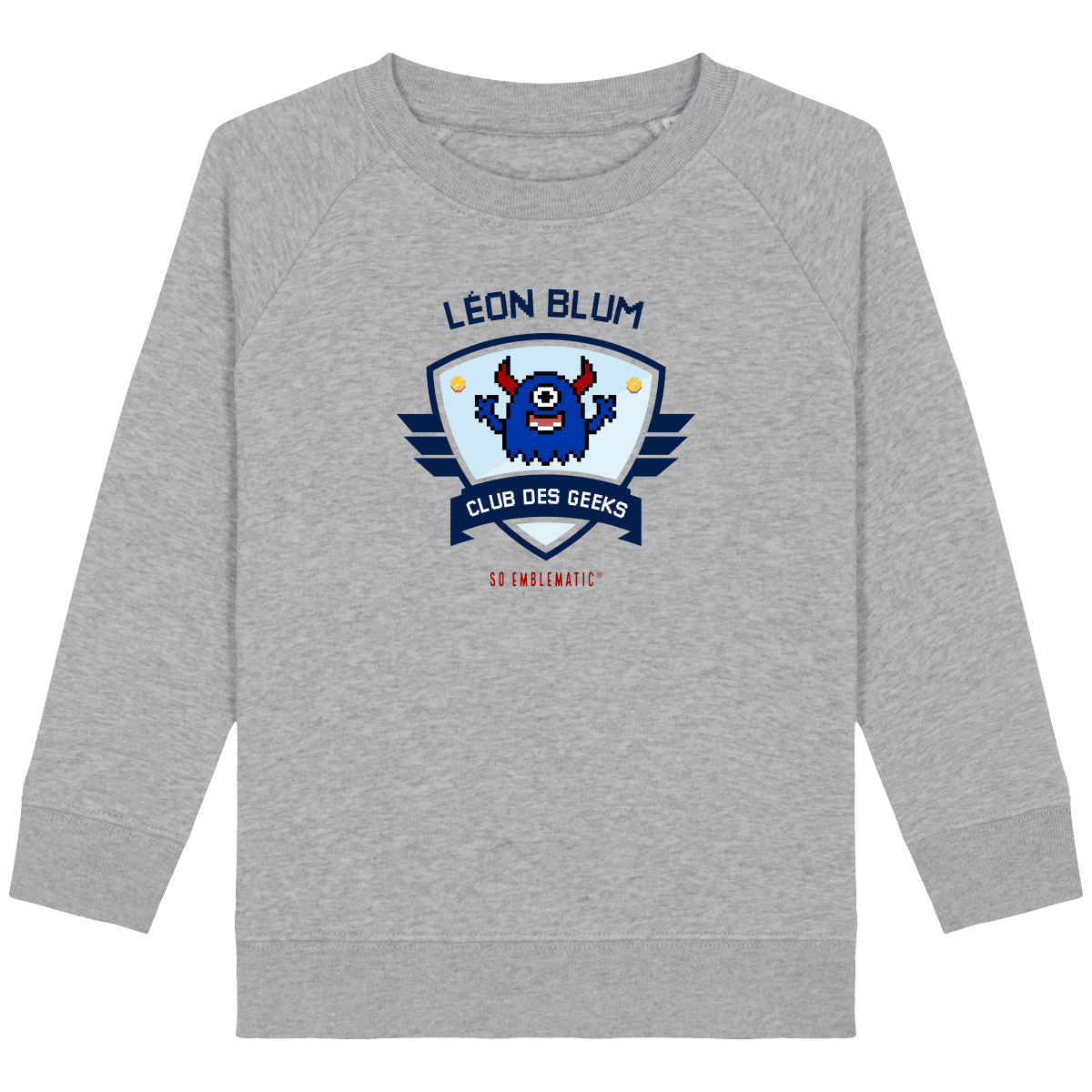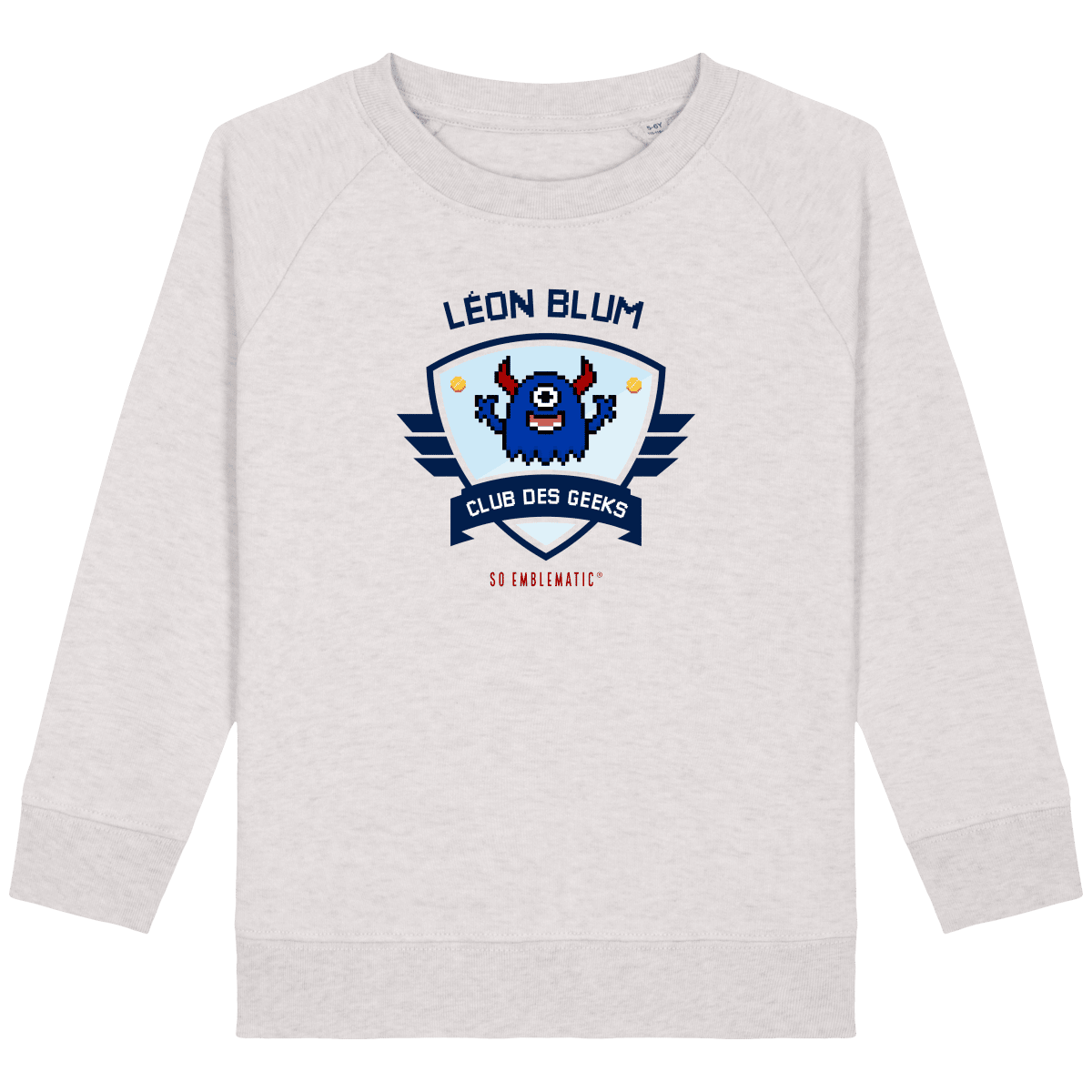 Sweat Enfant CLUB DES GEEKS LEON BLUM. Sweat enfant col rond en coton BIO de la marque STANLEY STELLA. Manches raglan, Col en côte 1×1. Bande de propreté intérieur col en jersey. 1/2 lune intérieur col dans la matière principale, Côte 1×1 au bas de manches et bas de corps. Surpiqûre double aux emmanchures, bas de manches et bas de corps. Sweat intérieur en molleton non brossé (non duveteux). 85% coton biologique filé et peigné, 15% polyester recyclé. Coupe normale du 3/4 ans au 12/14 ans. 300 G/M².