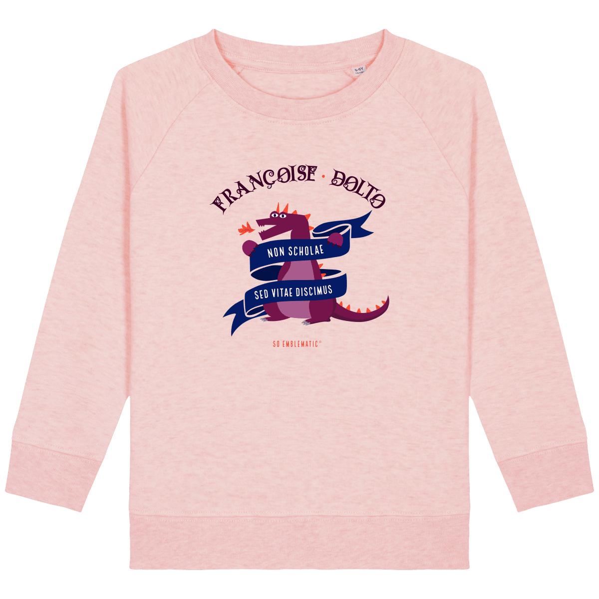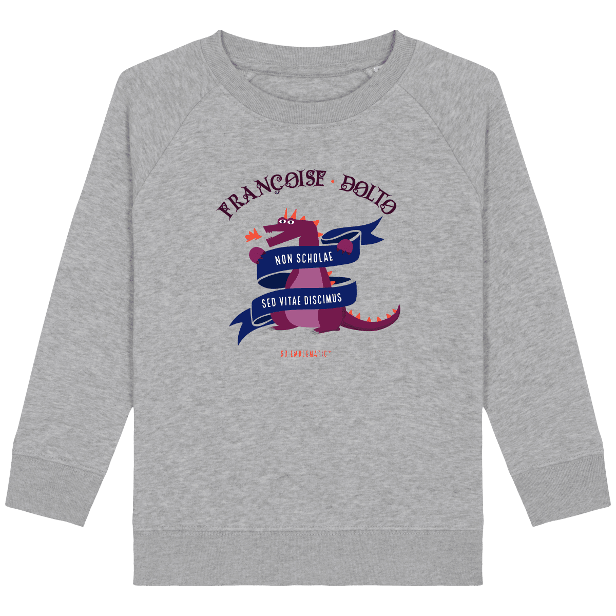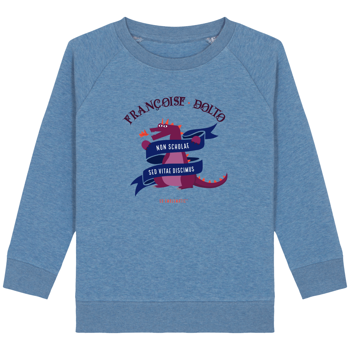 Sweat Enfant DRAGON FRANCOISE DOLTO. Sweat enfant col rond en coton BIO de la marque STANLEY STELLA. Manches raglan, Col en côte 1×1. Bande de propreté intérieur col en jersey. 1/2 lune intérieur col dans la matière principale, Côte 1×1 au bas de manches et bas de corps. Surpiqûre double aux emmanchures, bas de manches et bas de corps. Sweat intérieur en molleton non brossé (non duveteux). 85% coton biologique filé et peigné, 15% polyester recyclé. Coupe normale du 3/4 ans au 12/14 ans. 300 G/M².
