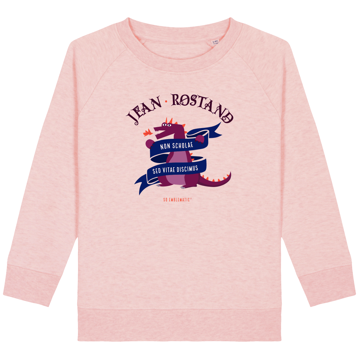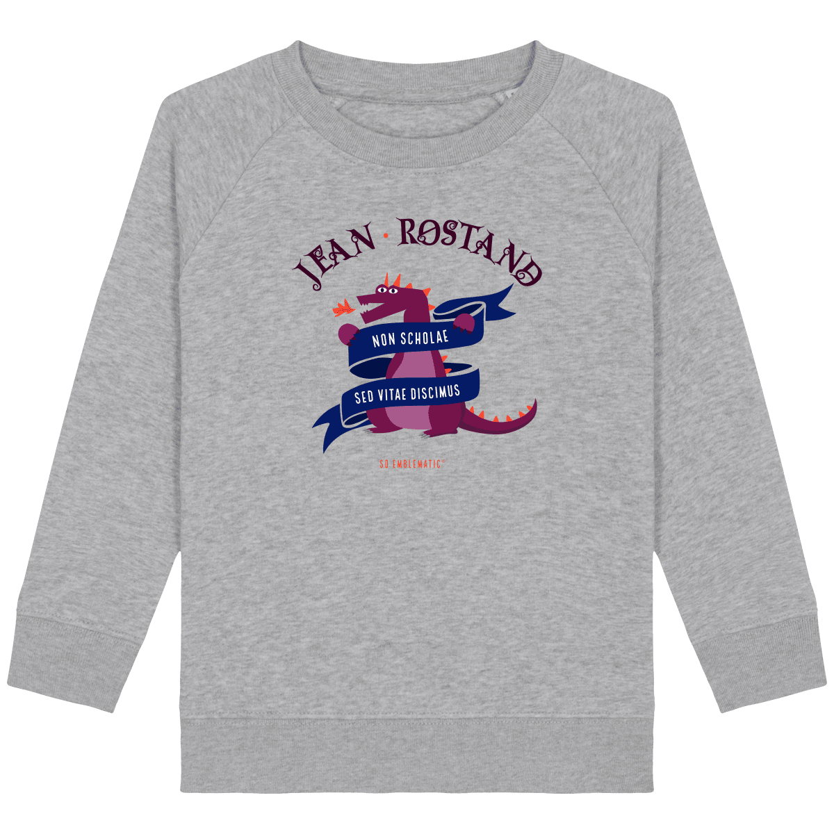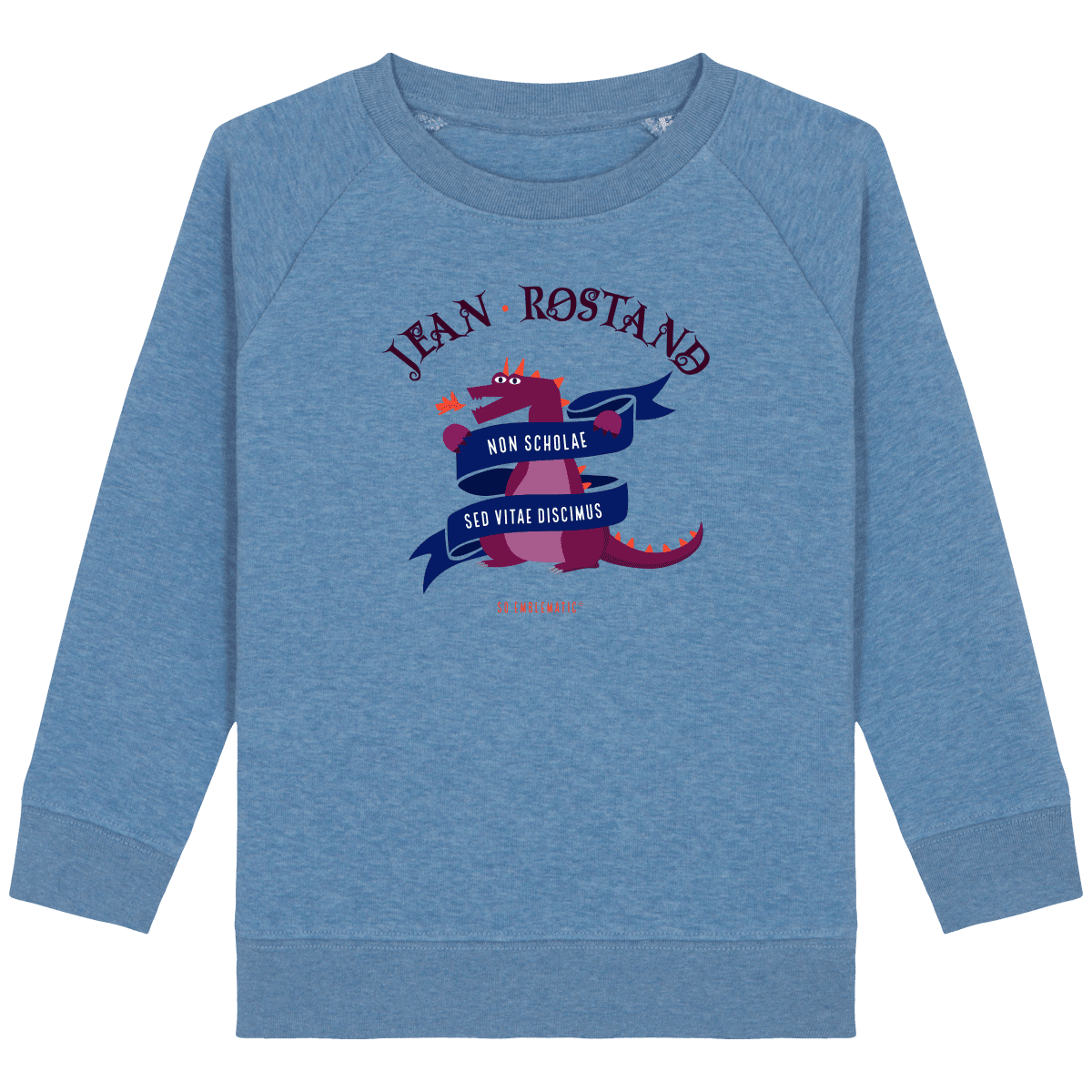 Sweat Enfant DRAGON JEAN ROSTAND. Sweat enfant col rond en coton BIO de la marque STANLEY STELLA. Manches raglan, Col en côte 1×1. Bande de propreté intérieur col en jersey. 1/2 lune intérieur col dans la matière principale, Côte 1×1 au bas de manches et bas de corps. Surpiqûre double aux emmanchures, bas de manches et bas de corps. Sweat intérieur en molleton non brossé (non duveteux). 85% coton biologique filé et peigné, 15% polyester recyclé. Coupe normale du 3/4 ans au 12/14 ans. 300 G/M².