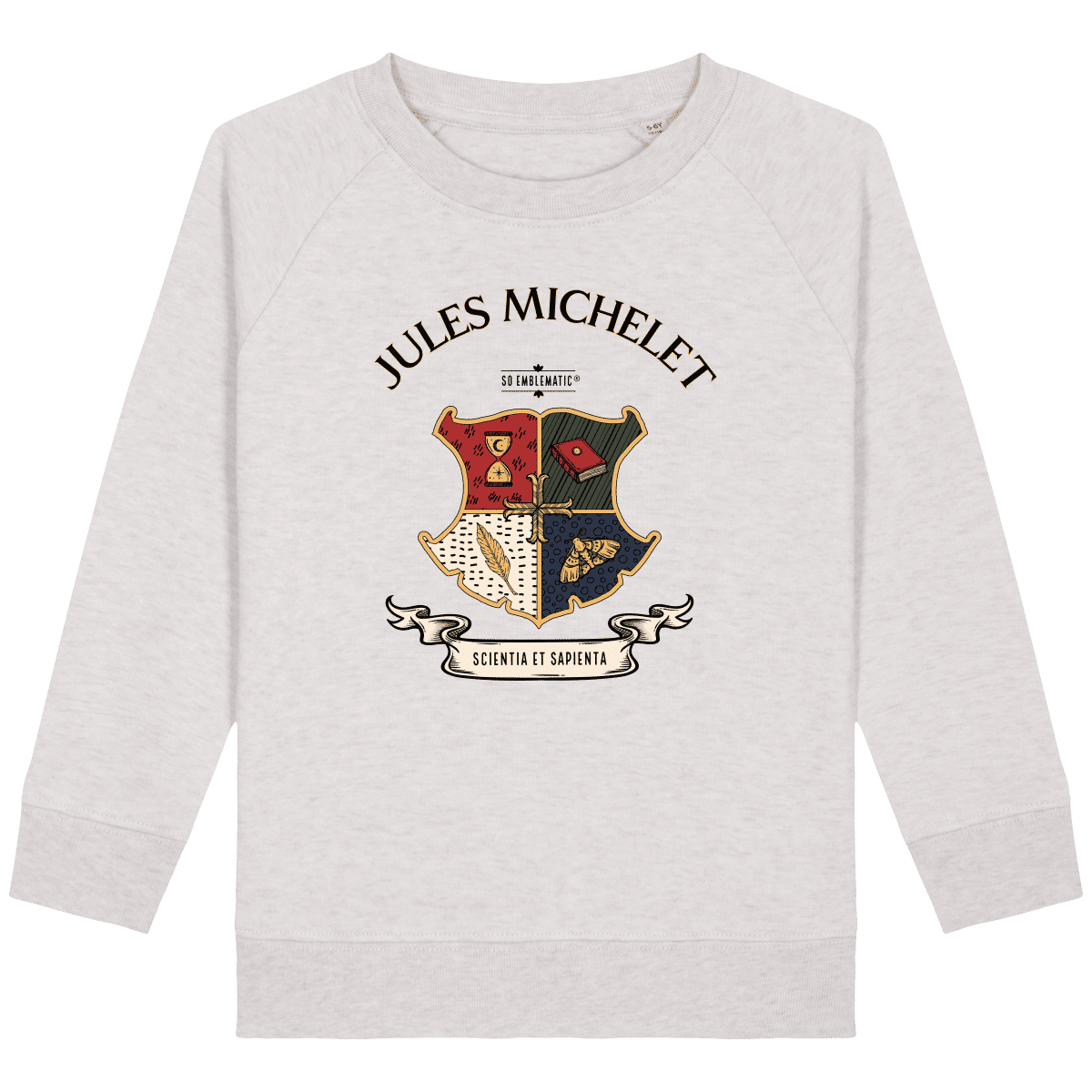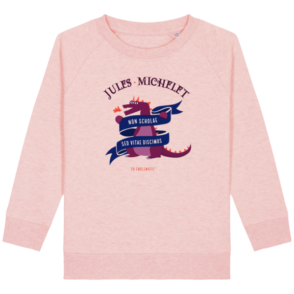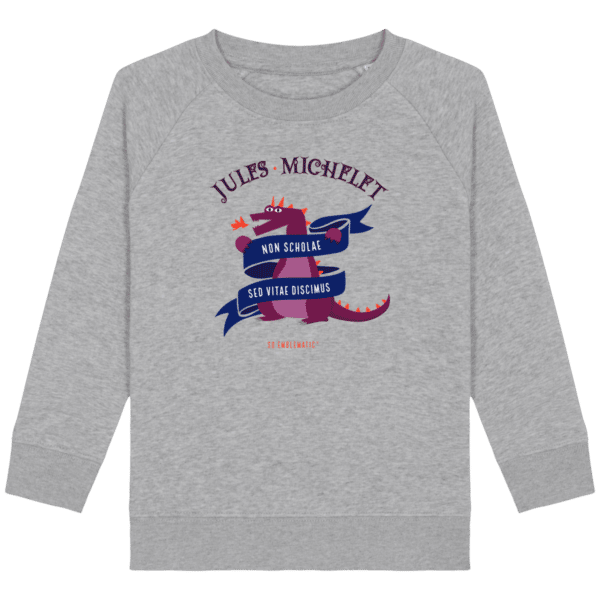 Sweat Enfant DRAGON JULES MICHELET. Sweat enfant col rond en coton BIO de la marque STANLEY STELLA. Manches raglan, Col en côte 1×1. Bande de propreté intérieur col en jersey. 1/2 lune intérieur col dans la matière principale, Côte 1×1 au bas de manches et bas de corps. Surpiqûre double aux emmanchures, bas de manches et bas de corps. Sweat intérieur en molleton non brossé (non duveteux). 85% coton biologique filé et peigné, 15% polyester recyclé. Coupe normale du 3/4 ans au 12/14 ans. 300 G/M².