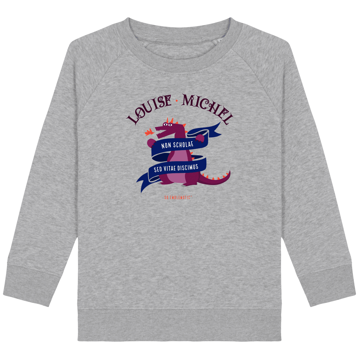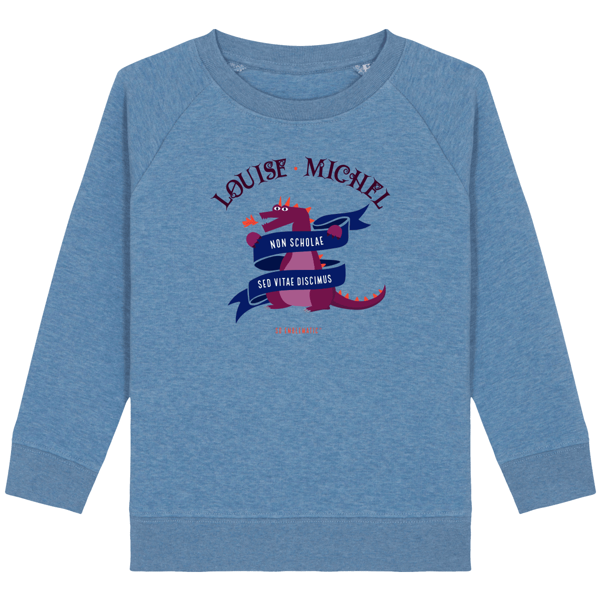 Sweat Enfant DRAGON LOUISE MICHEL. Sweat enfant col rond en coton BIO de la marque STANLEY STELLA. Manches raglan, Col en côte 1×1. Bande de propreté intérieur col en jersey. 1/2 lune intérieur col dans la matière principale, Côte 1×1 au bas de manches et bas de corps. Surpiqûre double aux emmanchures, bas de manches et bas de corps. Sweat intérieur en molleton non brossé (non duveteux). 85% coton biologique filé et peigné, 15% polyester recyclé. Coupe normale du 3/4 ans au 12/14 ans. 300 G/M².