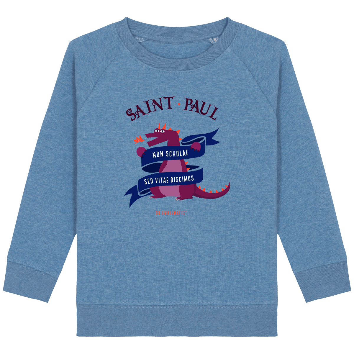 Sweat Enfant DRAGON SAINT-PAUL. Sweat enfant col rond en coton BIO de la marque STANLEY STELLA. Manches raglan, Col en côte 1×1. Bande de propreté intérieur col en jersey. 1/2 lune intérieur col dans la matière principale, Côte 1×1 au bas de manches et bas de corps. Surpiqûre double aux emmanchures, bas de manches et bas de corps. Sweat intérieur en molleton non brossé (non duveteux). 85% coton biologique filé et peigné, 15% polyester recyclé. Coupe normale du 3/4 ans au 12/14 ans. 300 G/M².