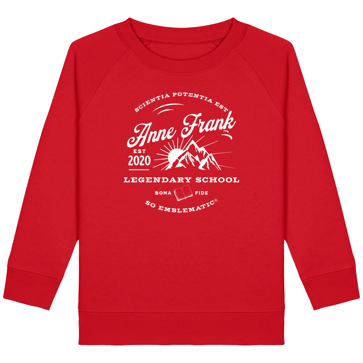Sweat Enfant pour l’école Anne Frank. Sweat enfant col rond en coton BIO de la marque STANLEY STELLA. Manches raglan, Col en côte 1×1. Bande de propreté intérieur col en jersey. 1/2 lune intérieur col dans la matière principale, Côte 1×1 au bas de manches et bas de corps. Surpiqûre double aux emmanchures, bas de manches et bas de corps. Sweat intérieur en molleton non brossé (non duveteux). 85% coton biologique filé et peigné, 15% polyester recyclé. Coupe normale du 3/4 ans au 12/14 ans. 300 G/M².