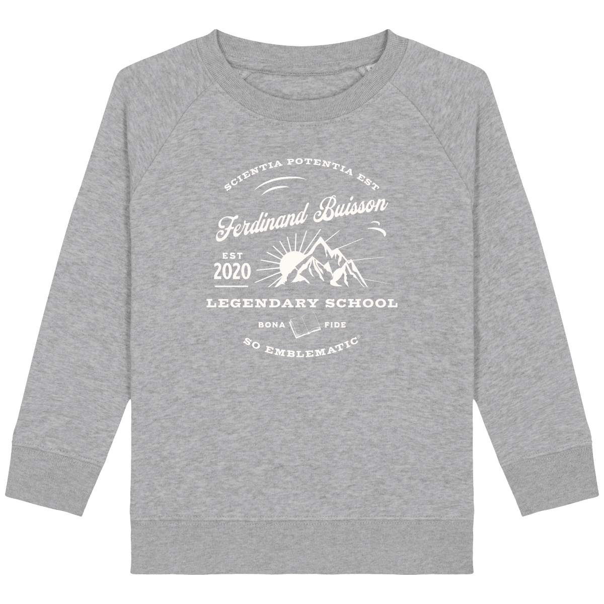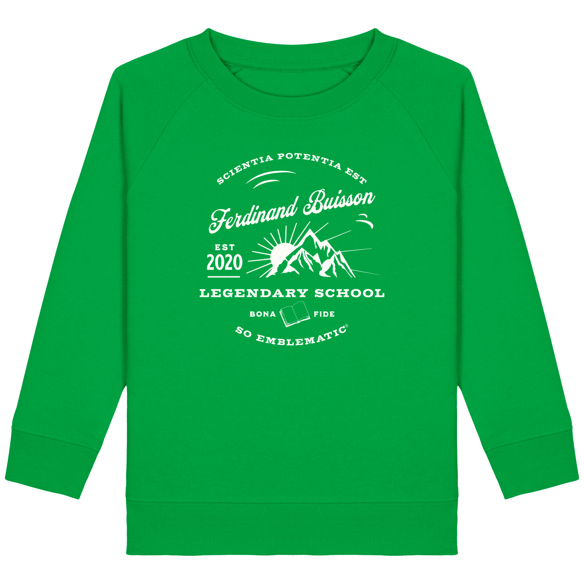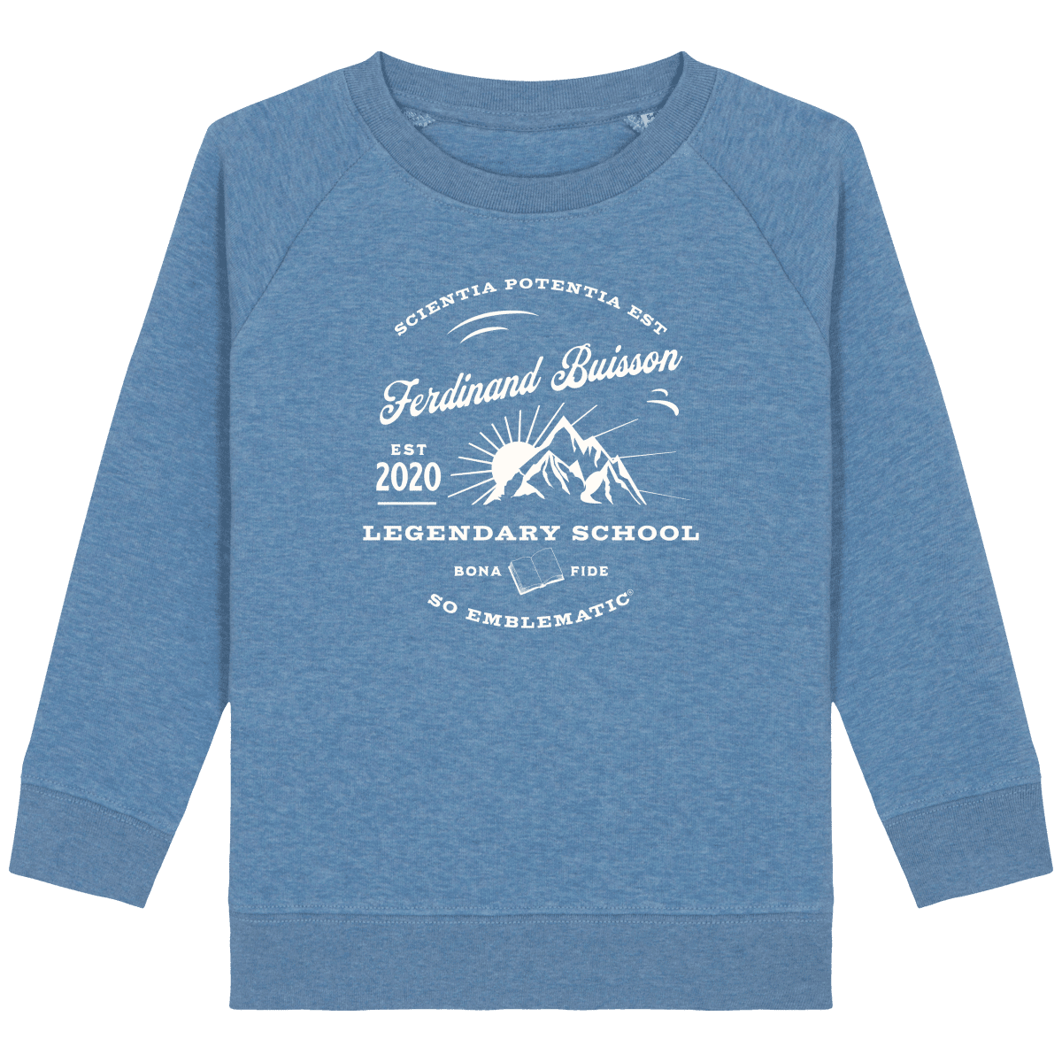 Sweat Enfant pour l’école Ferdinand Buisson. Sweat enfant col rond en coton BIO de la marque STANLEY STELLA. Manches raglan, Col en côte 1×1. Bande de propreté intérieur col en jersey. 1/2 lune intérieur col dans la matière principale, Côte 1×1 au bas de manches et bas de corps. Surpiqûre double aux emmanchures, bas de manches et bas de corps. Sweat intérieur en molleton non brossé (non duveteux). 85% coton biologique filé et peigné, 15% polyester recyclé. Coupe normale du 3/4 ans au 12/14 ans. 300 G/M².