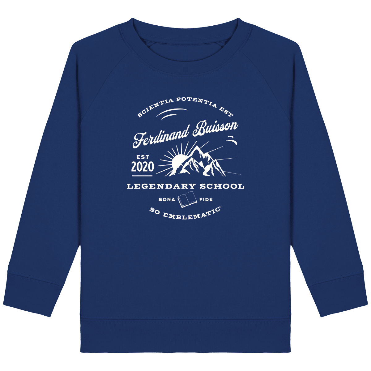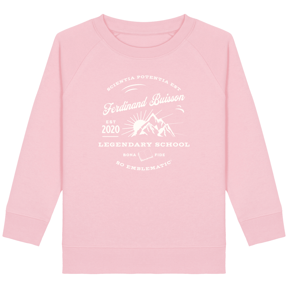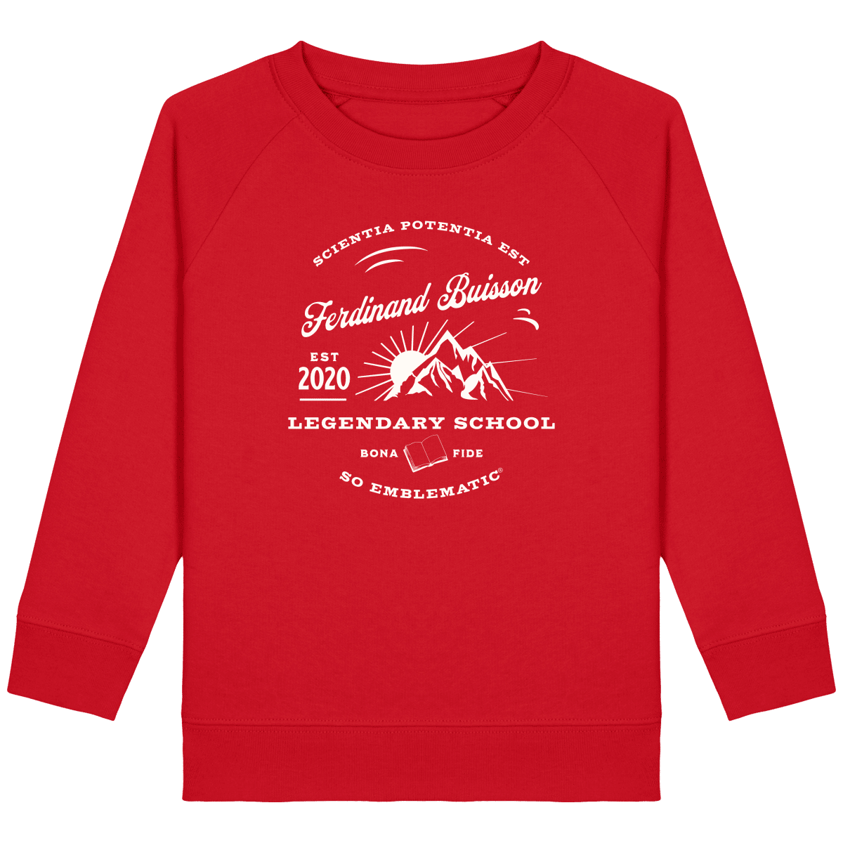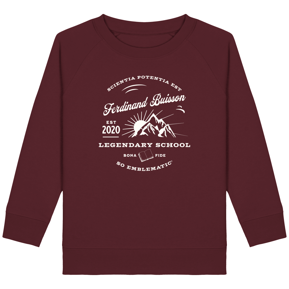 Sweat Enfant pour l’école Ferdinand Buisson. Sweat enfant col rond en coton BIO de la marque STANLEY STELLA. Manches raglan, Col en côte 1×1. Bande de propreté intérieur col en jersey. 1/2 lune intérieur col dans la matière principale, Côte 1×1 au bas de manches et bas de corps. Surpiqûre double aux emmanchures, bas de manches et bas de corps. Sweat intérieur en molleton non brossé (non duveteux). 85% coton biologique filé et peigné, 15% polyester recyclé. Coupe normale du 3/4 ans au 12/14 ans. 300 G/M².