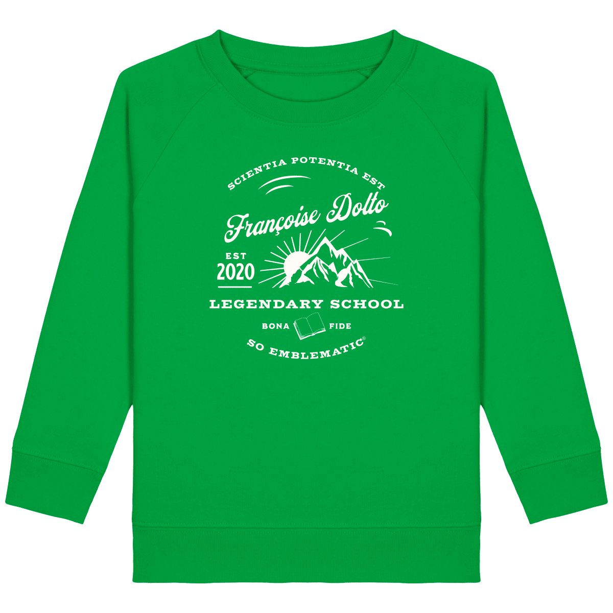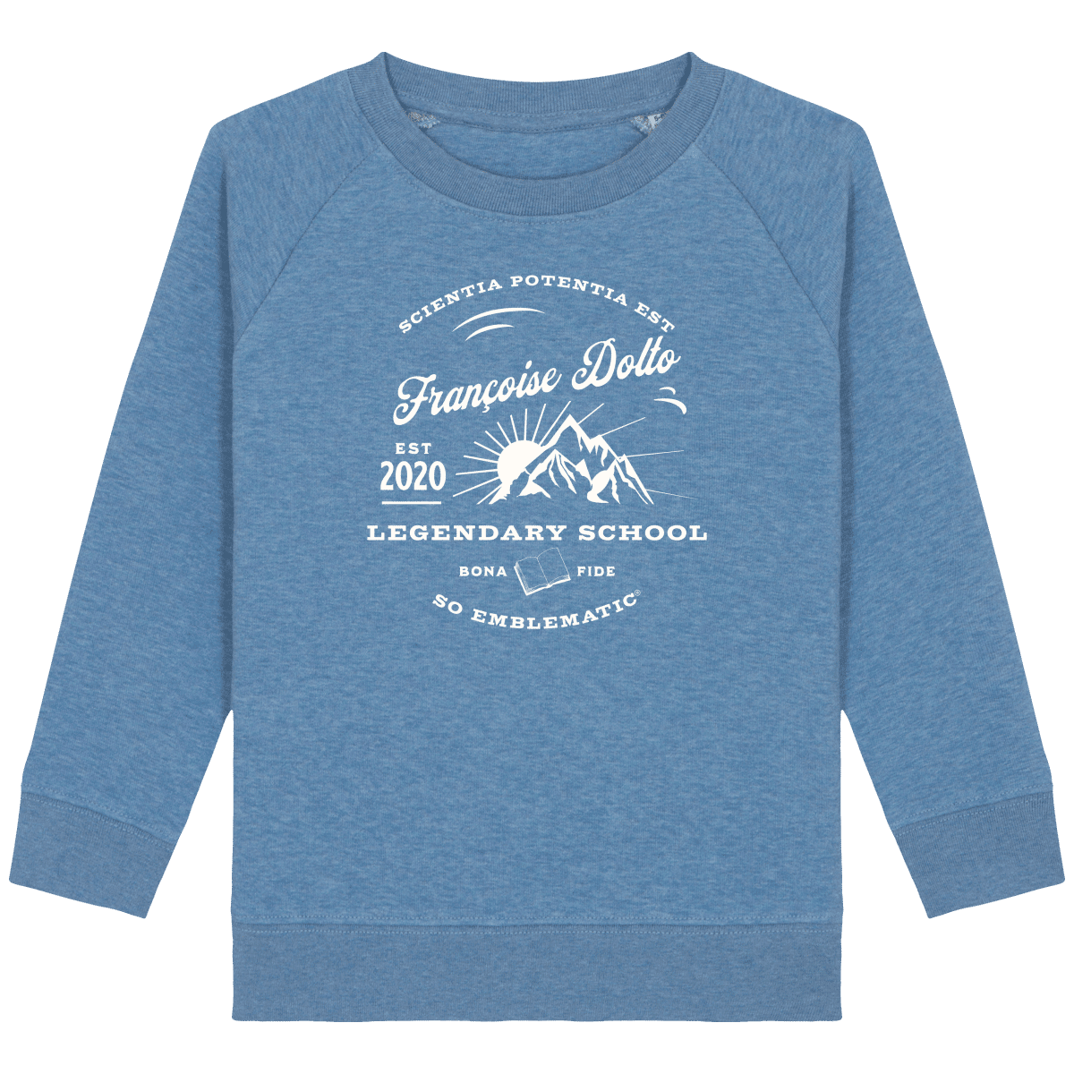Sweat Enfant pour l’école Françoise Dolto. Sweat enfant col rond en coton BIO de la marque STANLEY STELLA. Manches raglan, Col en côte 1×1. Bande de propreté intérieur col en jersey. 1/2 lune intérieur col dans la matière principale, Côte 1×1 au bas de manches et bas de corps. Surpiqûre double aux emmanchures, bas de manches et bas de corps. Sweat intérieur en molleton non brossé (non duveteux). 85% coton biologique filé et peigné, 15% polyester recyclé. Coupe normale du 3/4 ans au 12/14 ans. 300 G/M².