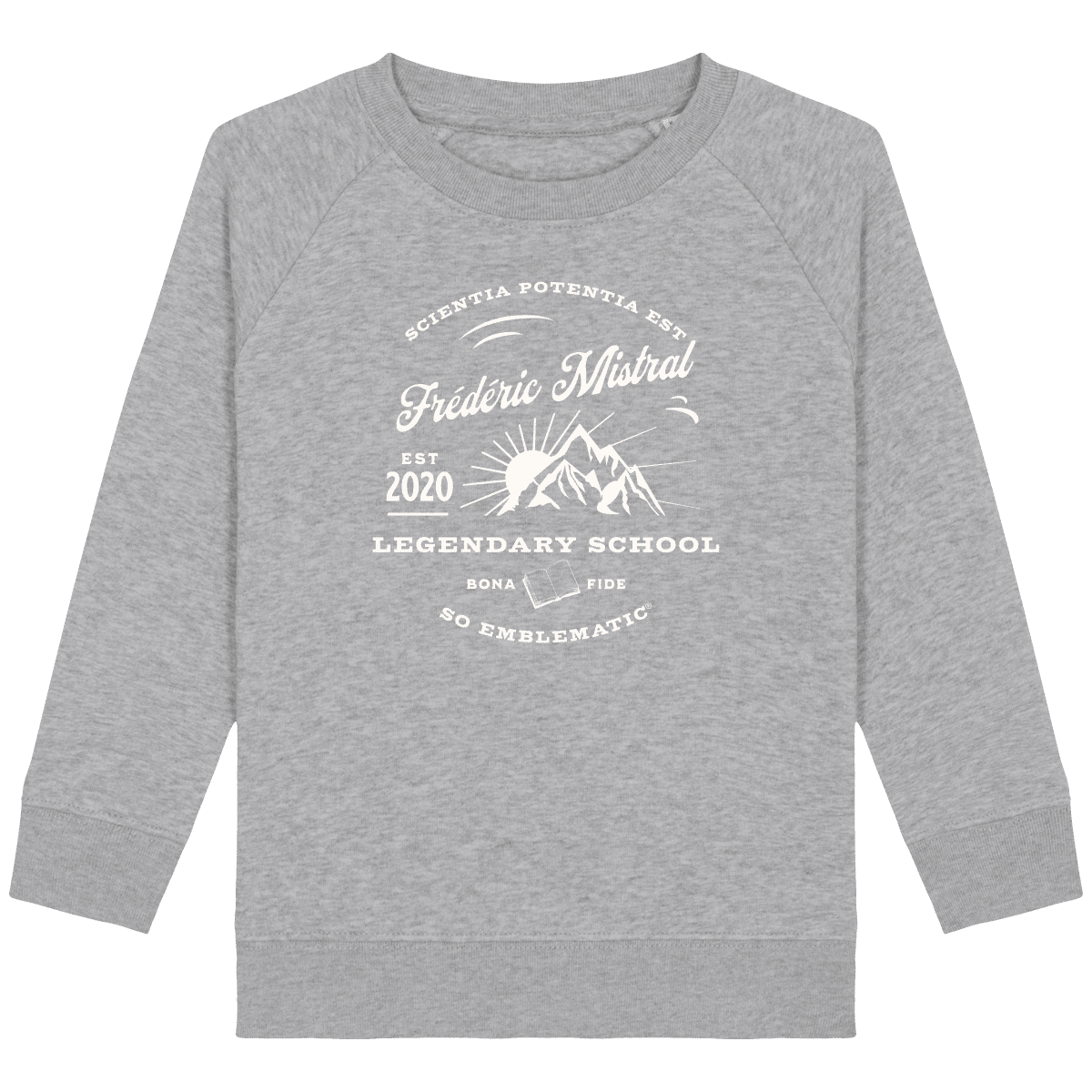Sweat Enfant pour l’école Frédéric Mistral. Sweat enfant col rond en coton BIO de la marque STANLEY STELLA. Manches raglan, Col en côte 1×1. Bande de propreté intérieur col en jersey. 1/2 lune intérieur col dans la matière principale, Côte 1×1 au bas de manches et bas de corps. Surpiqûre double aux emmanchures, bas de manches et bas de corps. Sweat intérieur en molleton non brossé (non duveteux). 85% coton biologique filé et peigné, 15% polyester recyclé. Coupe normale du 3/4 ans au 12/14 ans. 300 G/M².