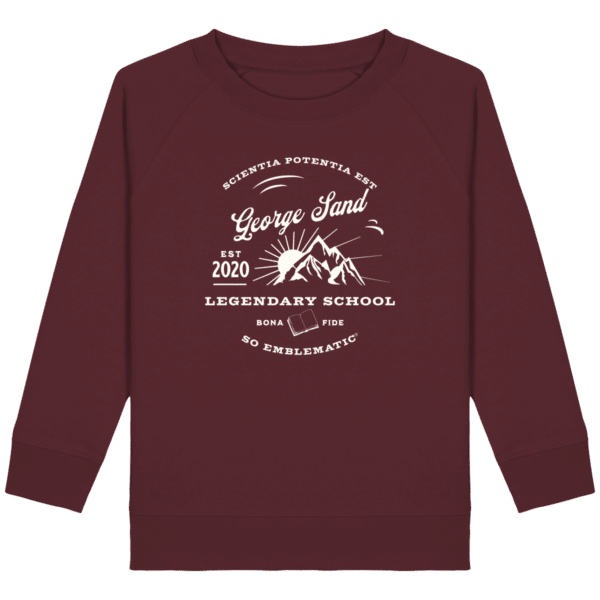 Sweat Enfant pour l’école George Sand. Sweat enfant col rond en coton BIO de la marque STANLEY STELLA. Manches raglan, Col en côte 1×1. Bande de propreté intérieur col en jersey. 1/2 lune intérieur col dans la matière principale, Côte 1×1 au bas de manches et bas de corps. Surpiqûre double aux emmanchures, bas de manches et bas de corps. Sweat intérieur en molleton non brossé (non duveteux). 85% coton biologique filé et peigné, 15% polyester recyclé. Coupe normale du 3/4 ans au 12/14 ans. 300 G/M².
