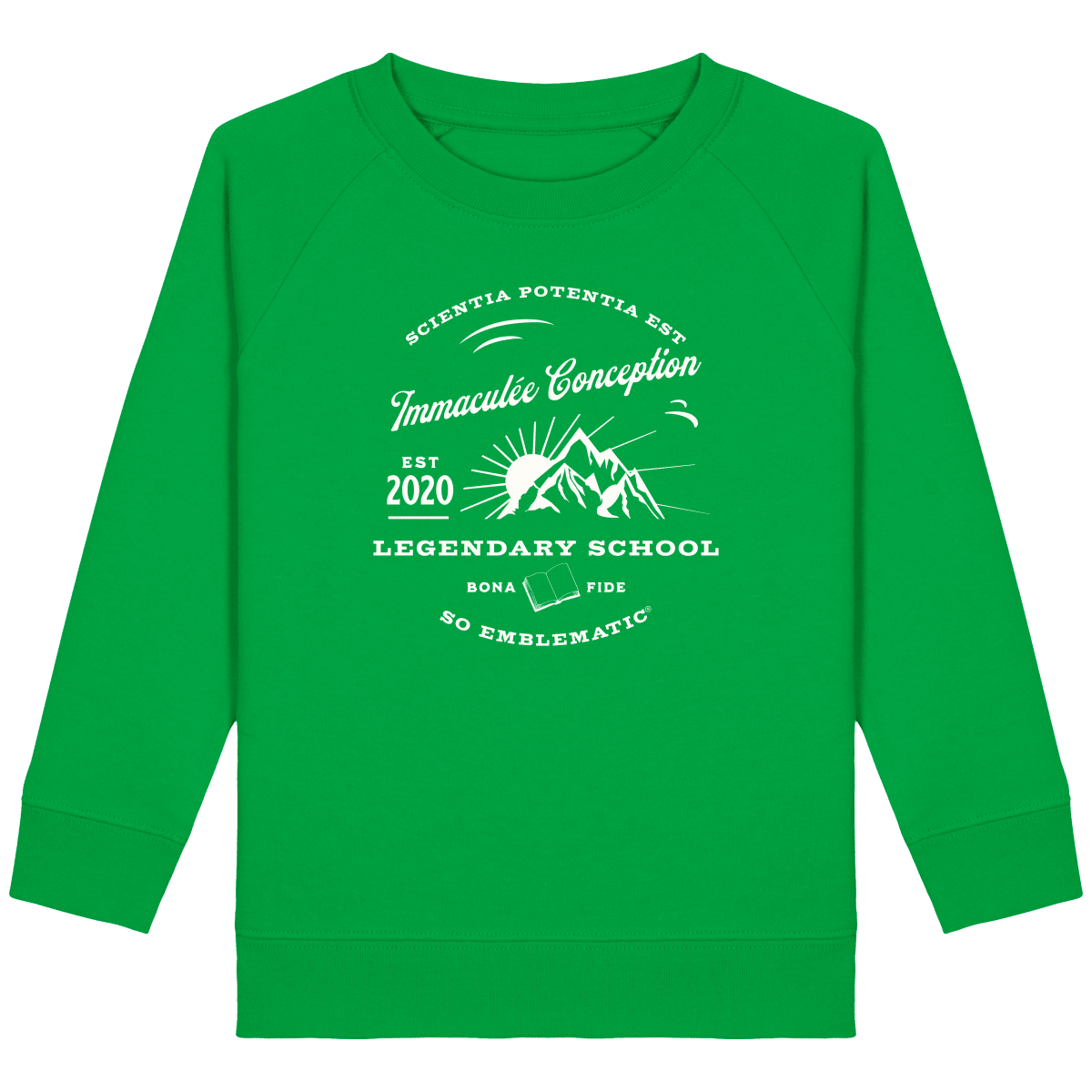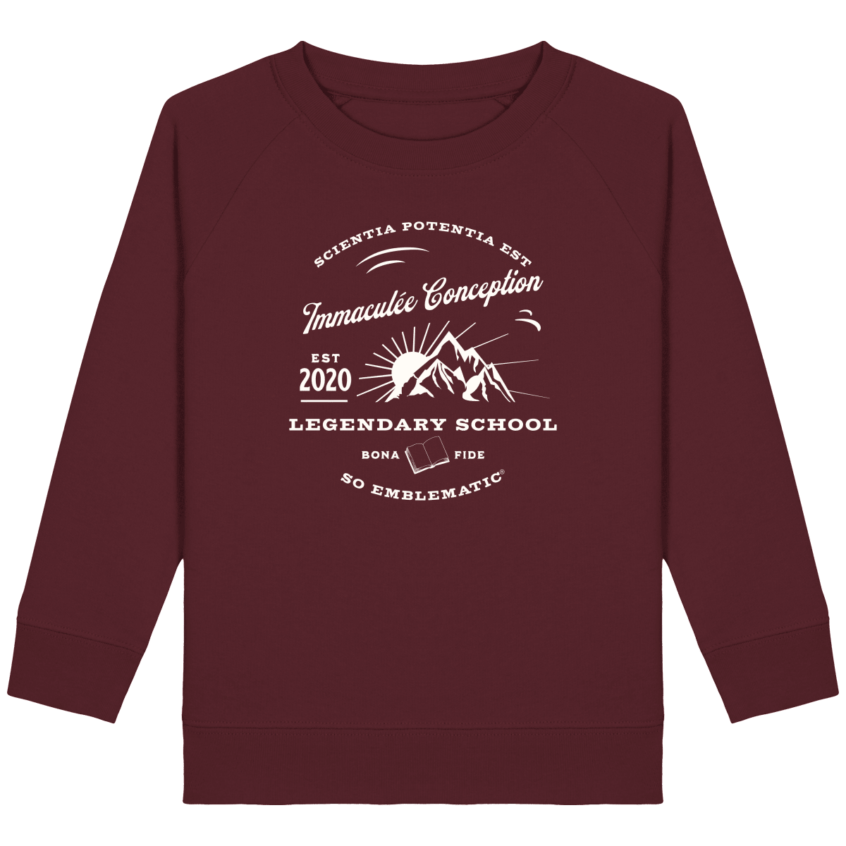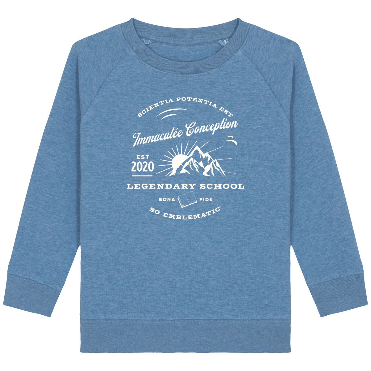 Sweat Enfant pour l’école Immaculée Conception. Sweat enfant col rond en coton BIO de la marque STANLEY STELLA. Manches raglan, Col en côte 1×1. Bande de propreté intérieur col en jersey. 1/2 lune intérieur col dans la matière principale, Côte 1×1 au bas de manches et bas de corps. Surpiqûre double aux emmanchures, bas de manches et bas de corps. Sweat intérieur en molleton non brossé (non duveteux). 85% coton biologique filé et peigné, 15% polyester recyclé. Coupe normale du 3/4 ans au 12/14 ans. 300 G/M².