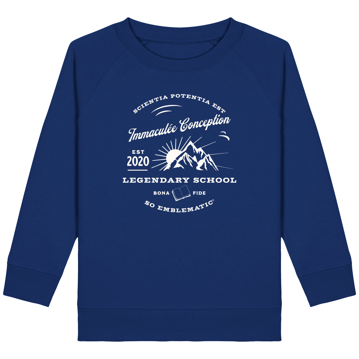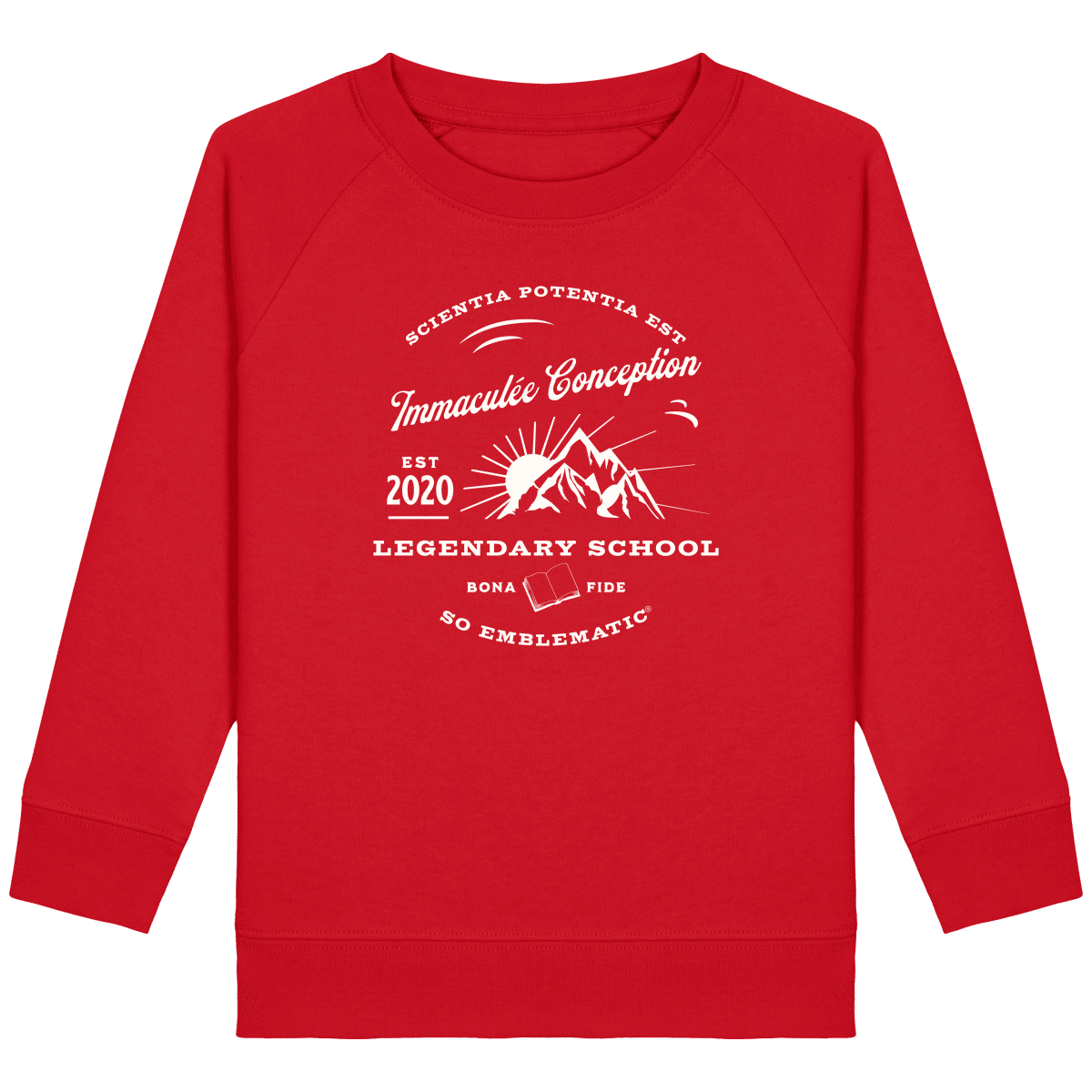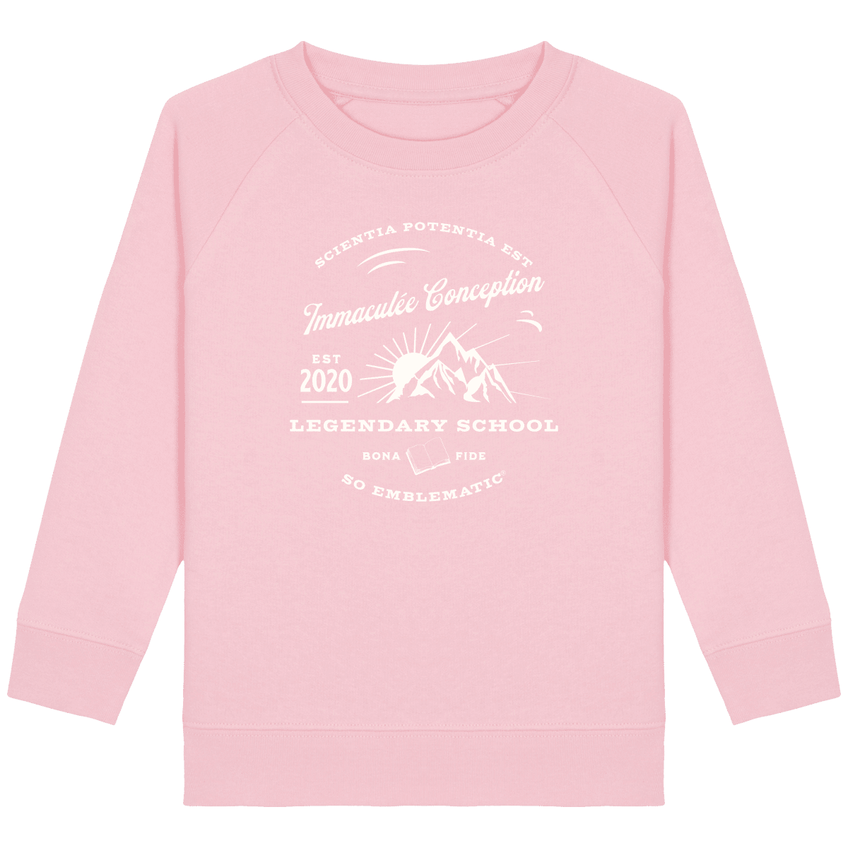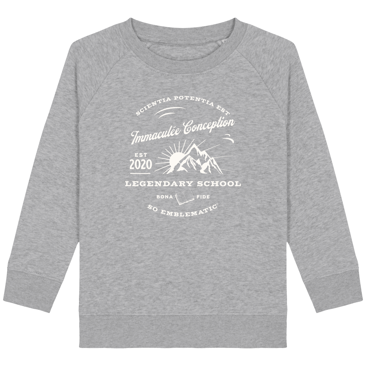 Sweat Enfant pour l’école Immaculée Conception. Sweat enfant col rond en coton BIO de la marque STANLEY STELLA. Manches raglan, Col en côte 1×1. Bande de propreté intérieur col en jersey. 1/2 lune intérieur col dans la matière principale, Côte 1×1 au bas de manches et bas de corps. Surpiqûre double aux emmanchures, bas de manches et bas de corps. Sweat intérieur en molleton non brossé (non duveteux). 85% coton biologique filé et peigné, 15% polyester recyclé. Coupe normale du 3/4 ans au 12/14 ans. 300 G/M².