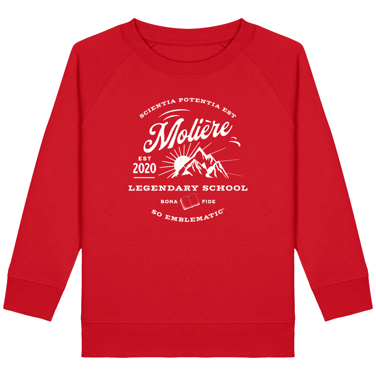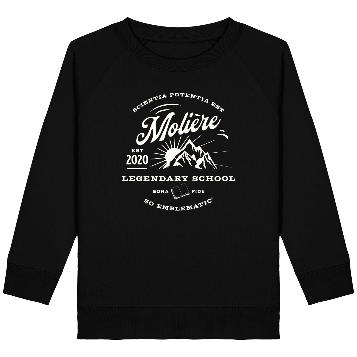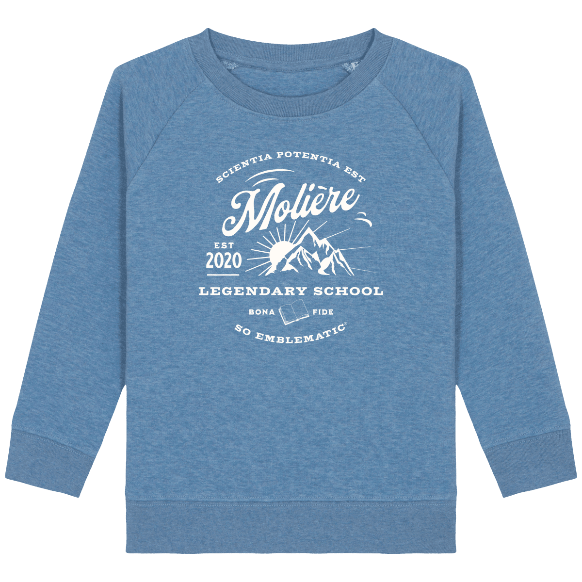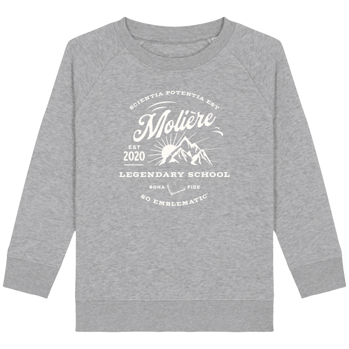 Sweat Enfant pour l’école Molière. Sweat enfant col rond en coton BIO de la marque STANLEY STELLA. Manches raglan, Col en côte 1×1. Bande de propreté intérieur col en jersey. 1/2 lune intérieur col dans la matière principale, Côte 1×1 au bas de manches et bas de corps. Surpiqûre double aux emmanchures, bas de manches et bas de corps. Sweat intérieur en molleton non brossé (non duveteux). 85% coton biologique filé et peigné, 15% polyester recyclé. Coupe normale du 3/4 ans au 12/14 ans. 300 G/M².