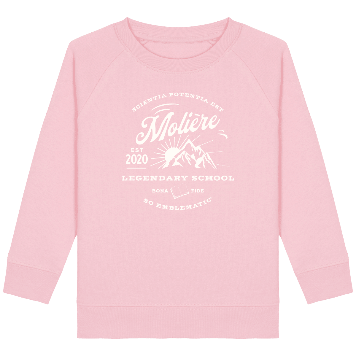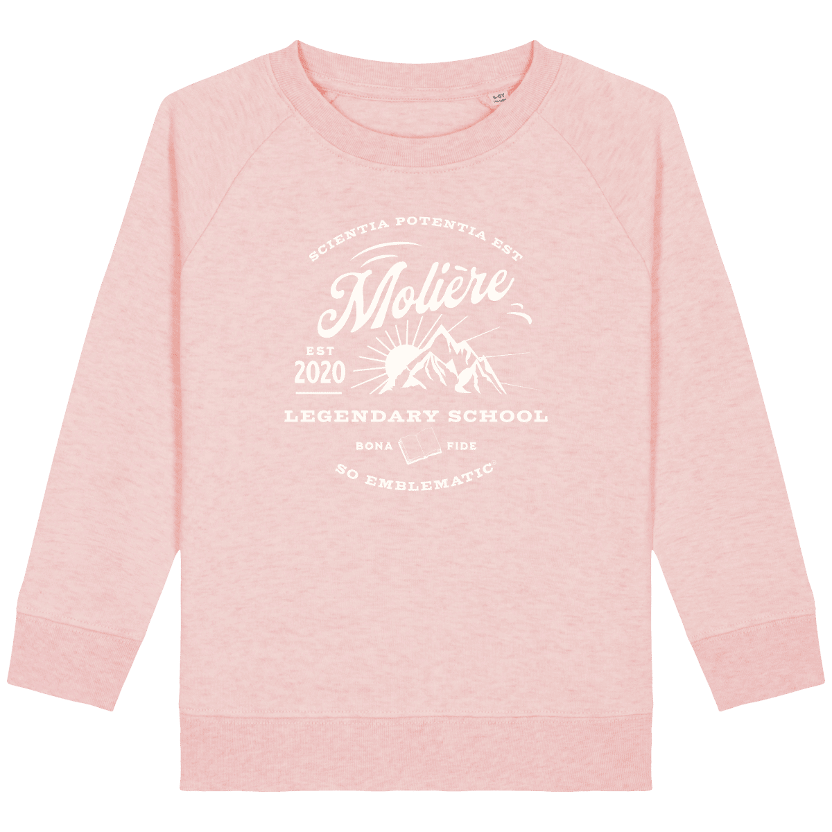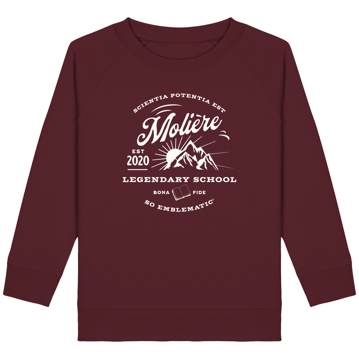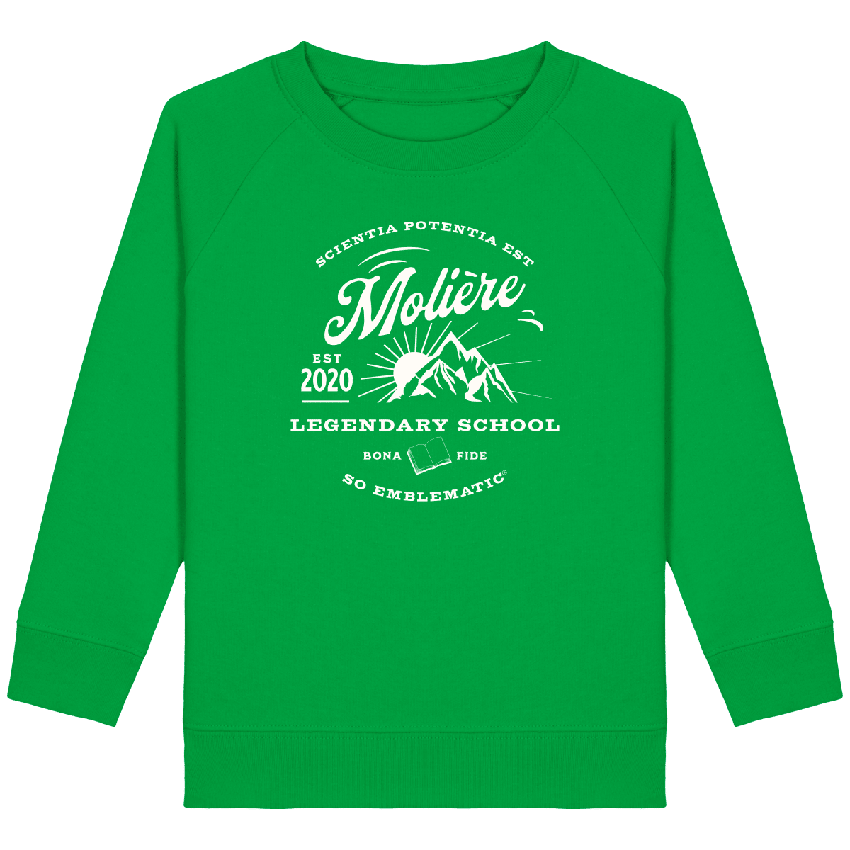 Sweat Enfant pour l’école Molière. Sweat enfant col rond en coton BIO de la marque STANLEY STELLA. Manches raglan, Col en côte 1×1. Bande de propreté intérieur col en jersey. 1/2 lune intérieur col dans la matière principale, Côte 1×1 au bas de manches et bas de corps. Surpiqûre double aux emmanchures, bas de manches et bas de corps. Sweat intérieur en molleton non brossé (non duveteux). 85% coton biologique filé et peigné, 15% polyester recyclé. Coupe normale du 3/4 ans au 12/14 ans. 300 G/M².