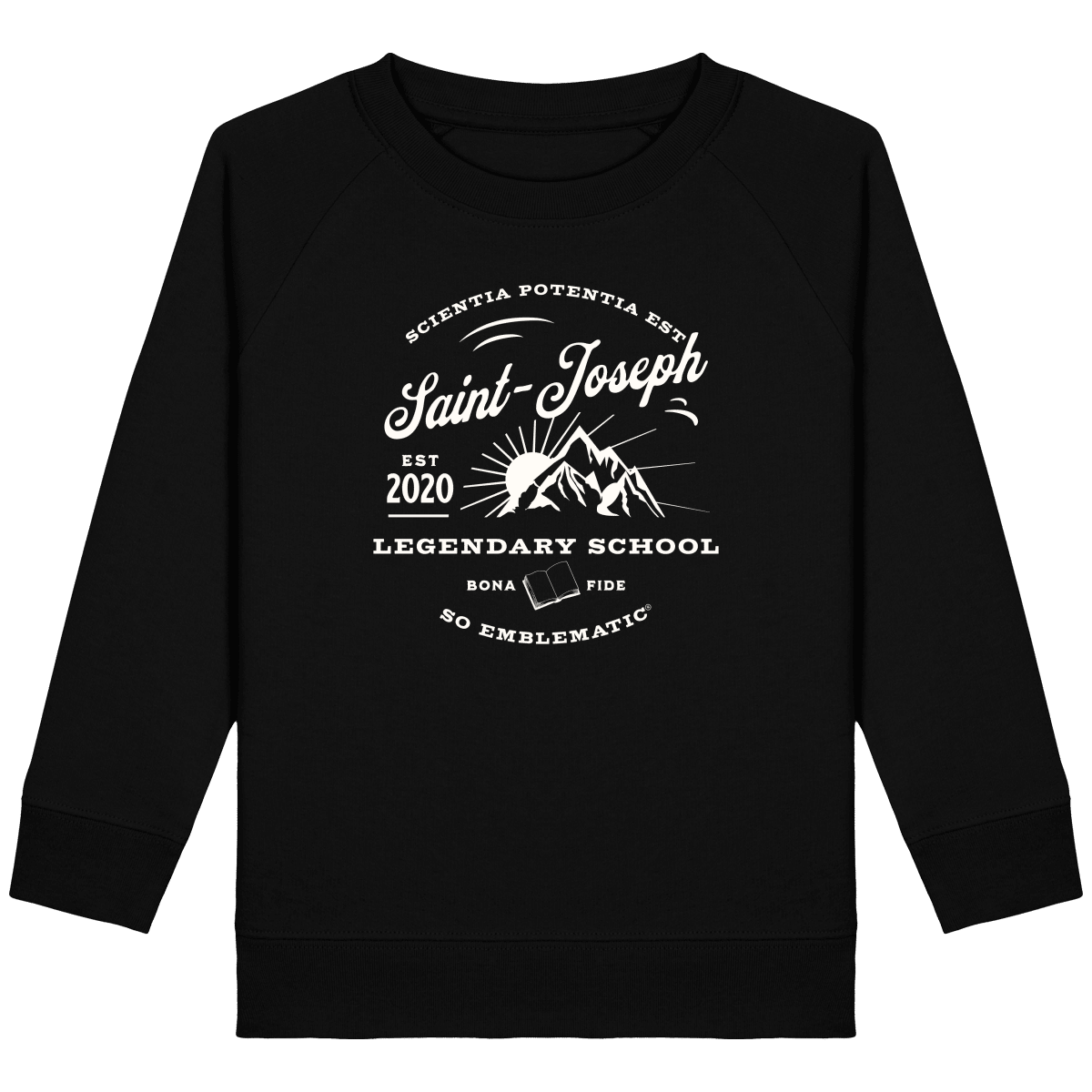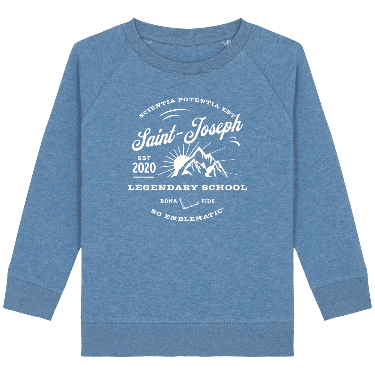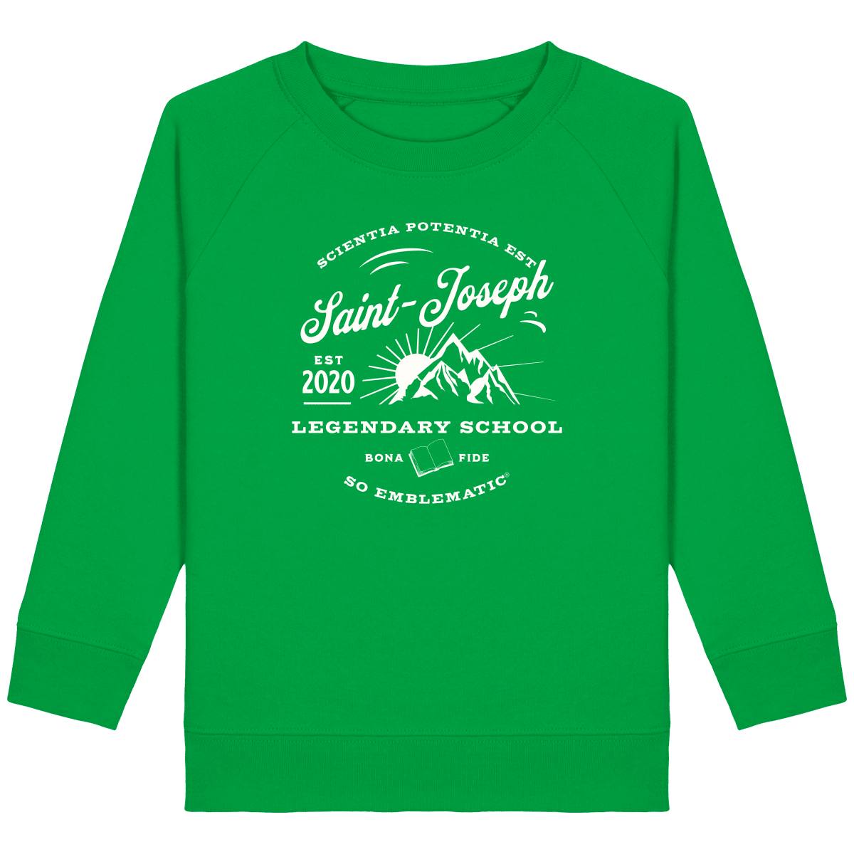 Sweat Enfant pour l’école Saint-Joseph. Sweat enfant col rond en coton BIO de la marque STANLEY STELLA. Manches raglan, Col en côte 1×1. Bande de propreté intérieur col en jersey. 1/2 lune intérieur col dans la matière principale, Côte 1×1 au bas de manches et bas de corps. Surpiqûre double aux emmanchures, bas de manches et bas de corps. Sweat intérieur en molleton non brossé (non duveteux). 85% coton biologique filé et peigné, 15% polyester recyclé. Coupe normale du 3/4 ans au 12/14 ans. 300 G/M².