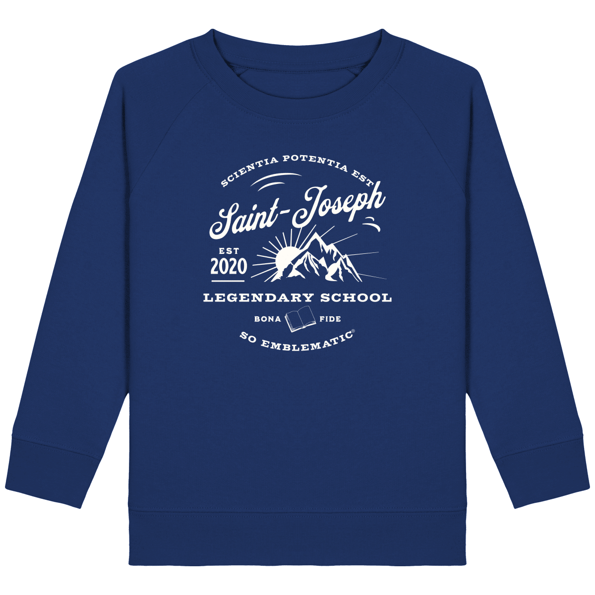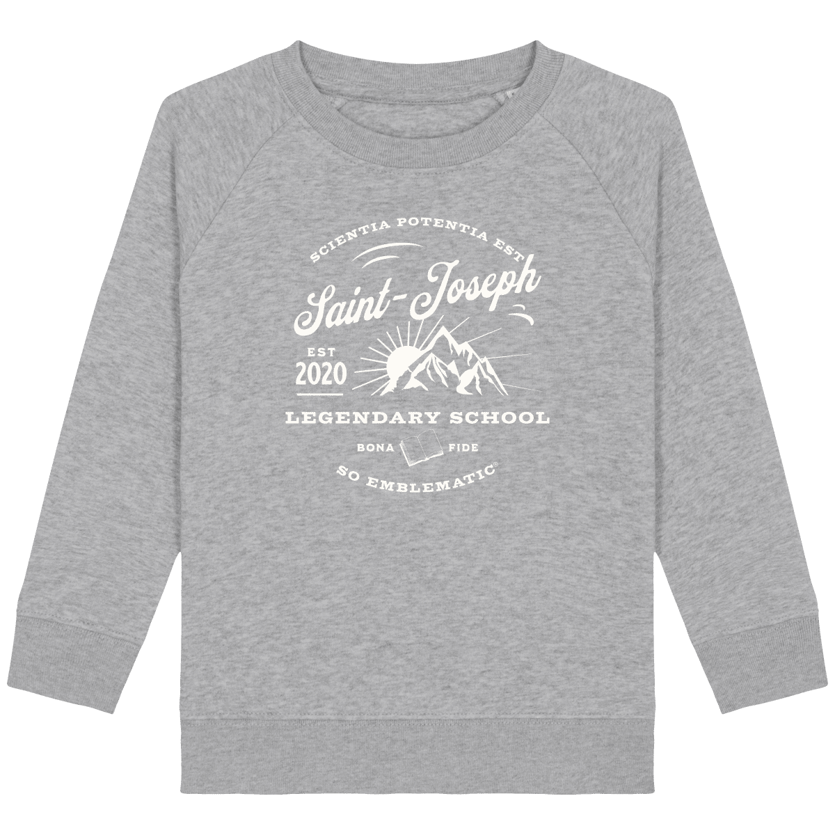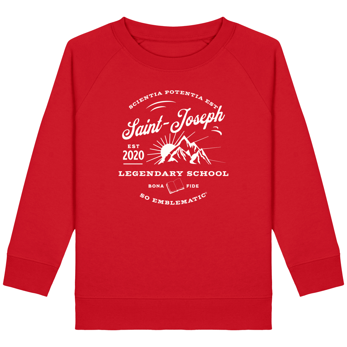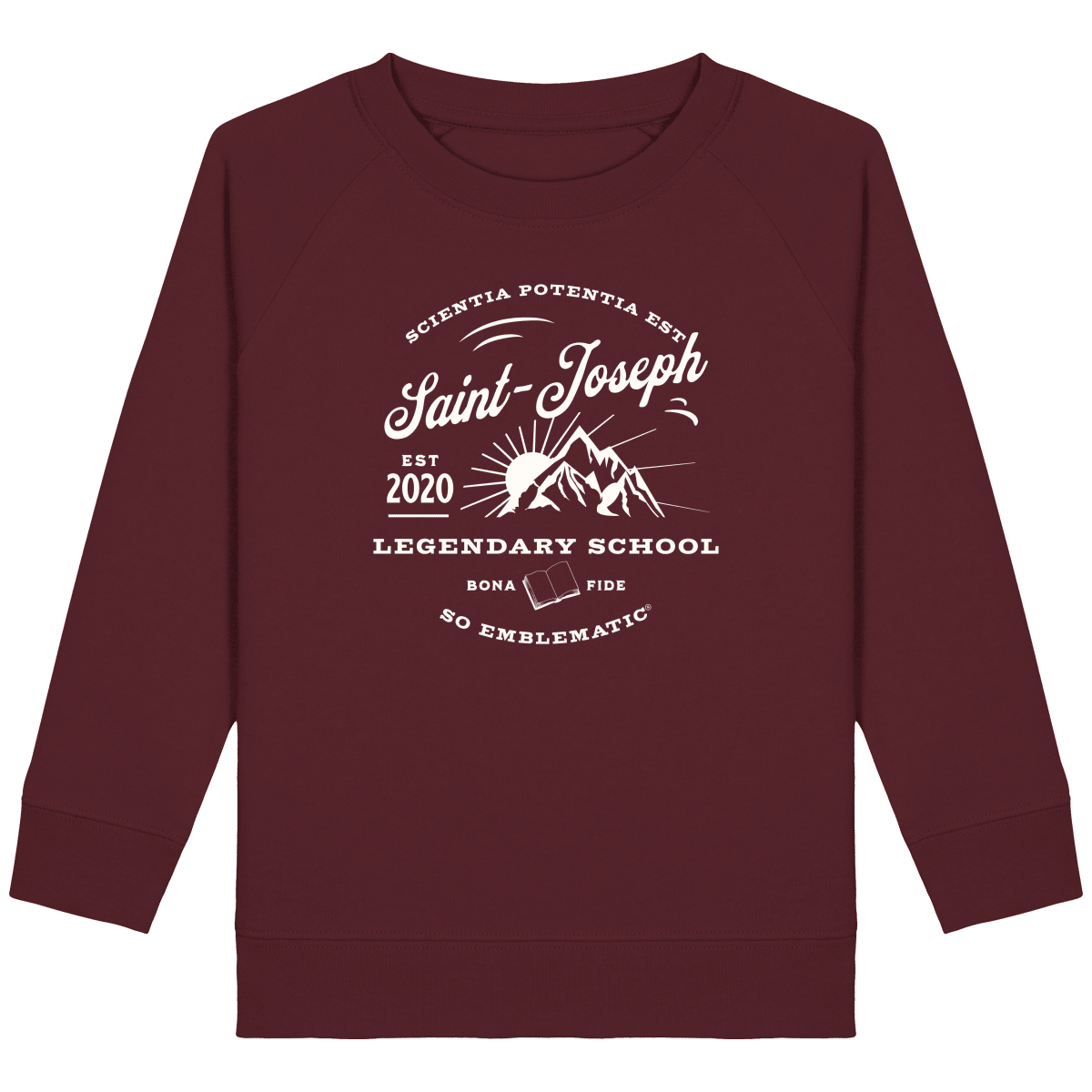 Sweat Enfant pour l’école Saint-Joseph. Sweat enfant col rond en coton BIO de la marque STANLEY STELLA. Manches raglan, Col en côte 1×1. Bande de propreté intérieur col en jersey. 1/2 lune intérieur col dans la matière principale, Côte 1×1 au bas de manches et bas de corps. Surpiqûre double aux emmanchures, bas de manches et bas de corps. Sweat intérieur en molleton non brossé (non duveteux). 85% coton biologique filé et peigné, 15% polyester recyclé. Coupe normale du 3/4 ans au 12/14 ans. 300 G/M².