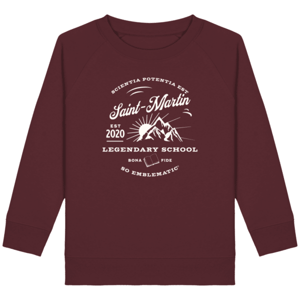 Sweat Enfant pour l’école Saint-Martin. Sweat enfant col rond en coton BIO de la marque STANLEY STELLA. Manches raglan, Col en côte 1×1. Bande de propreté intérieur col en jersey. 1/2 lune intérieur col dans la matière principale, Côte 1×1 au bas de manches et bas de corps. Surpiqûre double aux emmanchures, bas de manches et bas de corps. Sweat intérieur en molleton non brossé (non duveteux). 85% coton biologique filé et peigné, 15% polyester recyclé. Coupe normale du 3/4 ans au 12/14 ans. 300 G/M².