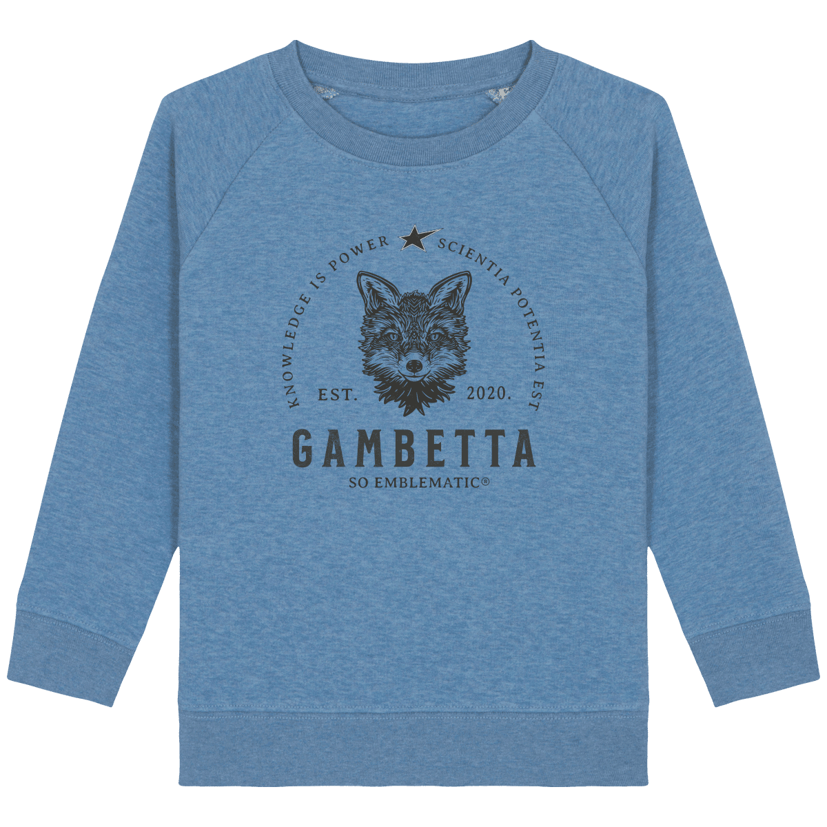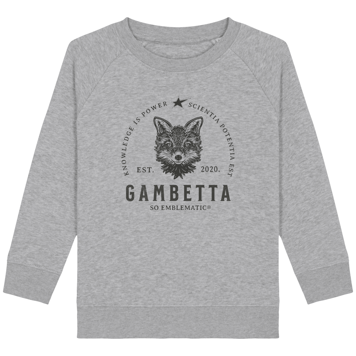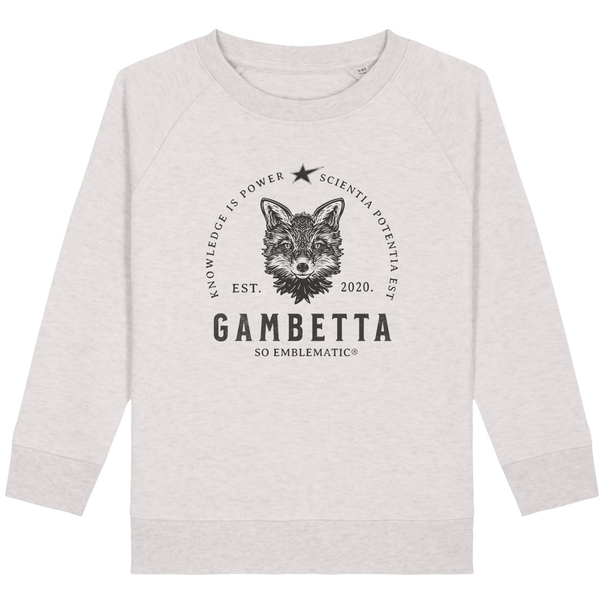 Sweat Enfant Renard Gambetta. Sweat enfant col rond en coton BIO de la marque STANLEY STELLA. Manches raglan, Col en côte 1×1. Bande de propreté intérieur col en jersey. 1/2 lune intérieur col dans la matière principale, Côte 1×1 au bas de manches et bas de corps. Surpiqûre double aux emmanchures, bas de manches et bas de corps. Sweat intérieur en molleton non brossé (non duveteux). 85% coton biologique filé et peigné, 15% polyester recyclé. Coupe normale du 3/4 ans au 12/14 ans. 300 G/M².