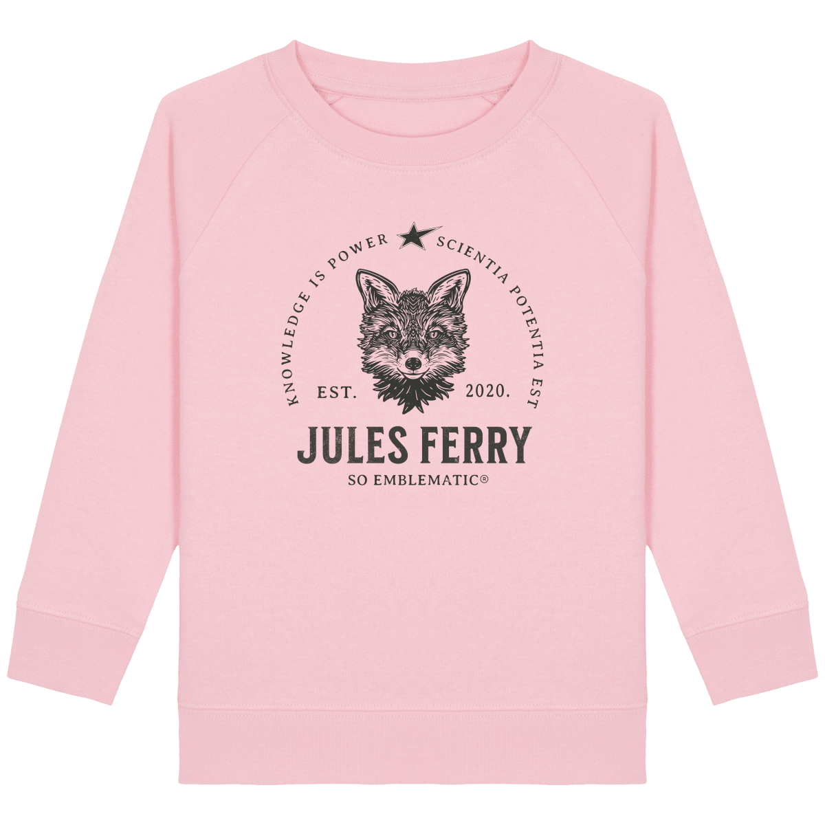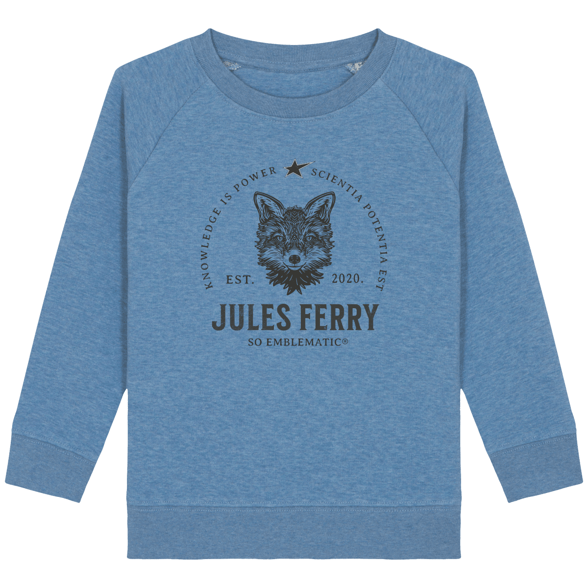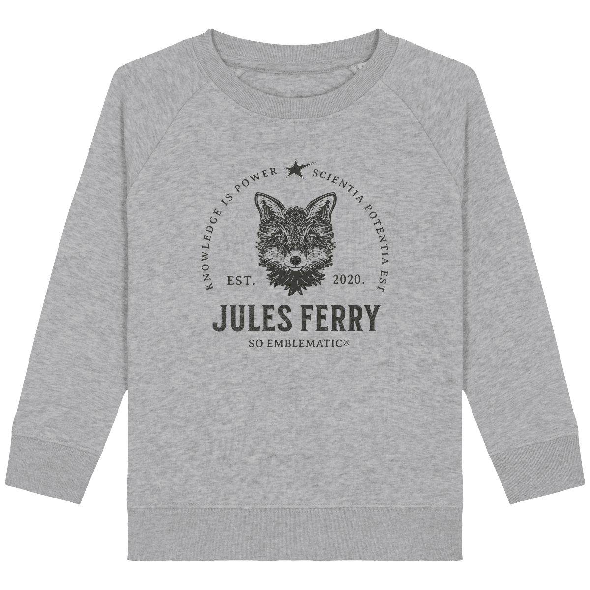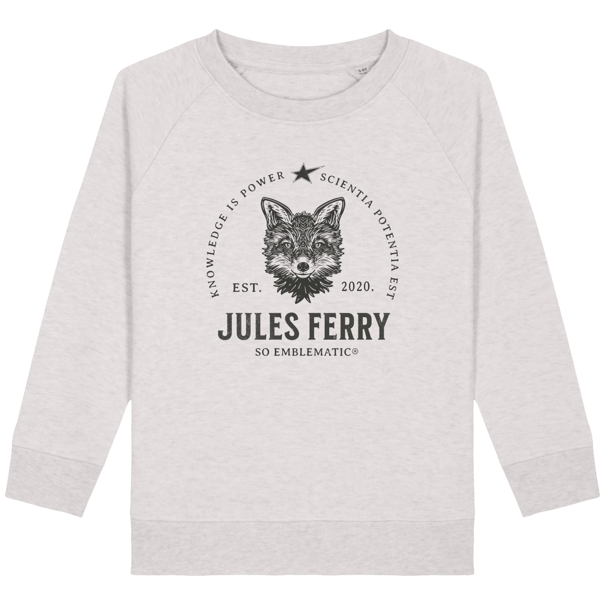Sweat Enfant Renard JULES FERRY. Sweat enfant col rond en coton BIO de la marque STANLEY STELLA. Manches raglan, Col en côte 1×1. Bande de propreté intérieur col en jersey. 1/2 lune intérieur col dans la matière principale, Côte 1×1 au bas de manches et bas de corps. Surpiqûre double aux emmanchures, bas de manches et bas de corps. Sweat intérieur en molleton non brossé (non duveteux). 85% coton biologique filé et peigné, 15% polyester recyclé. Coupe normale du 3/4 ans au 12/14 ans. 300 G/M².
