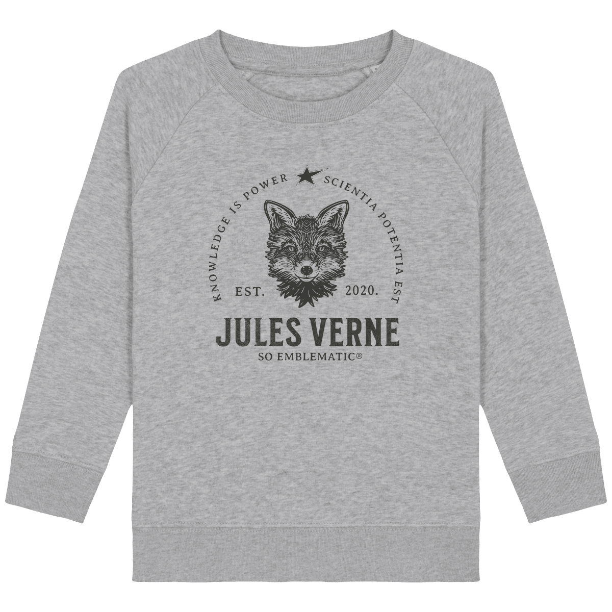 Sweat Enfant Renard JULES VERNE. Sweat enfant col rond en coton BIO de la marque STANLEY STELLA. Manches raglan, Col en côte 1×1. Bande de propreté intérieur col en jersey. 1/2 lune intérieur col dans la matière principale, Côte 1×1 au bas de manches et bas de corps. Surpiqûre double aux emmanchures, bas de manches et bas de corps. Sweat intérieur en molleton non brossé (non duveteux). 85% coton biologique filé et peigné, 15% polyester recyclé. Coupe normale du 3/4 ans au 12/14 ans. 300 G/M².