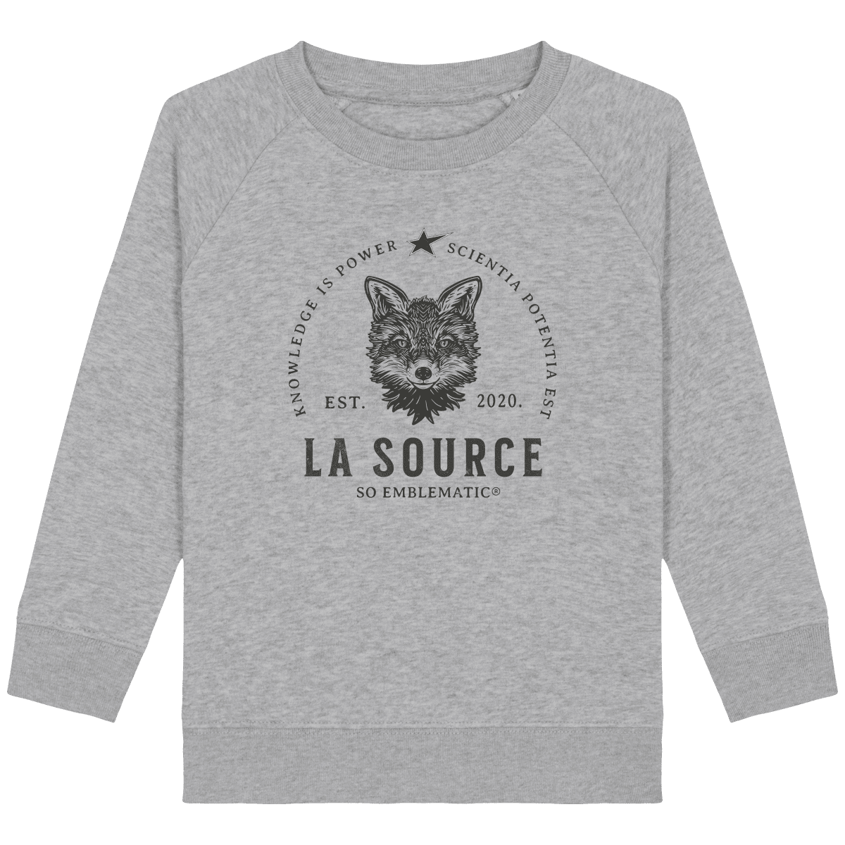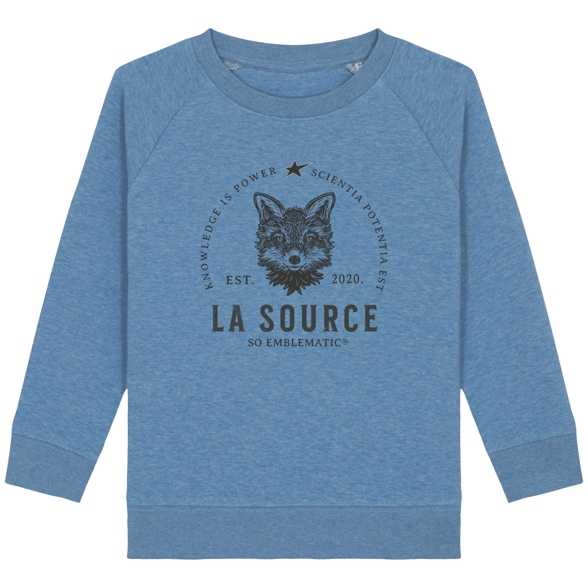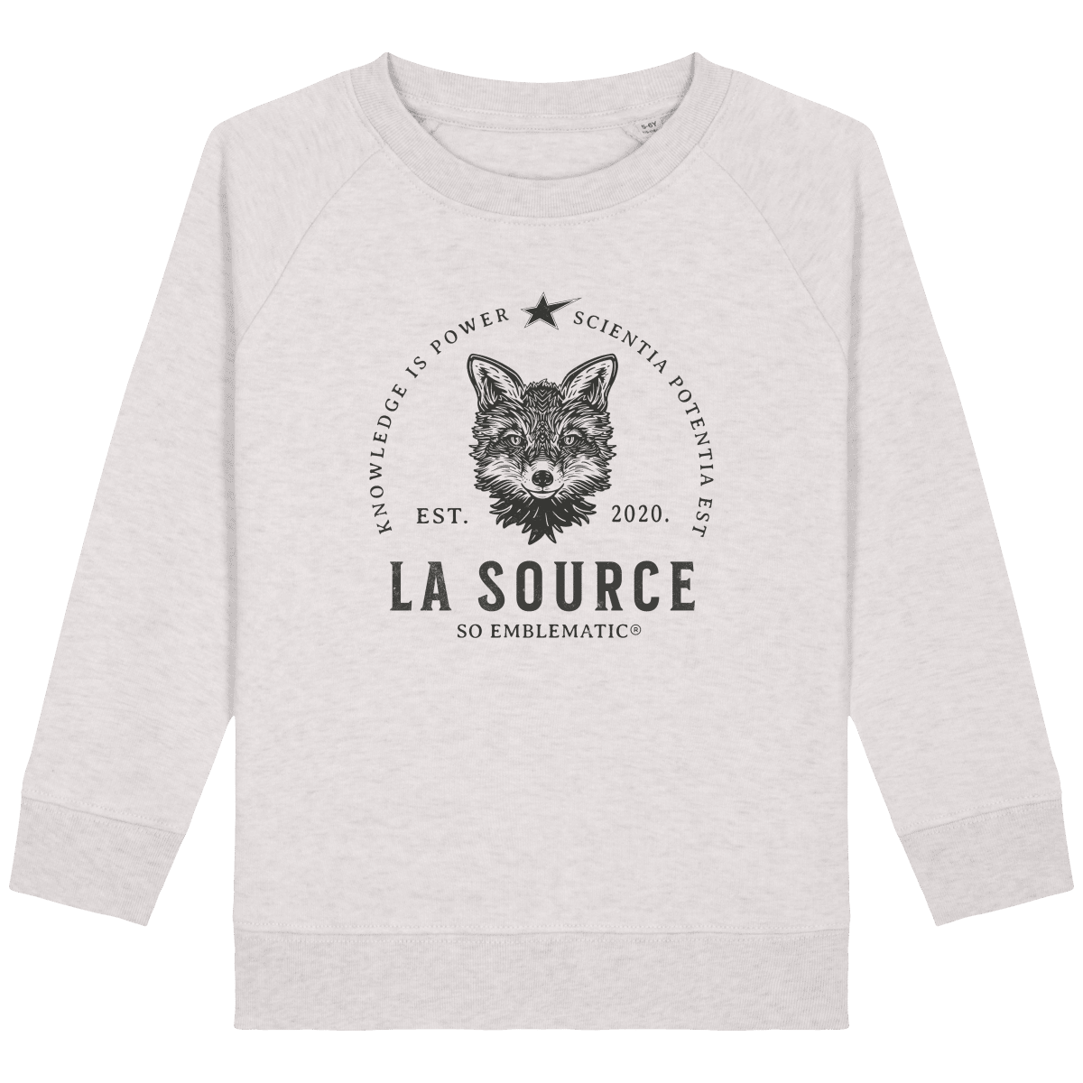 Sweat Enfant Renard LA SOURCE. Sweat enfant col rond en coton BIO de la marque STANLEY STELLA. Manches raglan, Col en côte 1×1. Bande de propreté intérieur col en jersey. 1/2 lune intérieur col dans la matière principale, Côte 1×1 au bas de manches et bas de corps. Surpiqûre double aux emmanchures, bas de manches et bas de corps. Sweat intérieur en molleton non brossé (non duveteux). 85% coton biologique filé et peigné, 15% polyester recyclé. Coupe normale du 3/4 ans au 12/14 ans. 300 G/M².