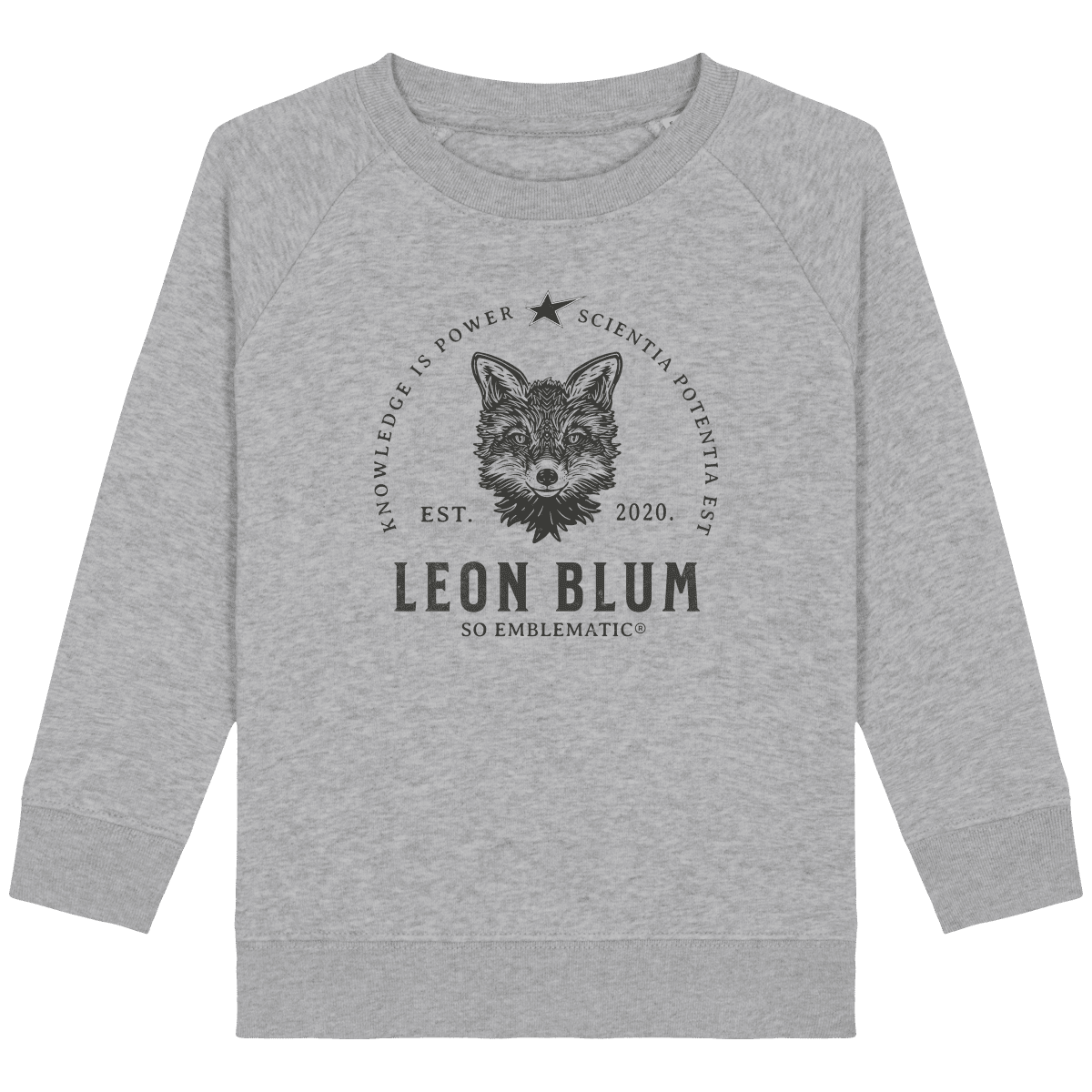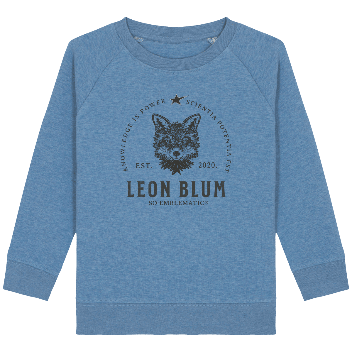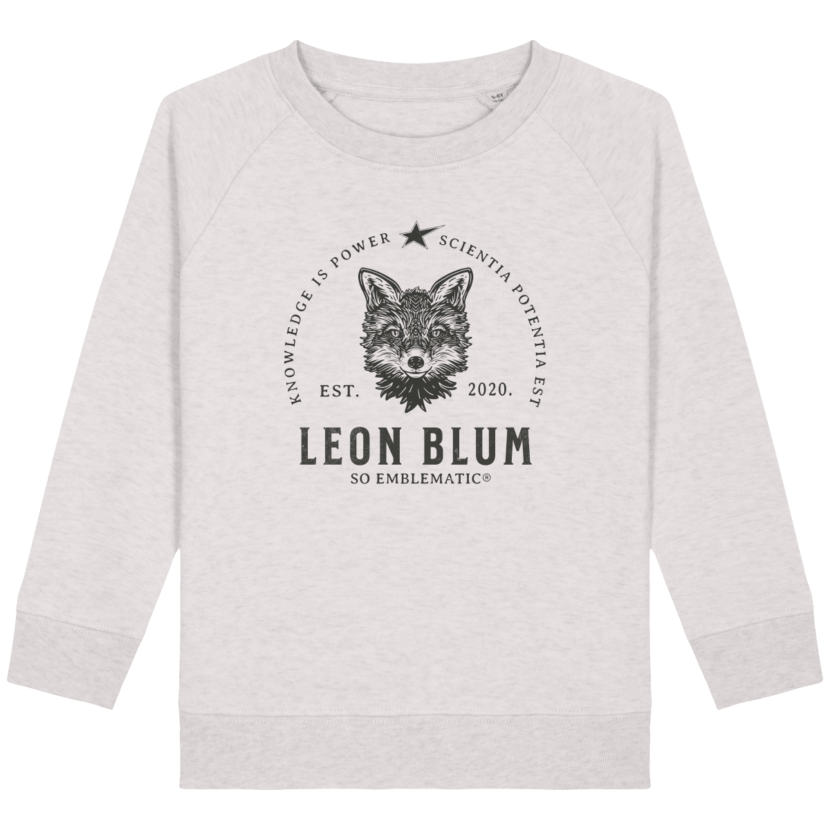 Sweat Enfant Renard LEON BLUM. Sweat enfant col rond en coton BIO de la marque STANLEY STELLA. Manches raglan, Col en côte 1×1. Bande de propreté intérieur col en jersey. 1/2 lune intérieur col dans la matière principale, Côte 1×1 au bas de manches et bas de corps. Surpiqûre double aux emmanchures, bas de manches et bas de corps. Sweat intérieur en molleton non brossé (non duveteux). 85% coton biologique filé et peigné, 15% polyester recyclé. Coupe normale du 3/4 ans au 12/14 ans. 300 G/M².