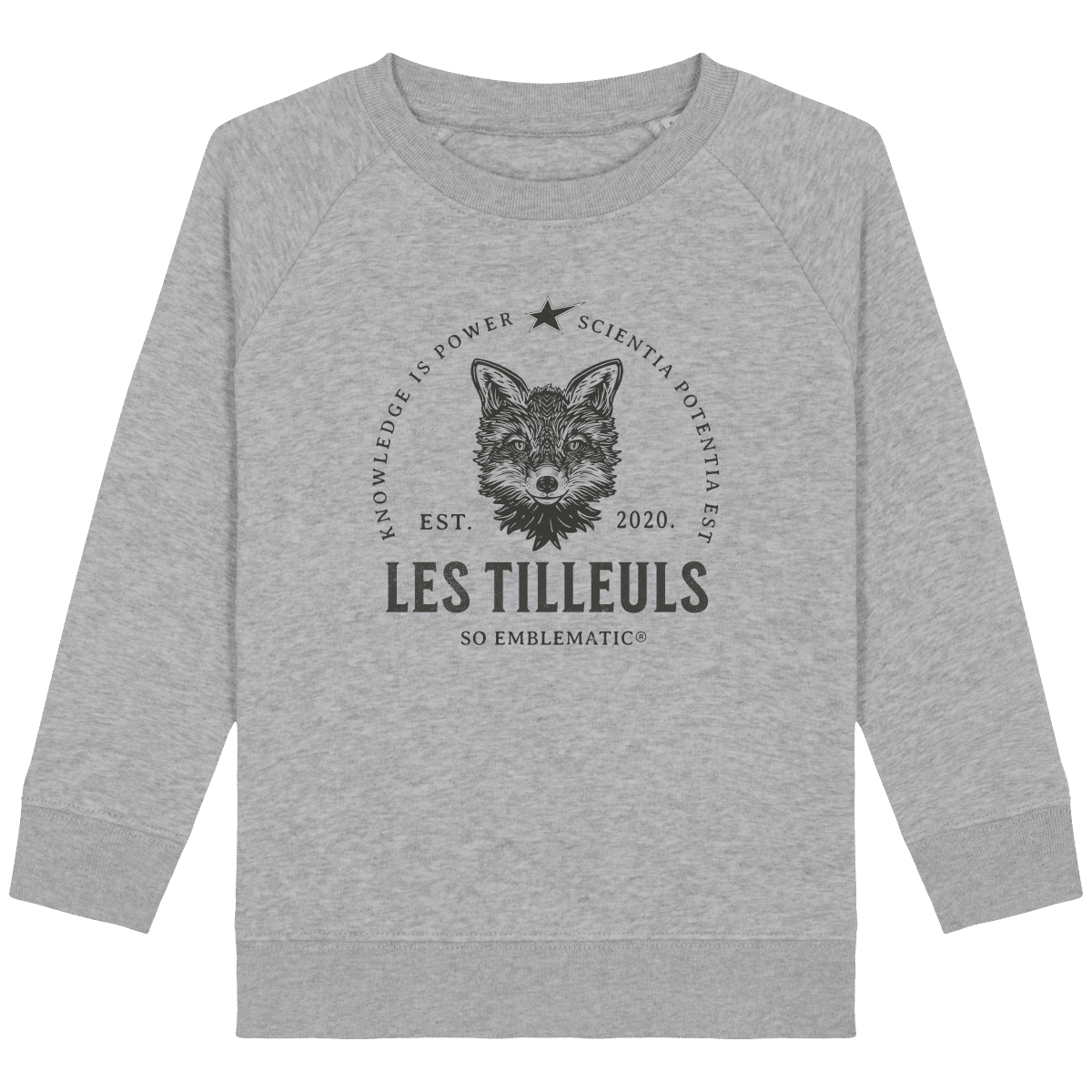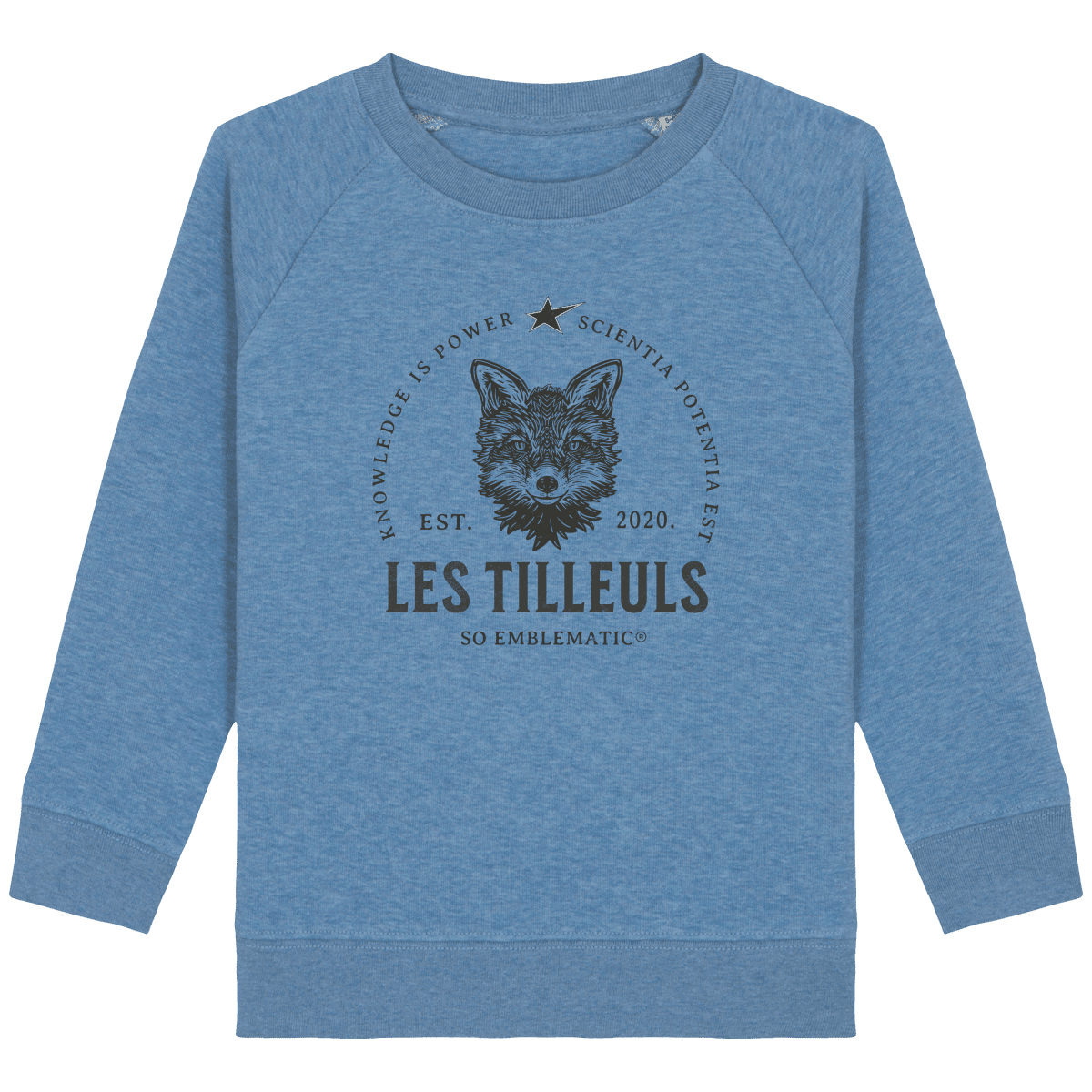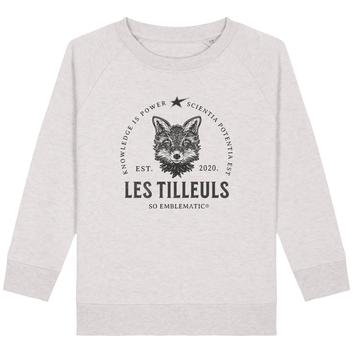 Sweat Enfant Renard LES TILLEULS. Sweat enfant col rond en coton BIO de la marque STANLEY STELLA. Manches raglan, Col en côte 1×1. Bande de propreté intérieur col en jersey. 1/2 lune intérieur col dans la matière principale, Côte 1×1 au bas de manches et bas de corps. Surpiqûre double aux emmanchures, bas de manches et bas de corps. Sweat intérieur en molleton non brossé (non duveteux). 85% coton biologique filé et peigné, 15% polyester recyclé. Coupe normale du 3/4 ans au 12/14 ans. 300 G/M².