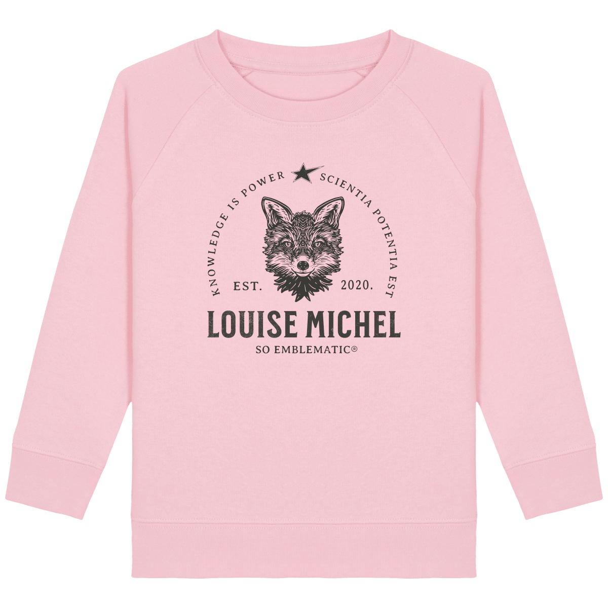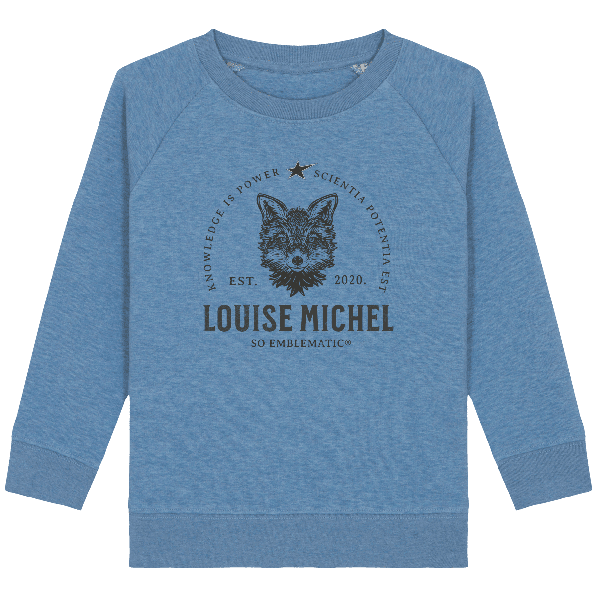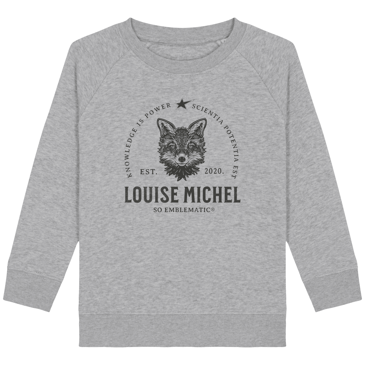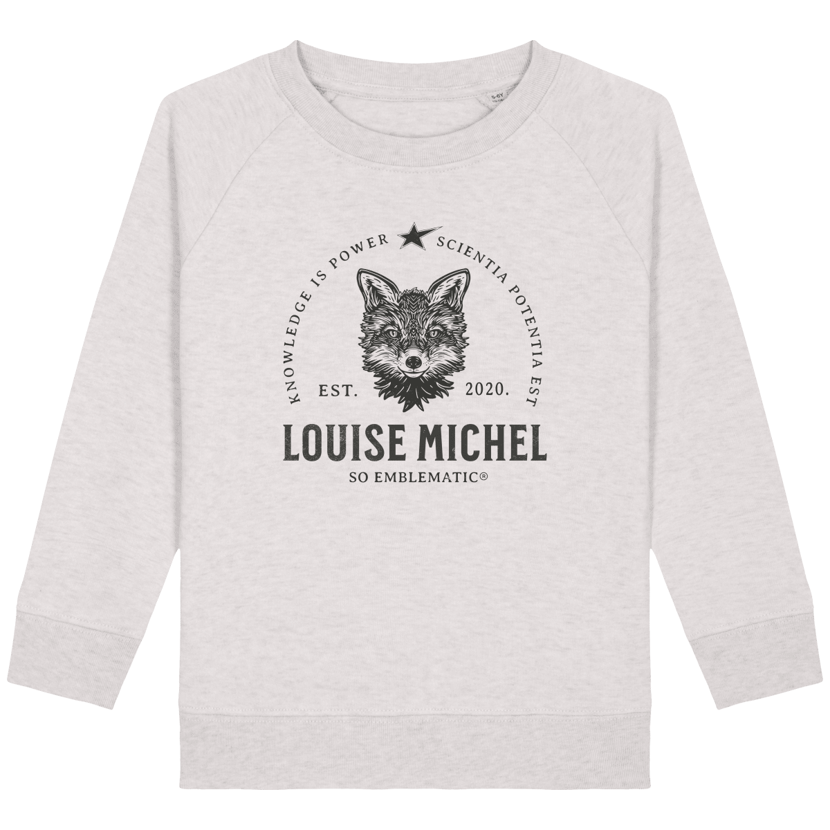 Sweat Enfant Renard LOUISE MICHEL. Sweat enfant col rond en coton BIO de la marque STANLEY STELLA. Manches raglan, Col en côte 1×1. Bande de propreté intérieur col en jersey. 1/2 lune intérieur col dans la matière principale, Côte 1×1 au bas de manches et bas de corps. Surpiqûre double aux emmanchures, bas de manches et bas de corps. Sweat intérieur en molleton non brossé (non duveteux). 85% coton biologique filé et peigné, 15% polyester recyclé. Coupe normale du 3/4 ans au 12/14 ans. 300 G/M².