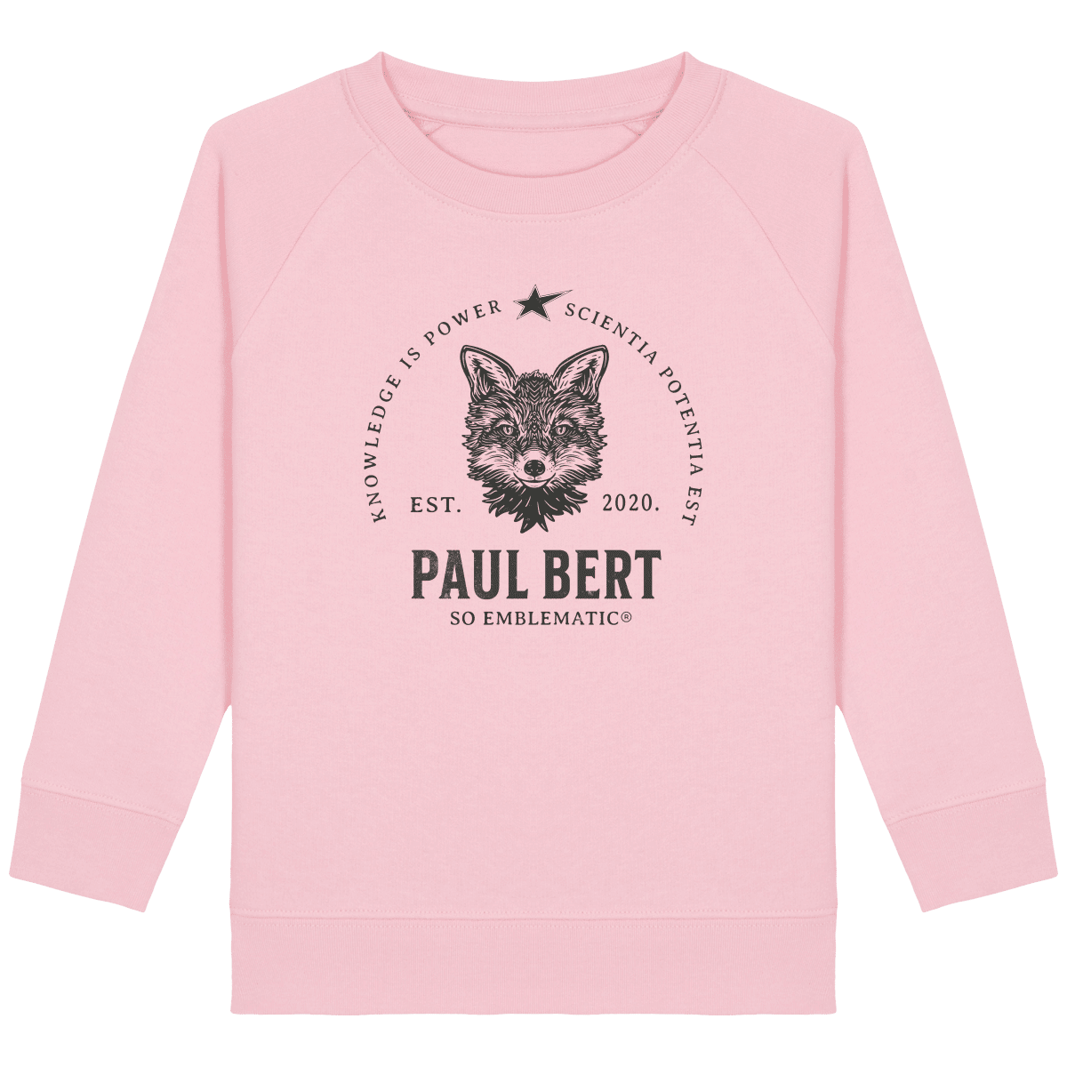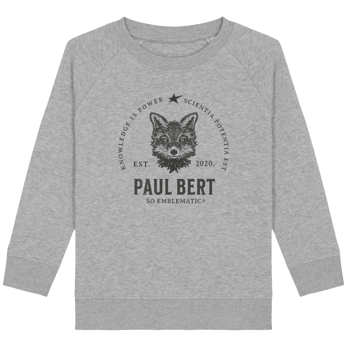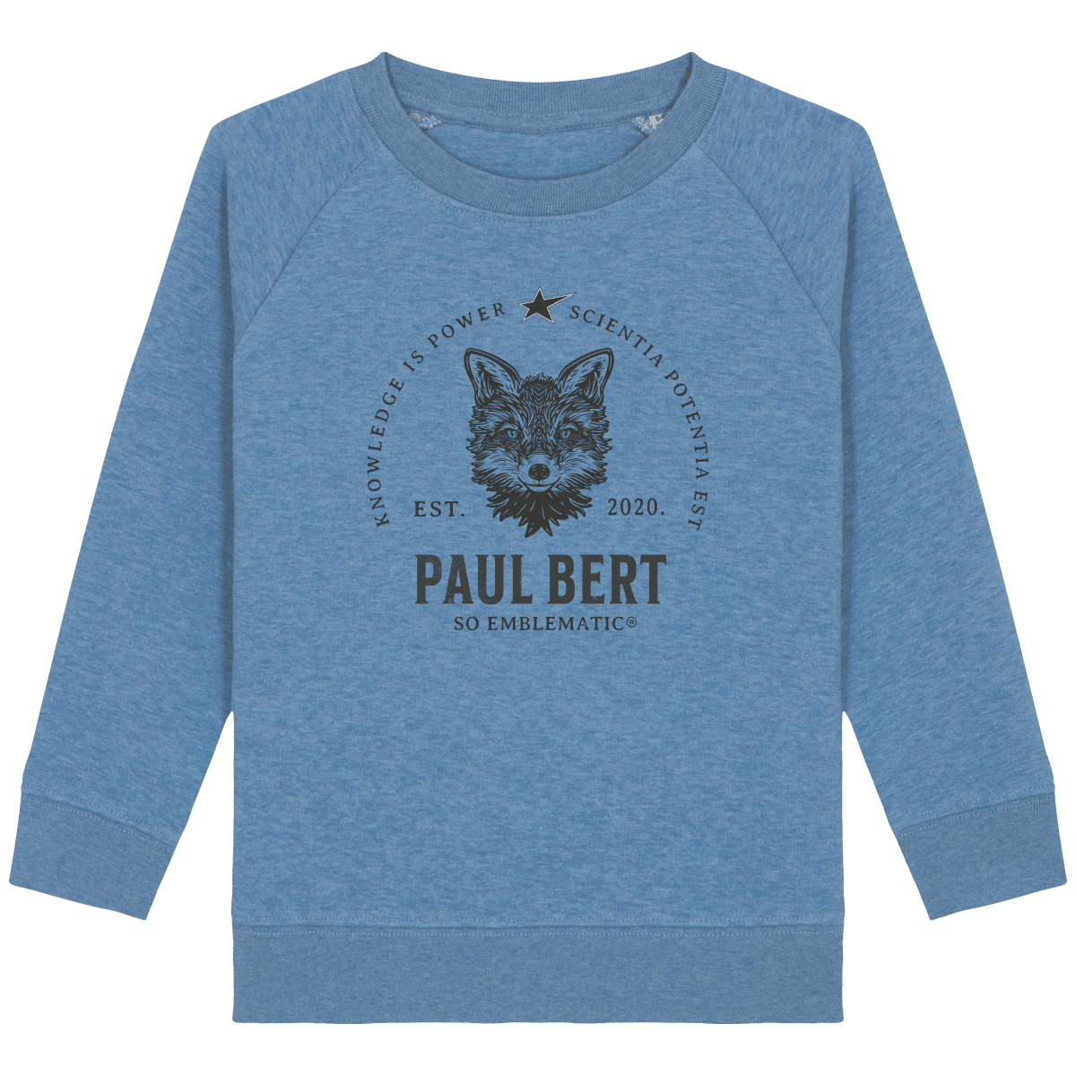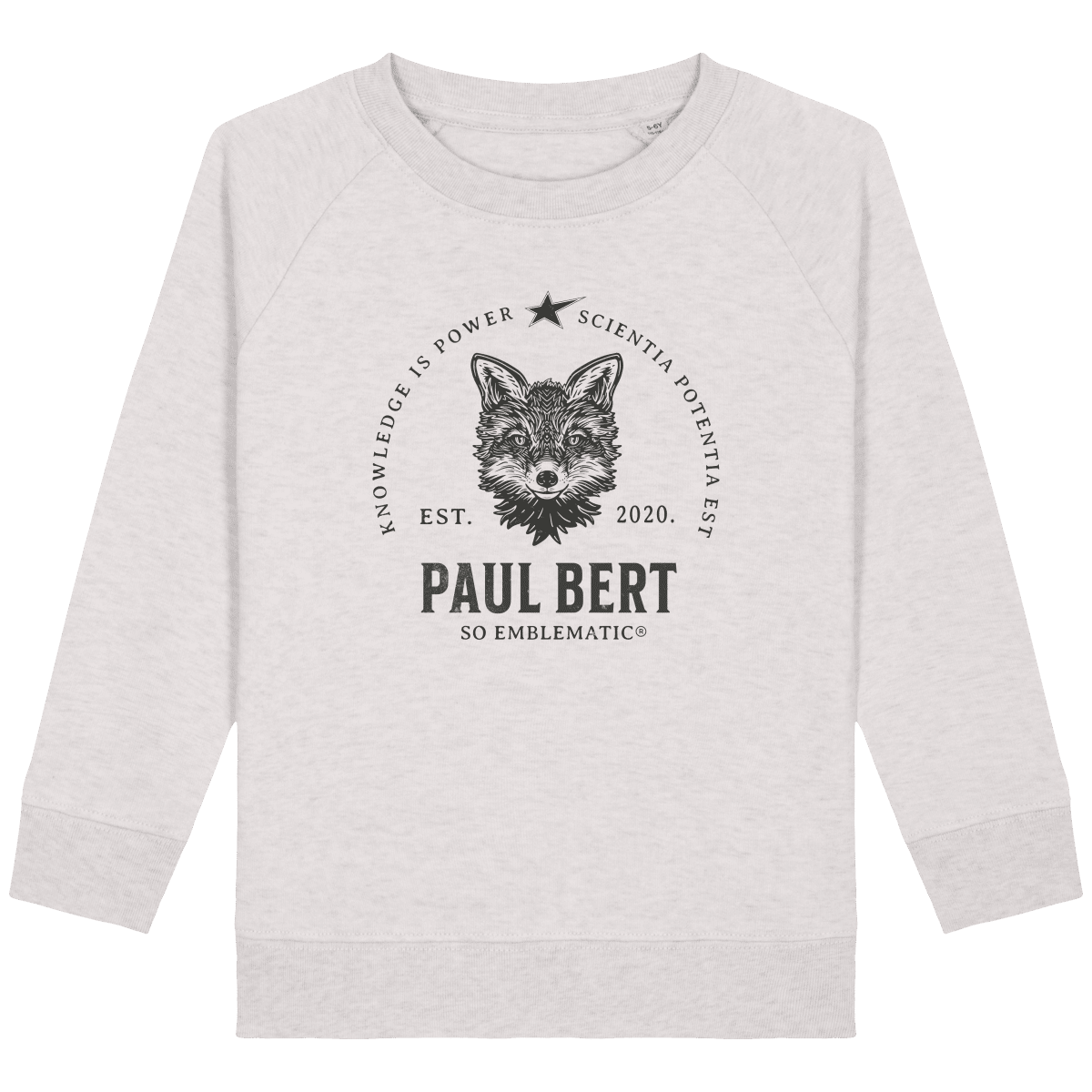 Sweat Enfant Renard PAUL BERT. Sweat enfant col rond en coton BIO de la marque STANLEY STELLA. Manches raglan, Col en côte 1×1. Bande de propreté intérieur col en jersey. 1/2 lune intérieur col dans la matière principale, Côte 1×1 au bas de manches et bas de corps. Surpiqûre double aux emmanchures, bas de manches et bas de corps. Sweat intérieur en molleton non brossé (non duveteux). 85% coton biologique filé et peigné, 15% polyester recyclé. Coupe normale du 3/4 ans au 12/14 ans. 300 G/M².