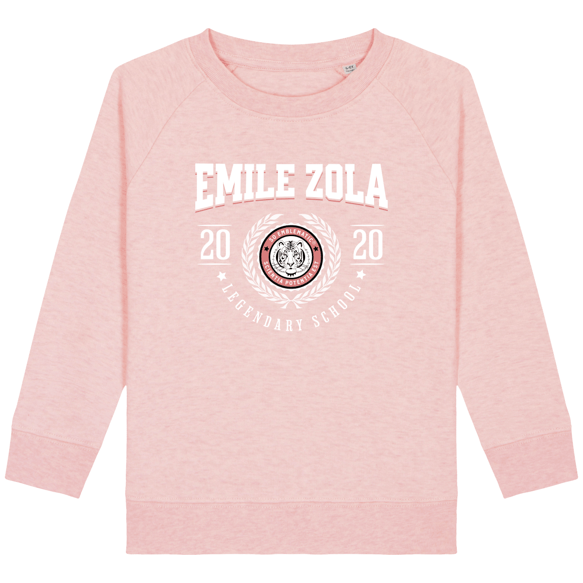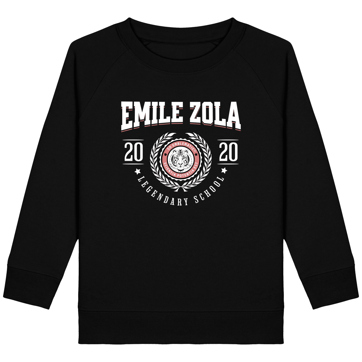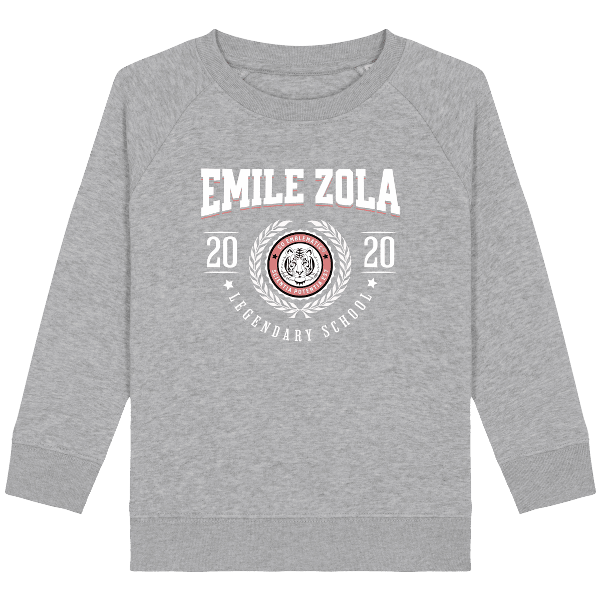 Sweat Enfant university EMILE ZOLA. Sweat enfant col rond en coton BIO de la marque STANLEY STELLA. Manches raglan, Col en côte 1×1. Bande de propreté intérieur col en jersey. 1/2 lune intérieur col dans la matière principale, Côte 1×1 au bas de manches et bas de corps. Surpiqûre double aux emmanchures, bas de manches et bas de corps. Sweat intérieur en molleton non brossé (non duveteux). 85% coton biologique filé et peigné, 15% polyester recyclé. Coupe normale du 3/4 ans au 12/14 ans. 300 G/M².