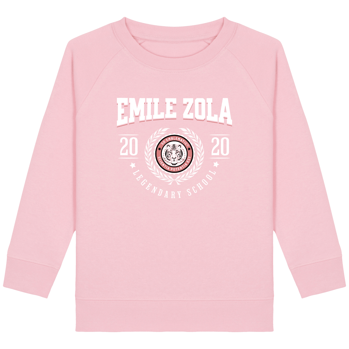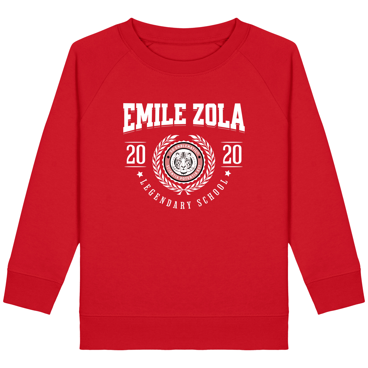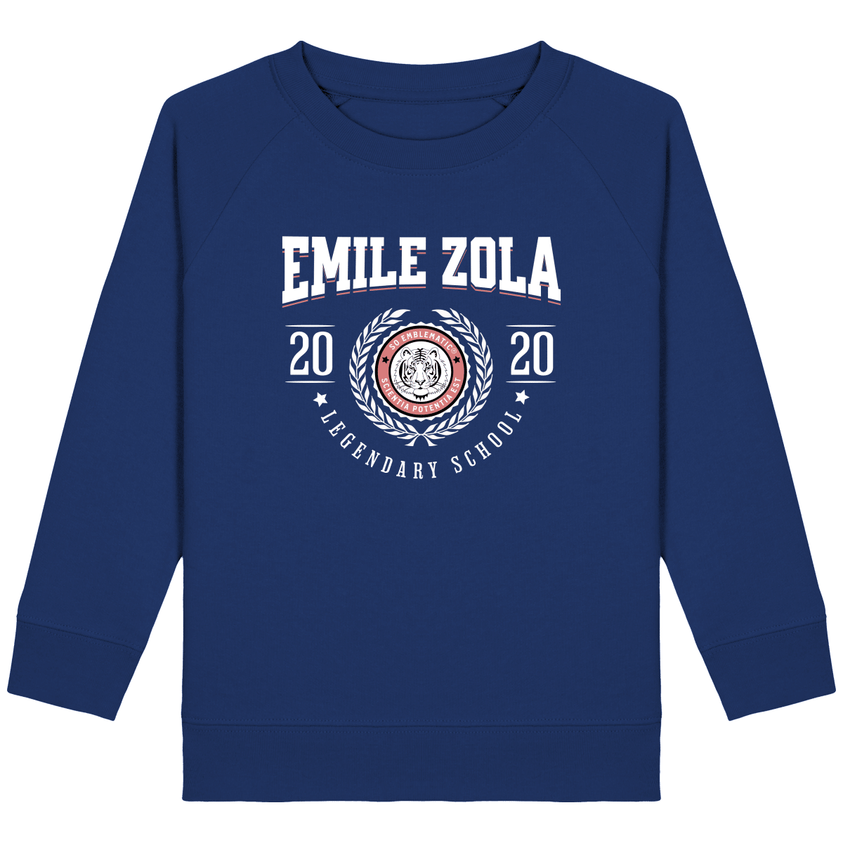Sweat Enfant university EMILE ZOLA. Sweat enfant col rond en coton BIO de la marque STANLEY STELLA. Manches raglan, Col en côte 1×1. Bande de propreté intérieur col en jersey. 1/2 lune intérieur col dans la matière principale, Côte 1×1 au bas de manches et bas de corps. Surpiqûre double aux emmanchures, bas de manches et bas de corps. Sweat intérieur en molleton non brossé (non duveteux). 85% coton biologique filé et peigné, 15% polyester recyclé. Coupe normale du 3/4 ans au 12/14 ans. 300 G/M².