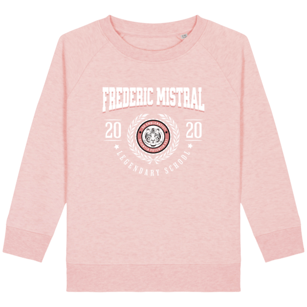 Sweat Enfant University FREDERIC MISTRAL. Sweat enfant col rond en coton BIO de la marque STANLEY STELLA. Manches raglan, Col en côte 1×1. Bande de propreté intérieur col en jersey. 1/2 lune intérieur col dans la matière principale, Côte 1×1 au bas de manches et bas de corps. Surpiqûre double aux emmanchures, bas de manches et bas de corps. Sweat intérieur en molleton non brossé (non duveteux). 85% coton biologique filé et peigné, 15% polyester recyclé. Coupe normale du 3/4 ans au 12/14 ans. 300 G/M².