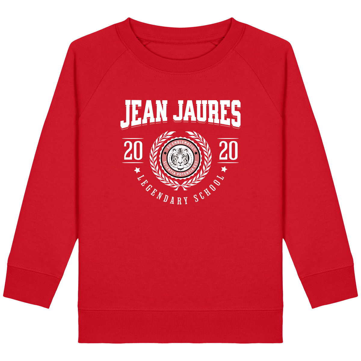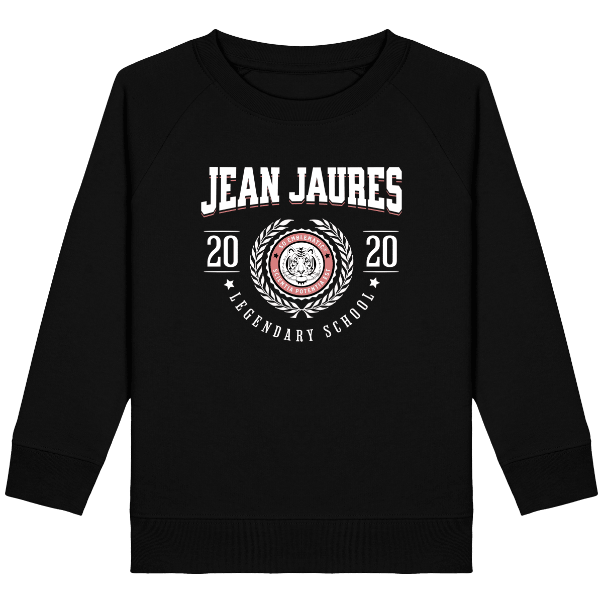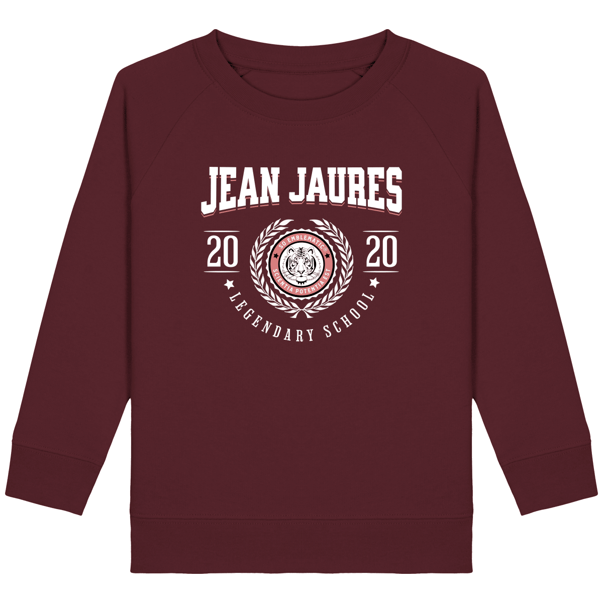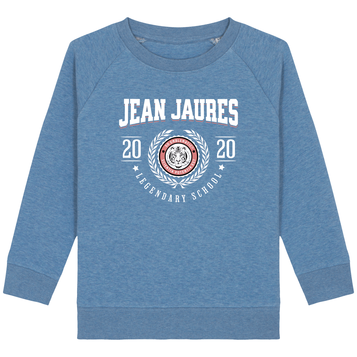 Sweat Enfant University JEAN JAURES. Sweat enfant col rond en coton BIO de la marque STANLEY STELLA. Manches raglan, Col en côte 1×1. Bande de propreté intérieur col en jersey. 1/2 lune intérieur col dans la matière principale, Côte 1×1 au bas de manches et bas de corps. Surpiqûre double aux emmanchures, bas de manches et bas de corps. Sweat intérieur en molleton non brossé (non duveteux). 85% coton biologique filé et peigné, 15% polyester recyclé. Coupe normale du 3/4 ans au 12/14 ans. 300 G/M².