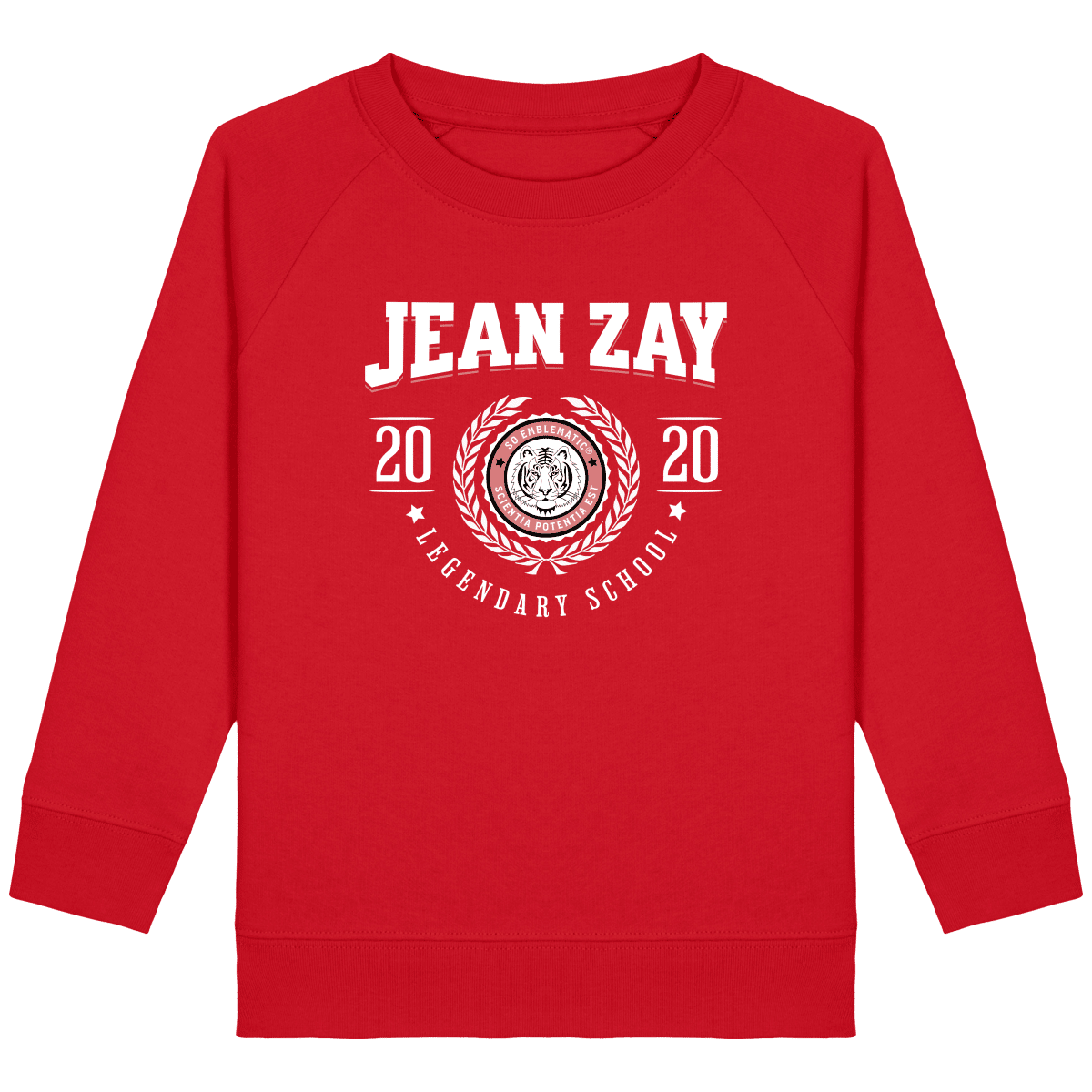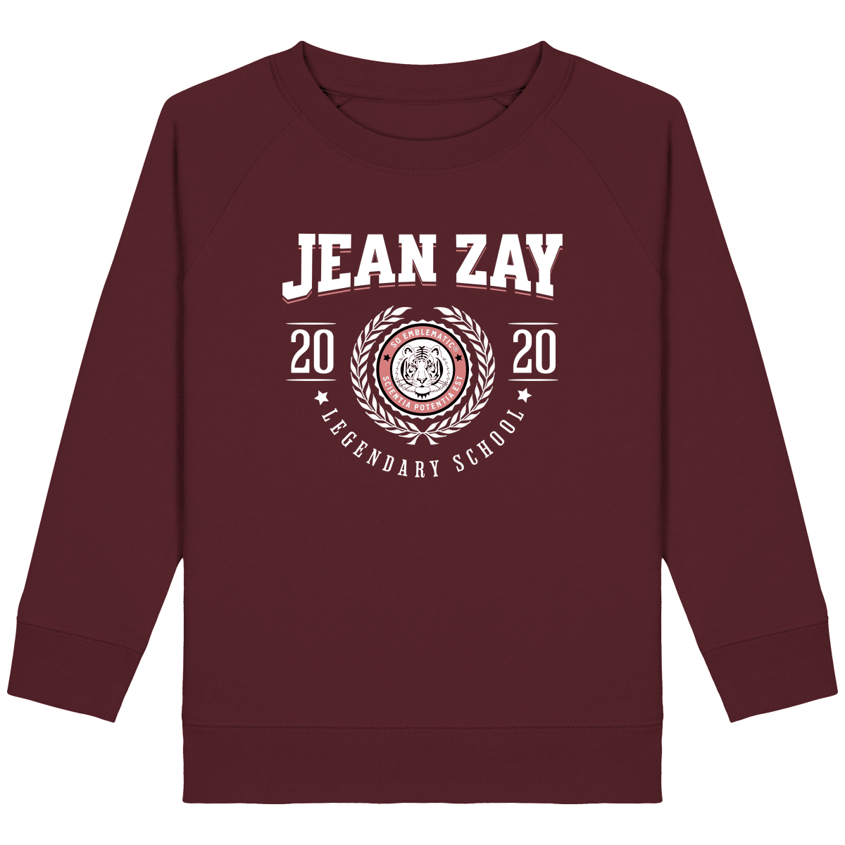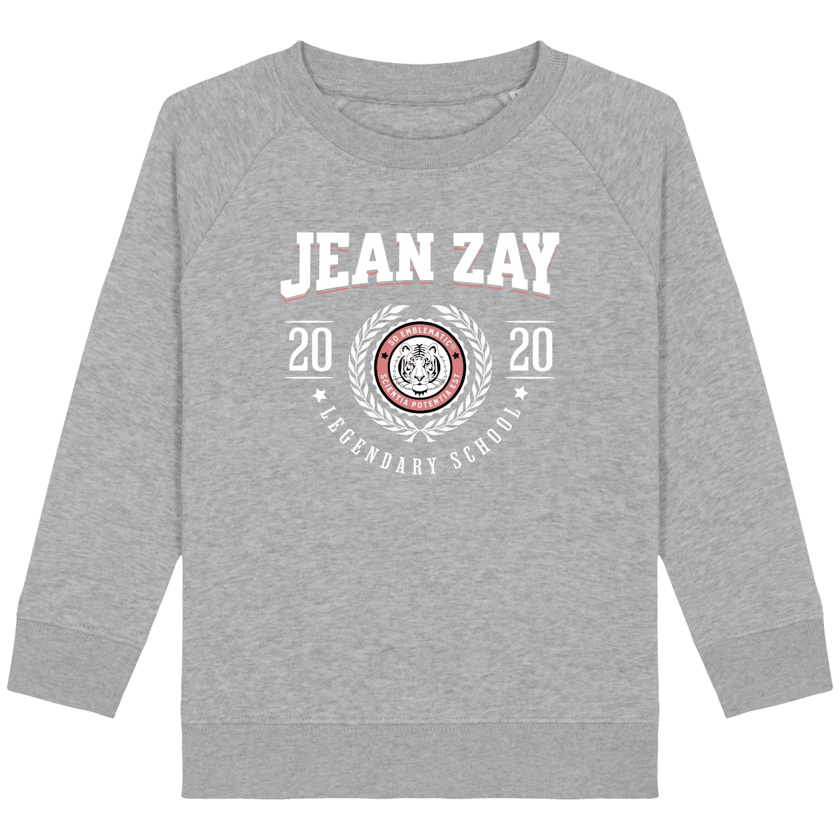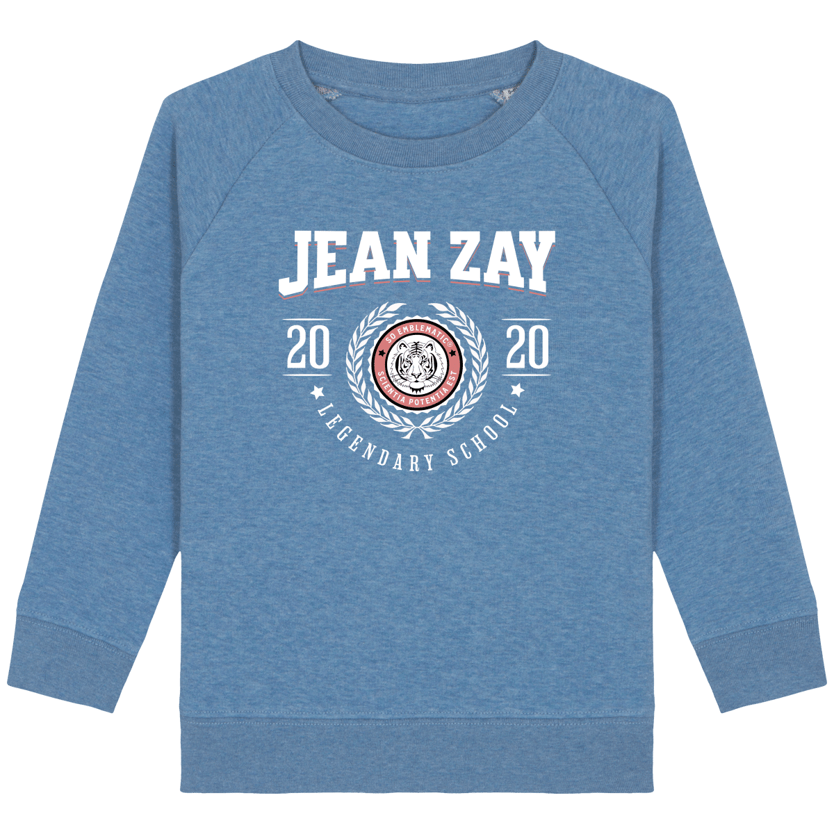 Sweat Enfant University JEAN ZAY. Sweat enfant col rond en coton BIO de la marque STANLEY STELLA. Manches raglan, Col en côte 1×1. Bande de propreté intérieur col en jersey. 1/2 lune intérieur col dans la matière principale, Côte 1×1 au bas de manches et bas de corps. Surpiqûre double aux emmanchures, bas de manches et bas de corps. Sweat intérieur en molleton non brossé (non duveteux). 85% coton biologique filé et peigné, 15% polyester recyclé. Coupe normale du 3/4 ans au 12/14 ans. 300 G/M².