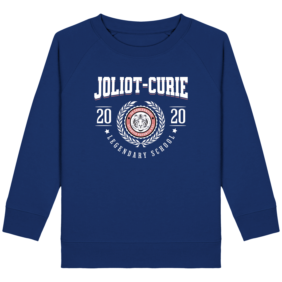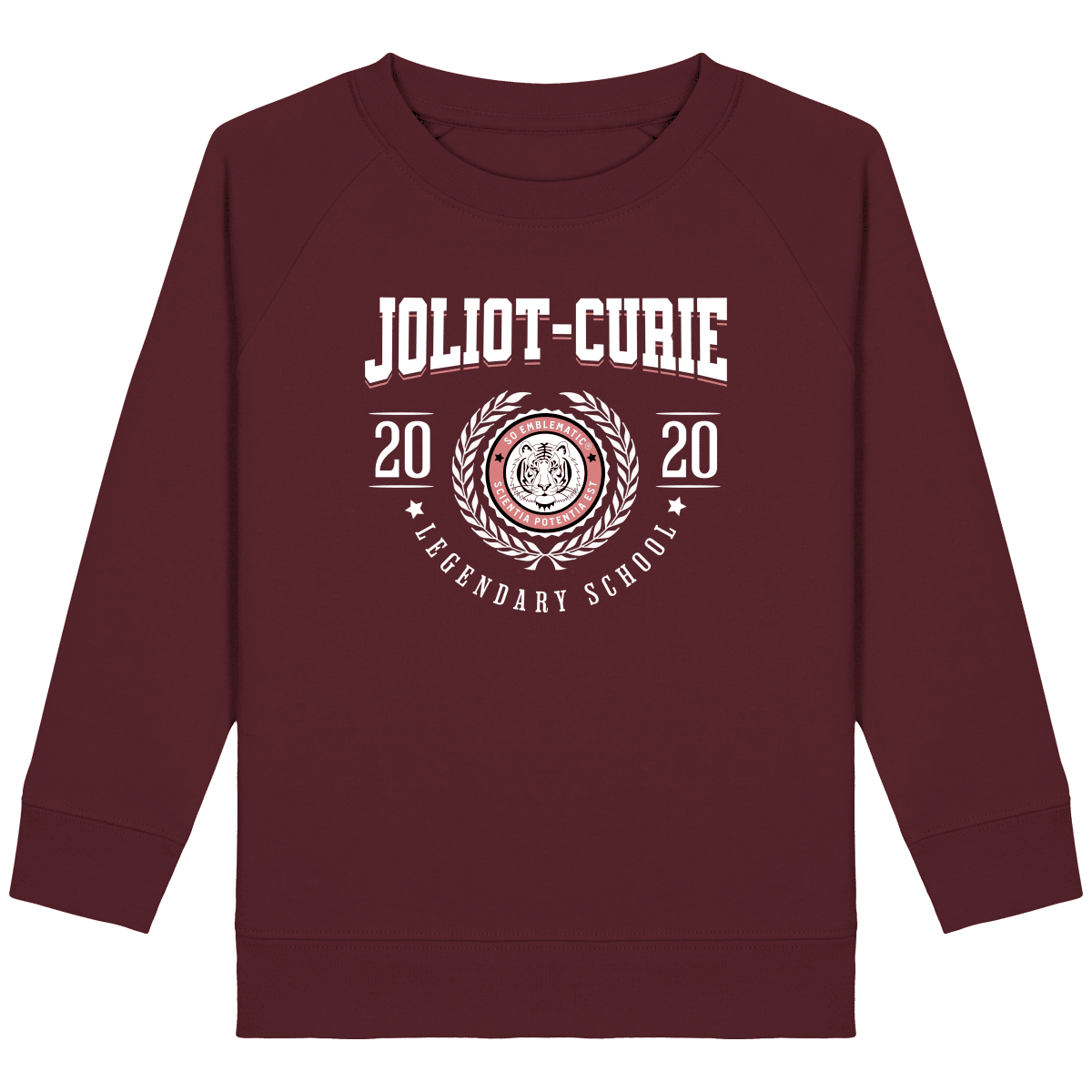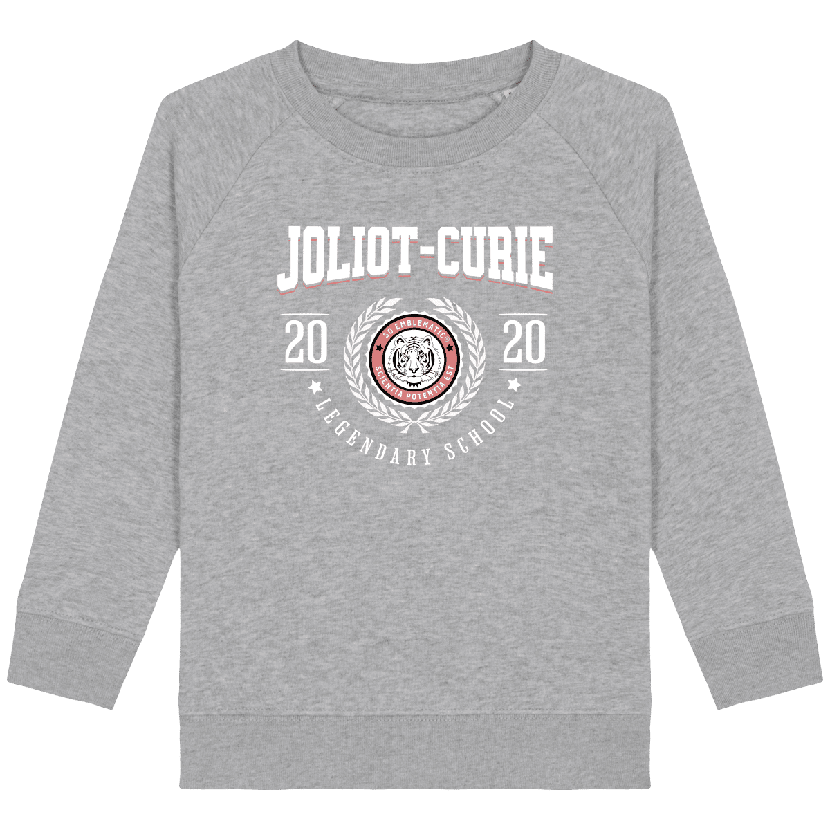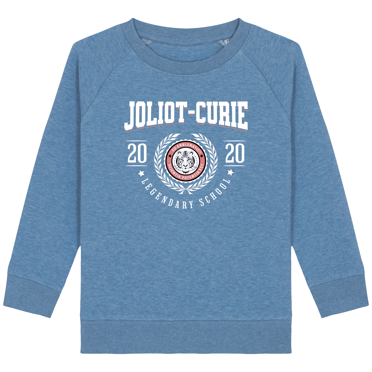 Sweat Enfant University JOLIOT-CURIE. Sweat enfant col rond en coton BIO de la marque STANLEY STELLA. Manches raglan, Col en côte 1×1. Bande de propreté intérieur col en jersey. 1/2 lune intérieur col dans la matière principale, Côte 1×1 au bas de manches et bas de corps. Surpiqûre double aux emmanchures, bas de manches et bas de corps. Sweat intérieur en molleton non brossé (non duveteux). 85% coton biologique filé et peigné, 15% polyester recyclé. Coupe normale du 3/4 ans au 12/14 ans. 300 G/M².