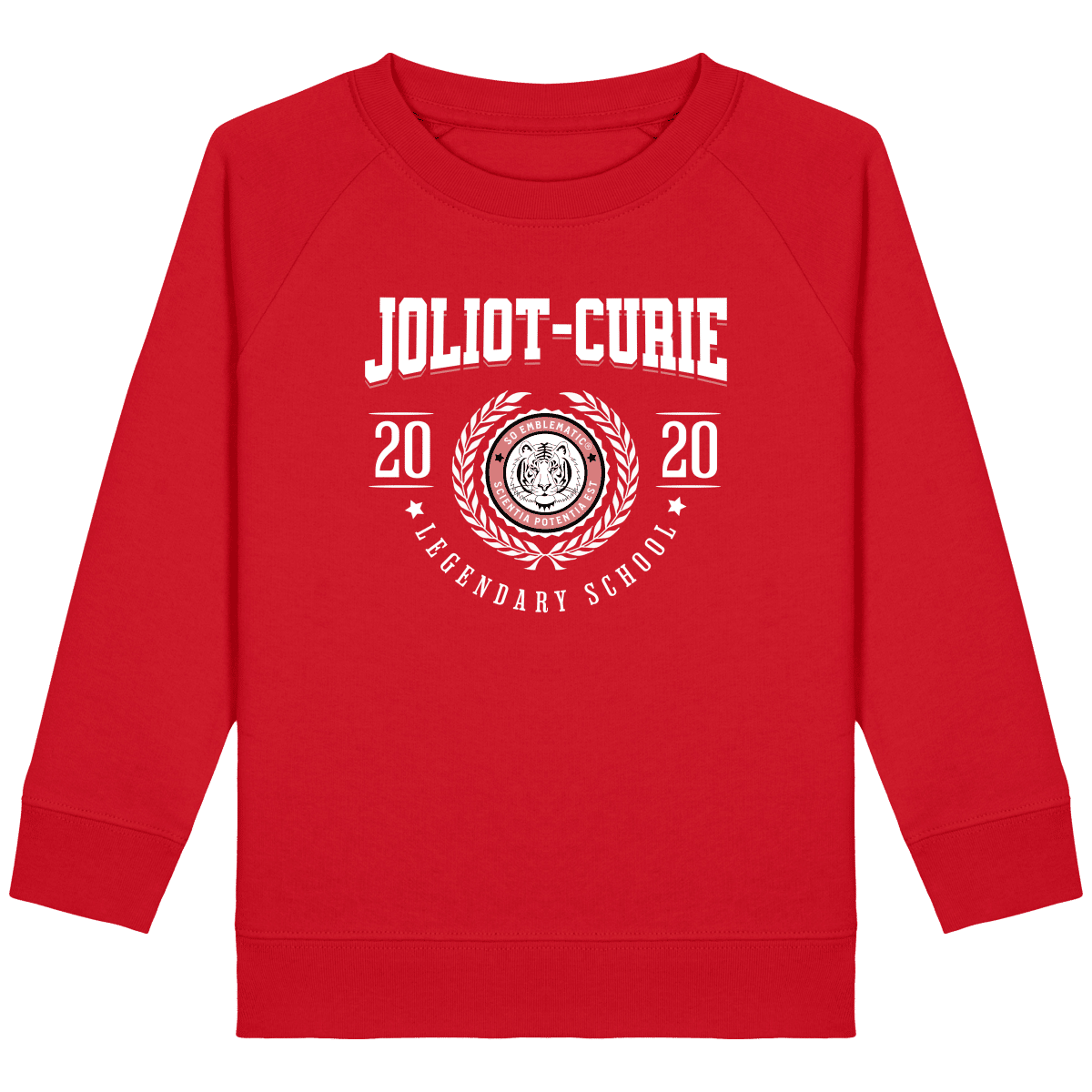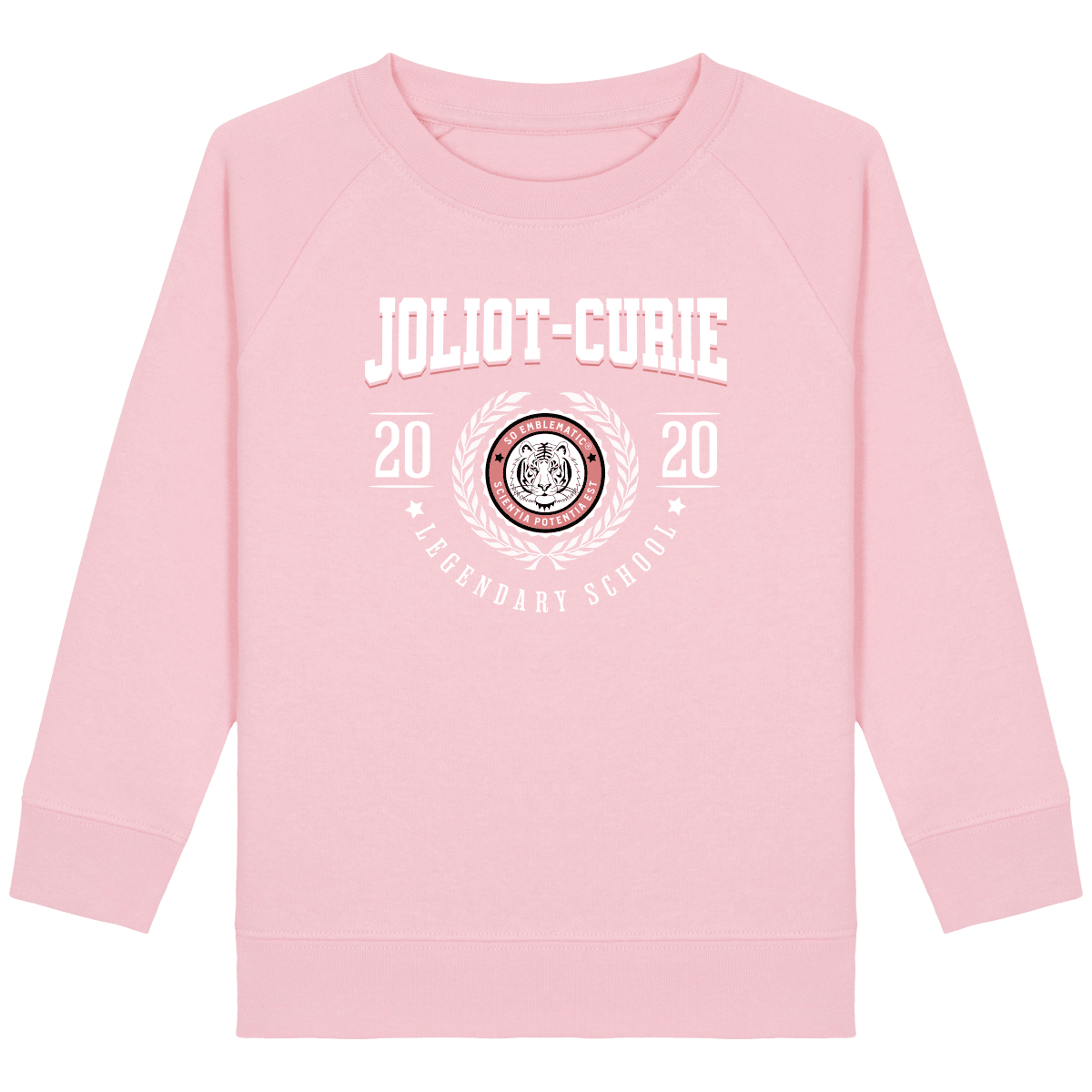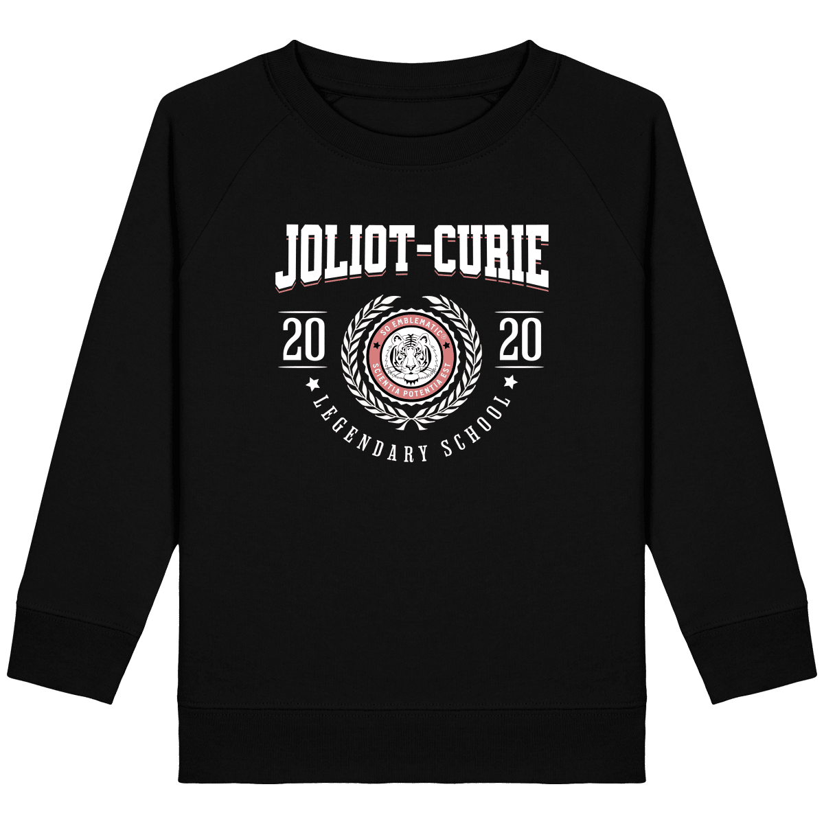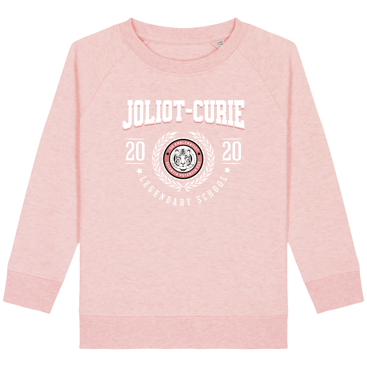 Sweat Enfant University JOLIOT-CURIE. Sweat enfant col rond en coton BIO de la marque STANLEY STELLA. Manches raglan, Col en côte 1×1. Bande de propreté intérieur col en jersey. 1/2 lune intérieur col dans la matière principale, Côte 1×1 au bas de manches et bas de corps. Surpiqûre double aux emmanchures, bas de manches et bas de corps. Sweat intérieur en molleton non brossé (non duveteux). 85% coton biologique filé et peigné, 15% polyester recyclé. Coupe normale du 3/4 ans au 12/14 ans. 300 G/M².