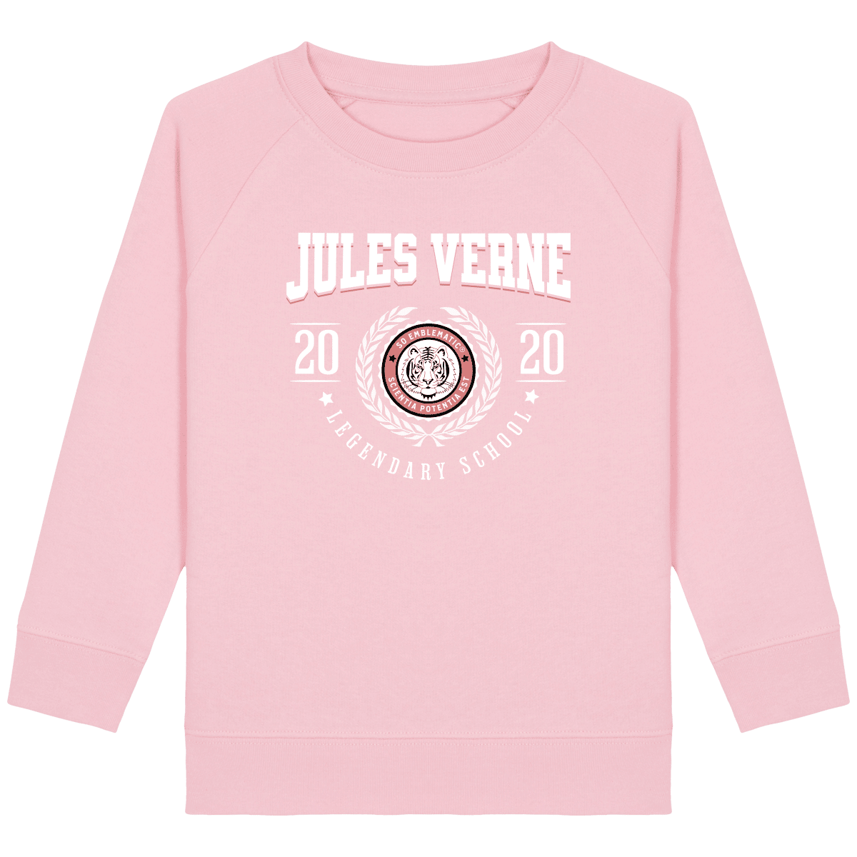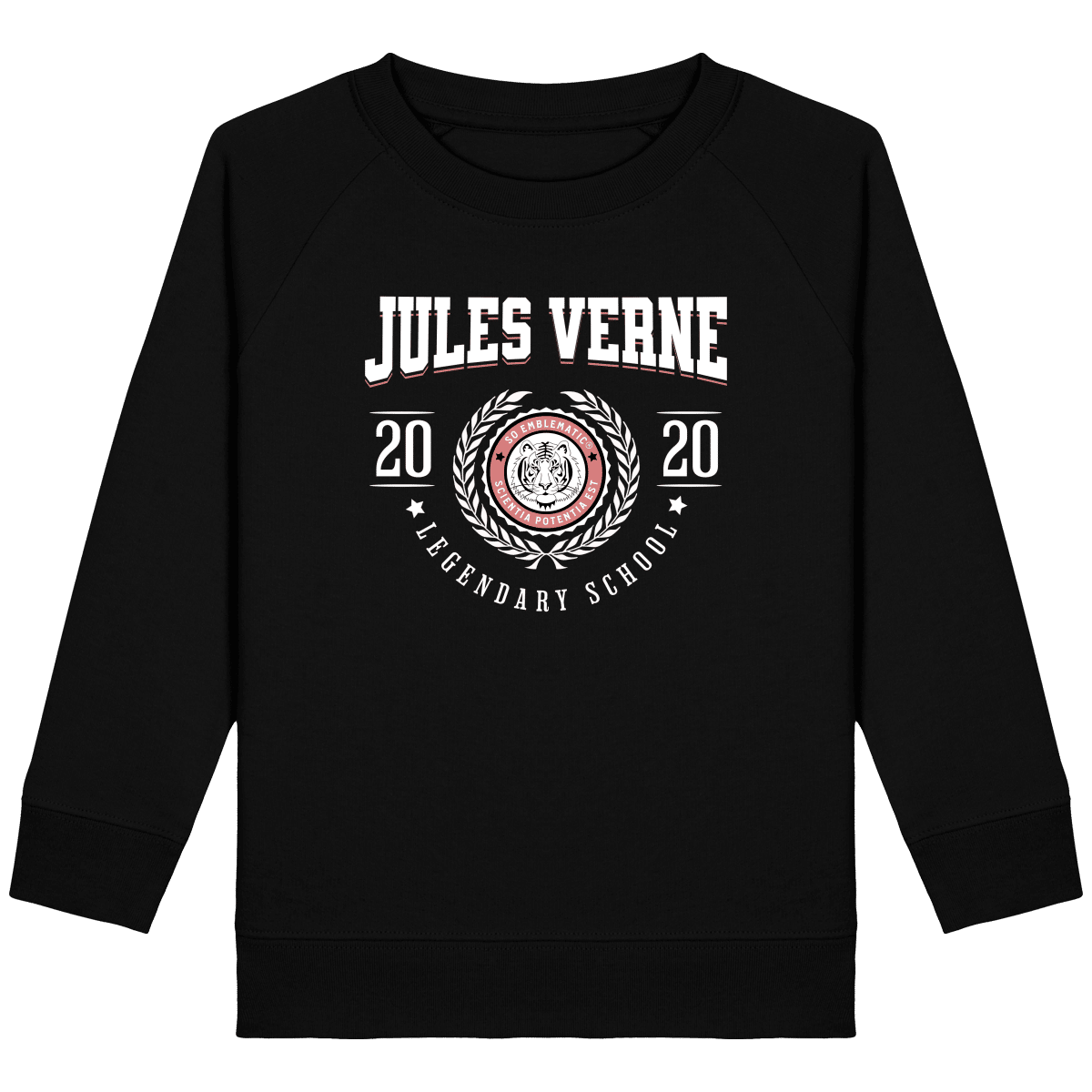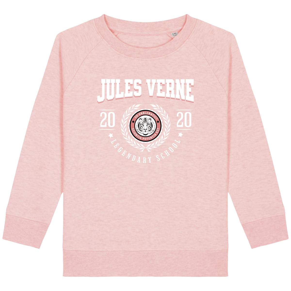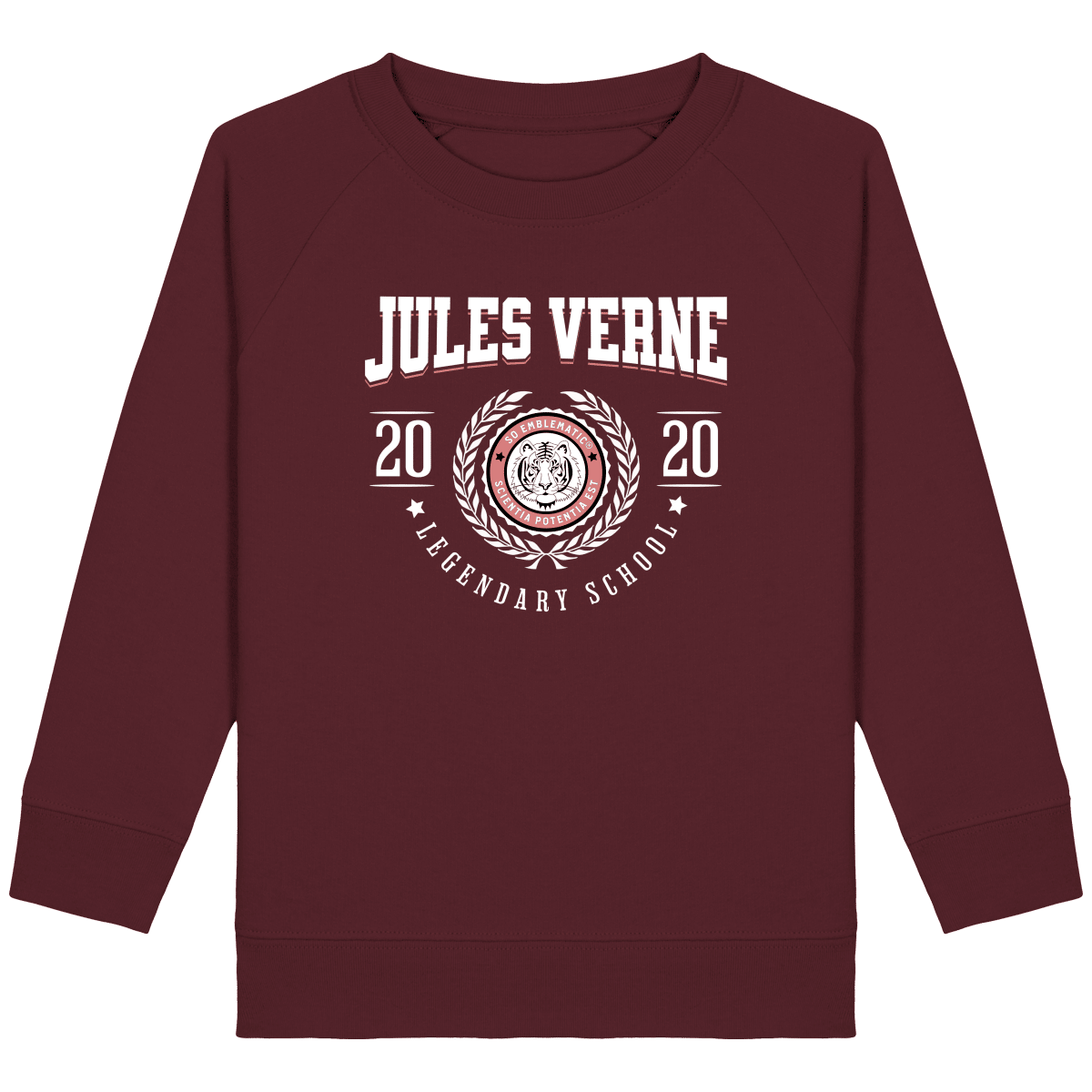 Sweat Enfant University JULES VERNE. Sweat enfant col rond en coton BIO de la marque STANLEY STELLA. Manches raglan, Col en côte 1×1. Bande de propreté intérieur col en jersey. 1/2 lune intérieur col dans la matière principale, Côte 1×1 au bas de manches et bas de corps. Surpiqûre double aux emmanchures, bas de manches et bas de corps. Sweat intérieur en molleton non brossé (non duveteux). 85% coton biologique filé et peigné, 15% polyester recyclé. Coupe normale du 3/4 ans au 12/14 ans. 300 G/M².