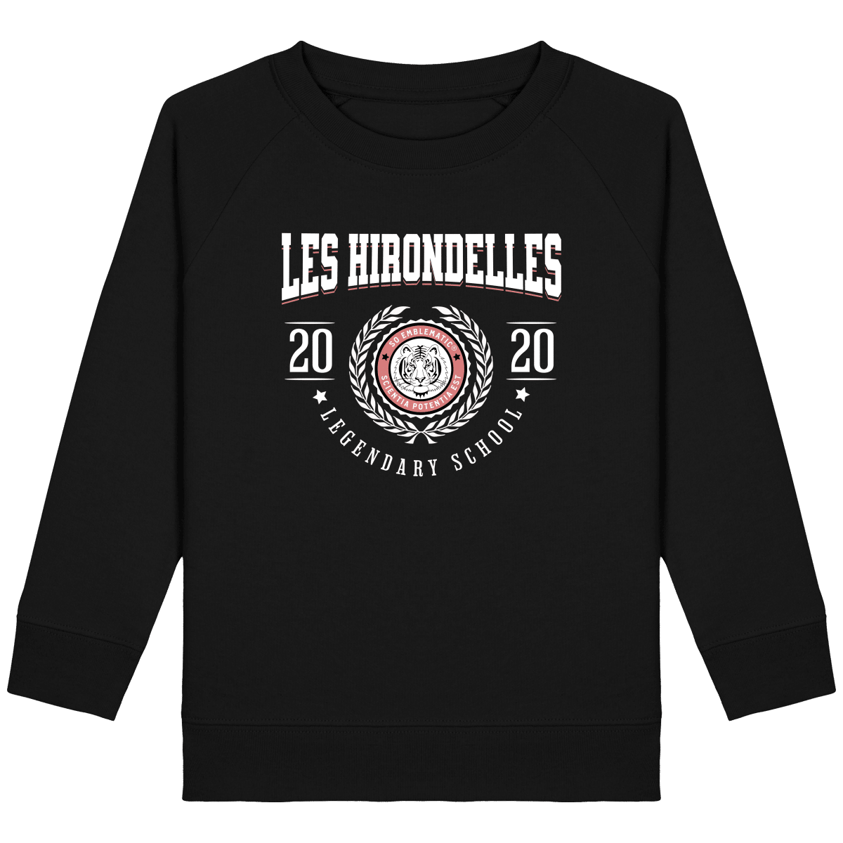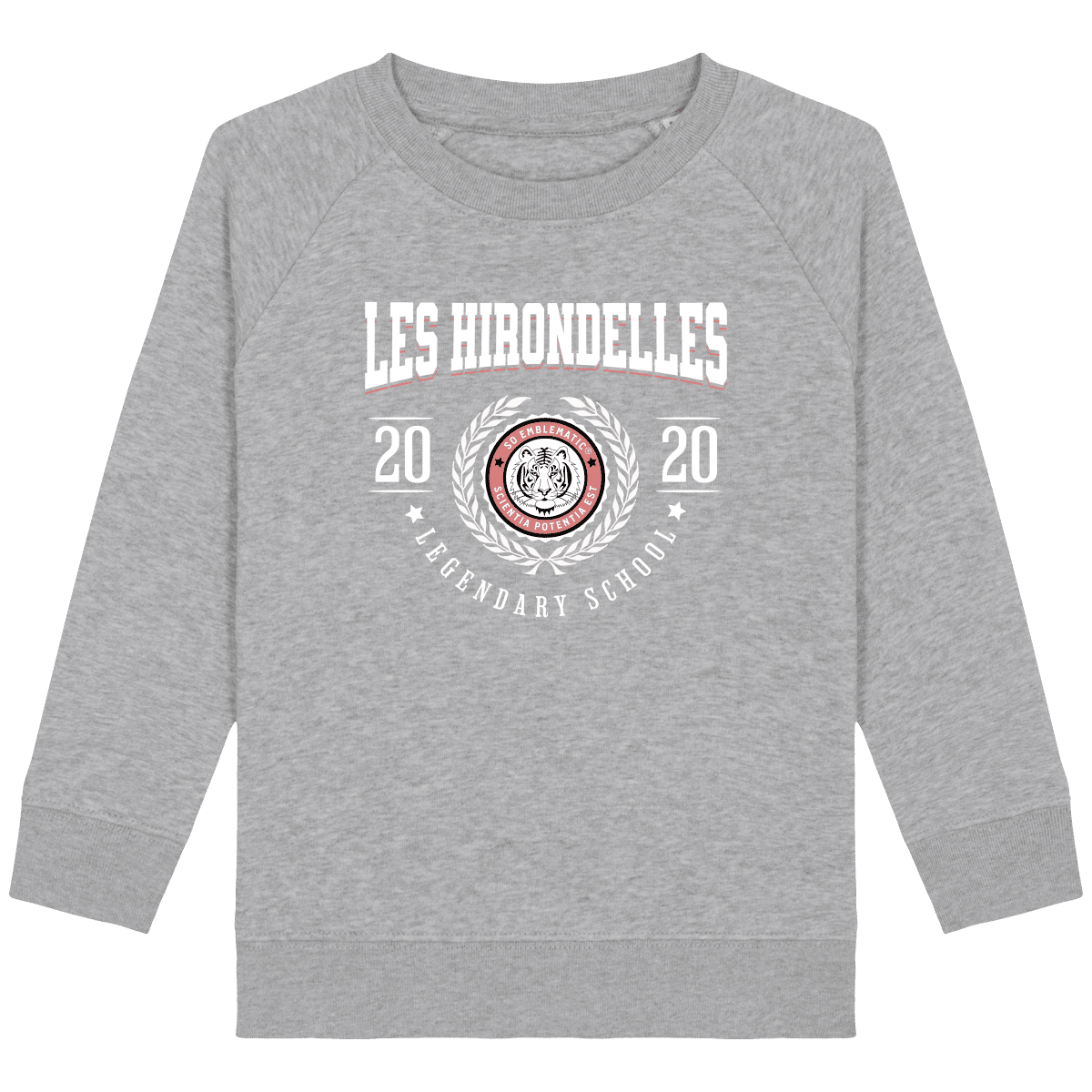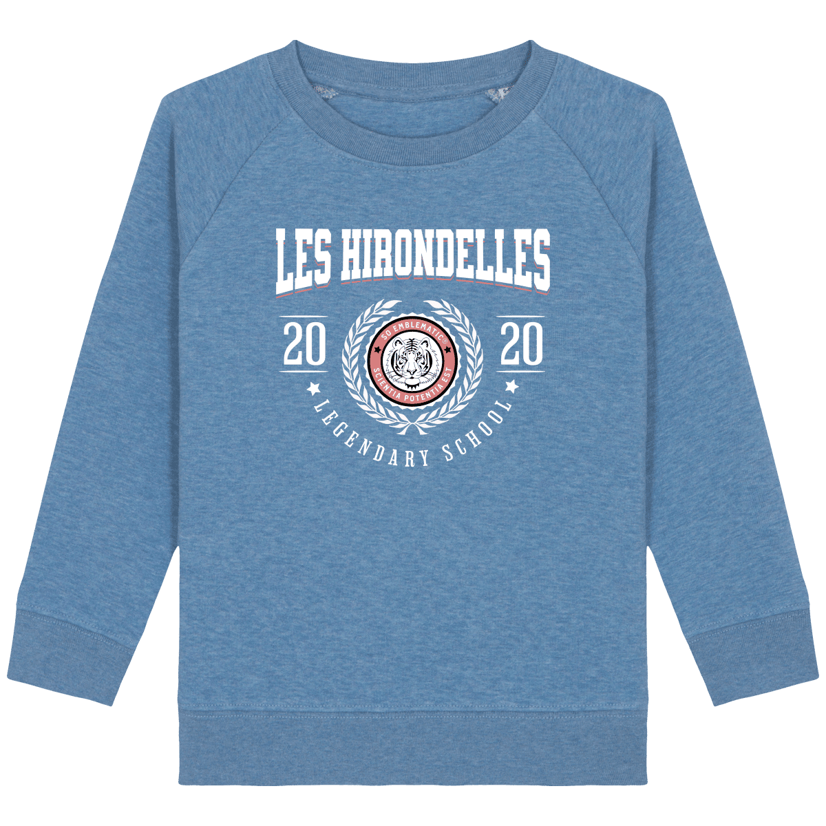 Sweat Enfant University LES HIRONDELLES. Sweat enfant col rond en coton BIO de la marque STANLEY STELLA. Manches raglan, Col en côte 1×1. Bande de propreté intérieur col en jersey. 1/2 lune intérieur col dans la matière principale, Côte 1×1 au bas de manches et bas de corps. Surpiqûre double aux emmanchures, bas de manches et bas de corps. Sweat intérieur en molleton non brossé (non duveteux). 85% coton biologique filé et peigné, 15% polyester recyclé. Coupe normale du 3/4 ans au 12/14 ans. 300 G/M².