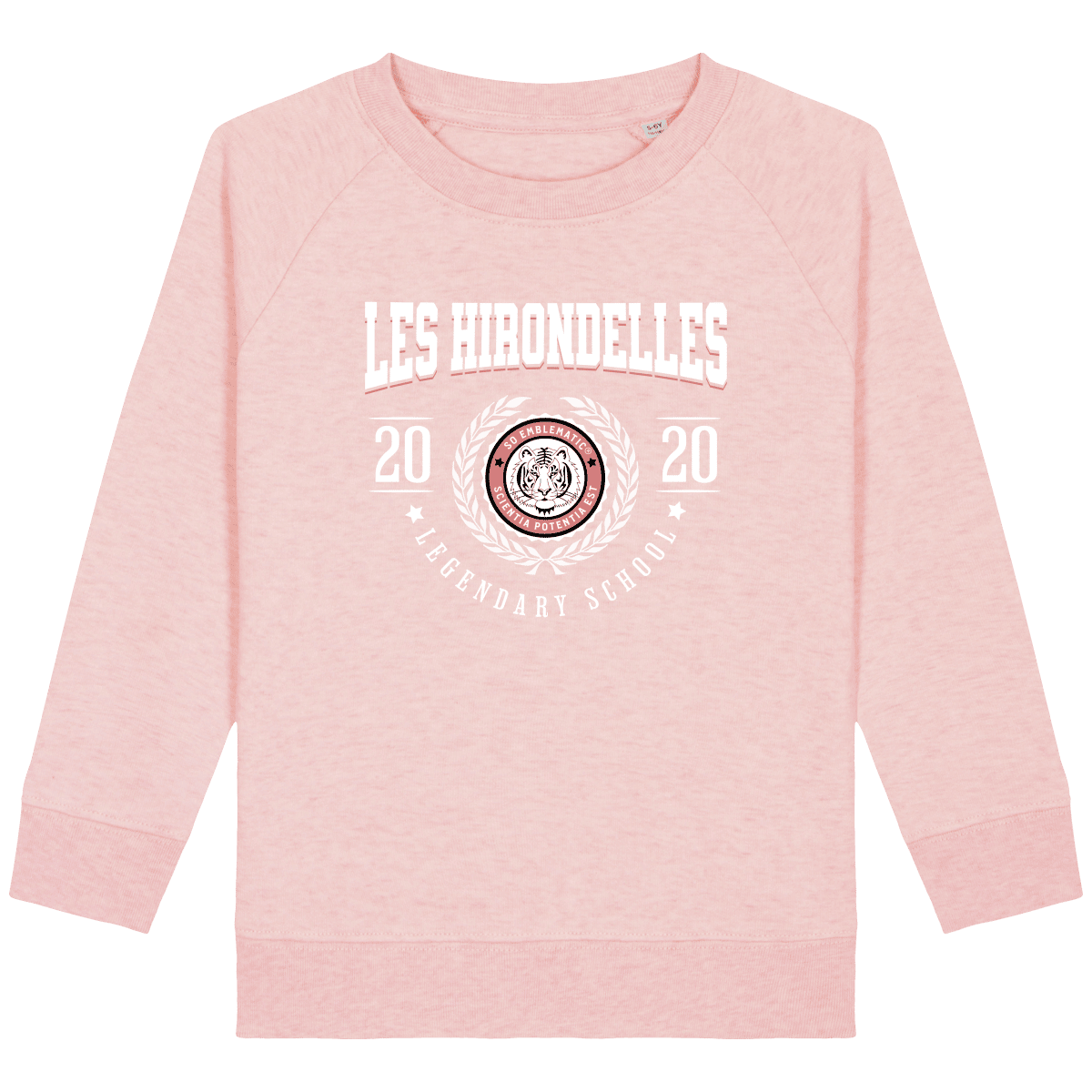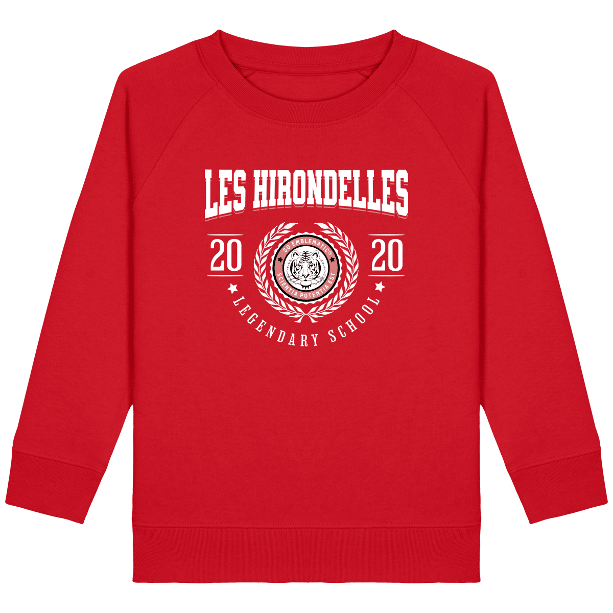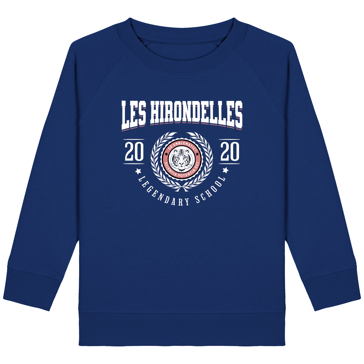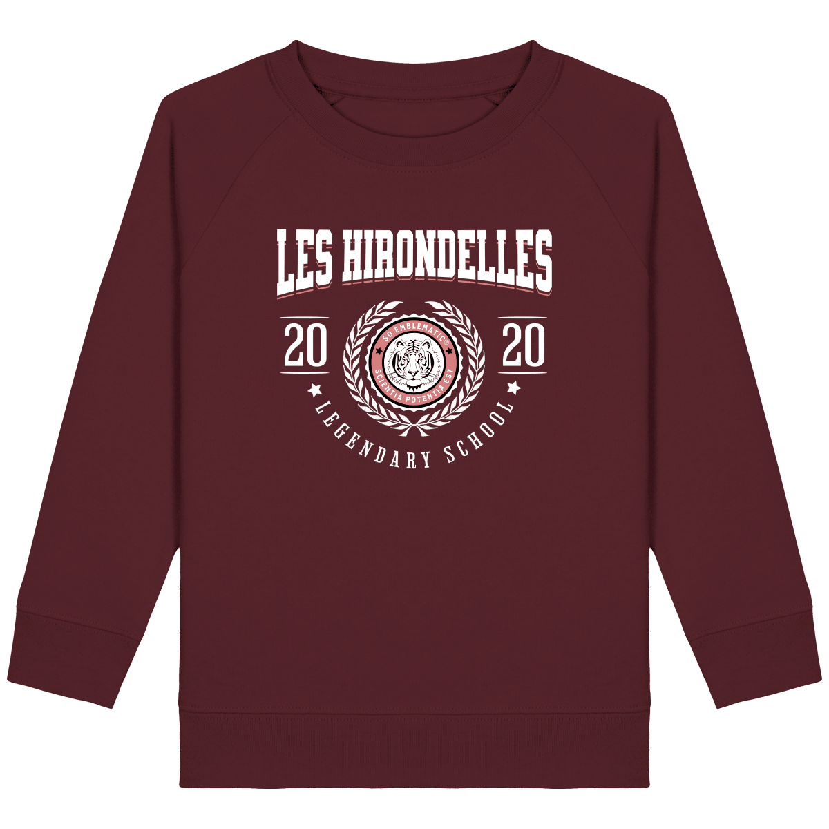 Sweat Enfant University LES HIRONDELLES. Sweat enfant col rond en coton BIO de la marque STANLEY STELLA. Manches raglan, Col en côte 1×1. Bande de propreté intérieur col en jersey. 1/2 lune intérieur col dans la matière principale, Côte 1×1 au bas de manches et bas de corps. Surpiqûre double aux emmanchures, bas de manches et bas de corps. Sweat intérieur en molleton non brossé (non duveteux). 85% coton biologique filé et peigné, 15% polyester recyclé. Coupe normale du 3/4 ans au 12/14 ans. 300 G/M².