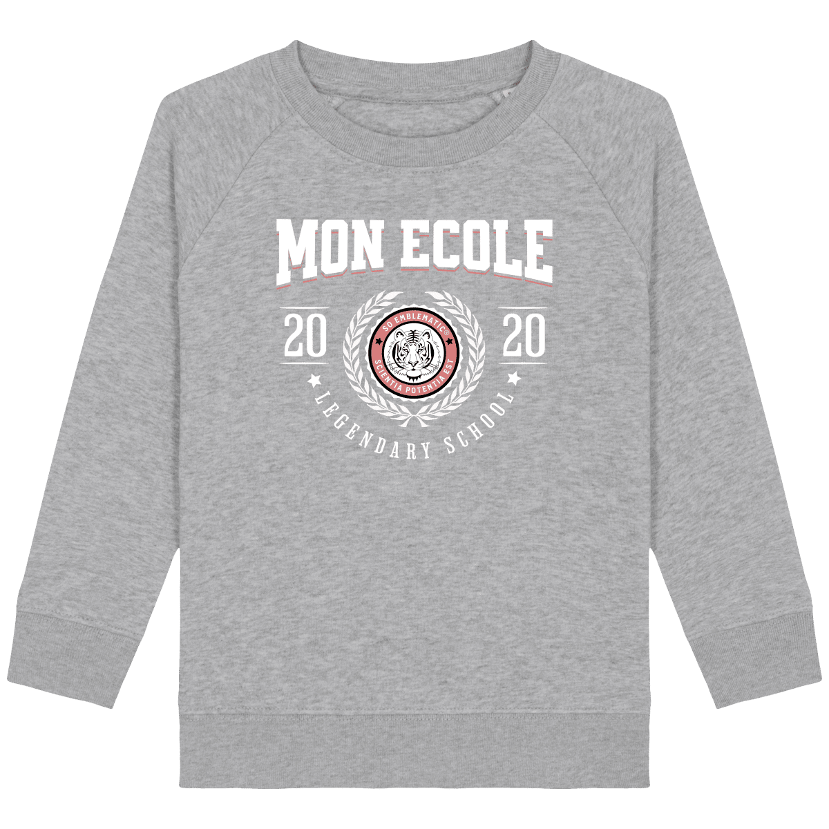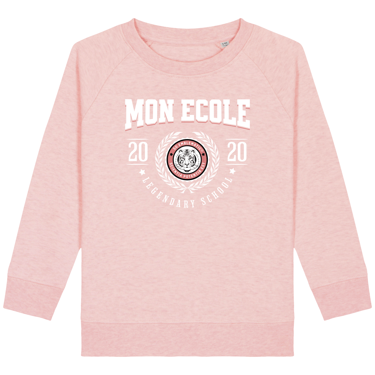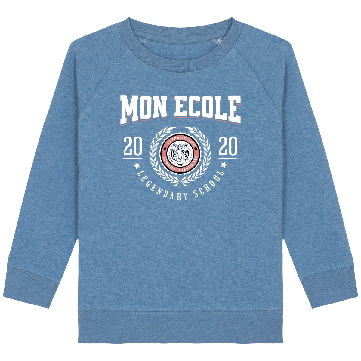Sweat Enfant University MON ECOLE. Sweat enfant col rond en coton BIO de la marque STANLEY STELLA. Manches raglan, Col en côte 1×1. Bande de propreté intérieur col en jersey. 1/2 lune intérieur col dans la matière principale, Côte 1×1 au bas de manches et bas de corps. Surpiqûre double aux emmanchures, bas de manches et bas de corps. Sweat intérieur en molleton non brossé (non duveteux). 85% coton biologique filé et peigné, 15% polyester recyclé. Coupe normale du 3/4 ans au 12/14 ans. 300 G/M².