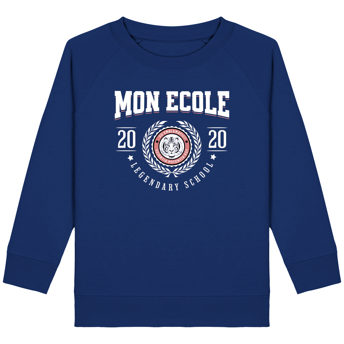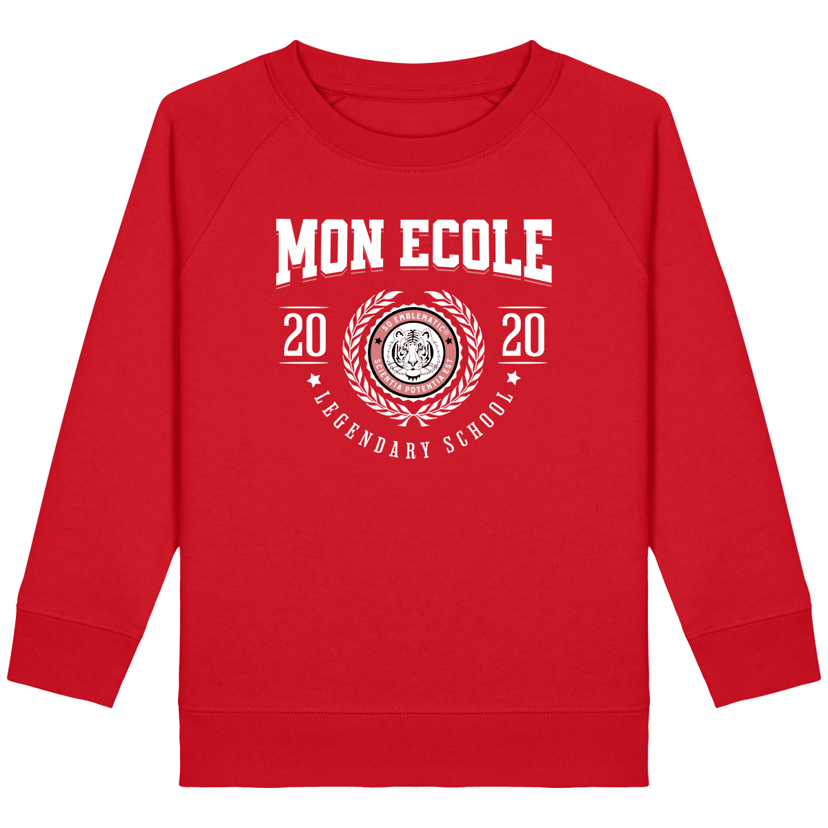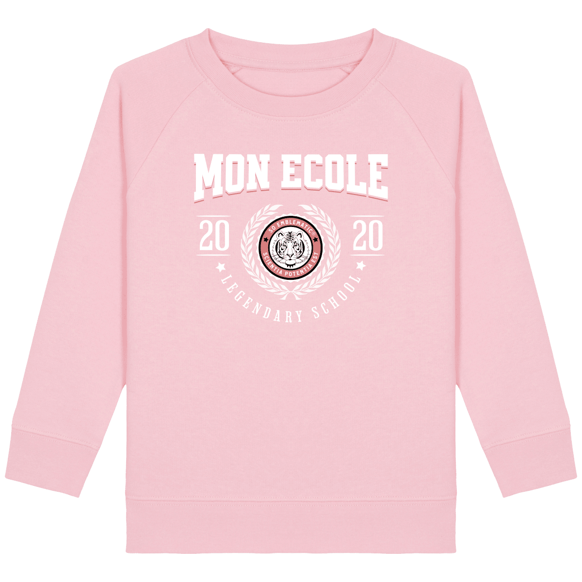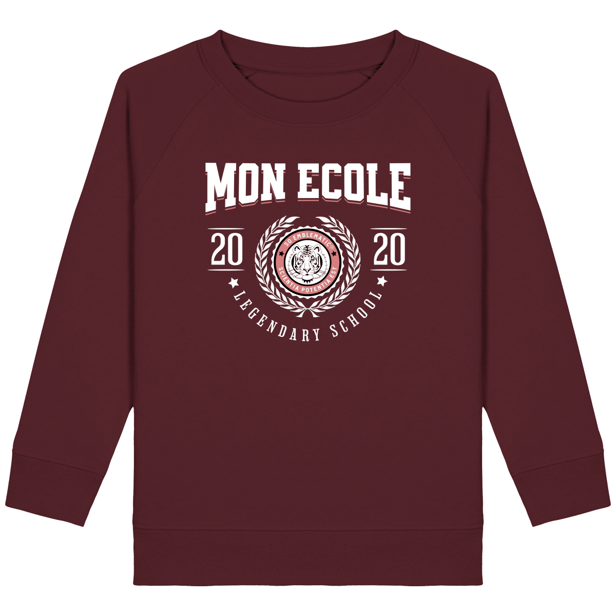 Sweat Enfant University MON ECOLE. Sweat enfant col rond en coton BIO de la marque STANLEY STELLA. Manches raglan, Col en côte 1×1. Bande de propreté intérieur col en jersey. 1/2 lune intérieur col dans la matière principale, Côte 1×1 au bas de manches et bas de corps. Surpiqûre double aux emmanchures, bas de manches et bas de corps. Sweat intérieur en molleton non brossé (non duveteux). 85% coton biologique filé et peigné, 15% polyester recyclé. Coupe normale du 3/4 ans au 12/14 ans. 300 G/M².