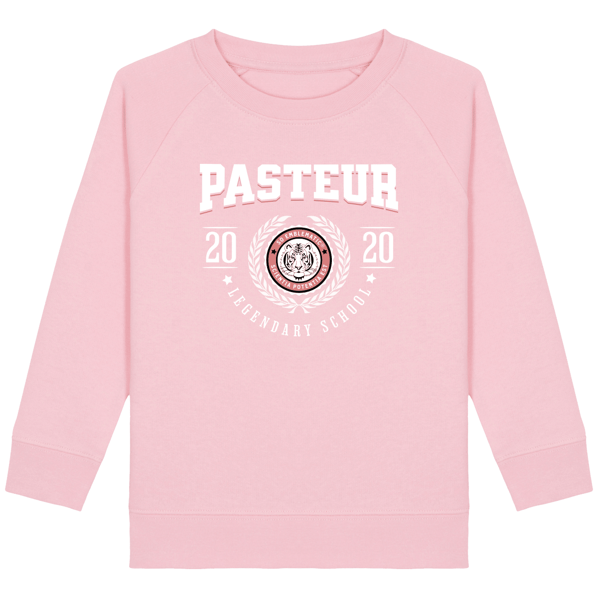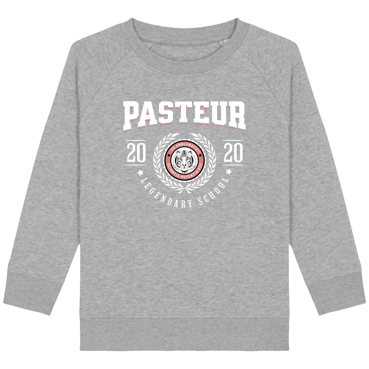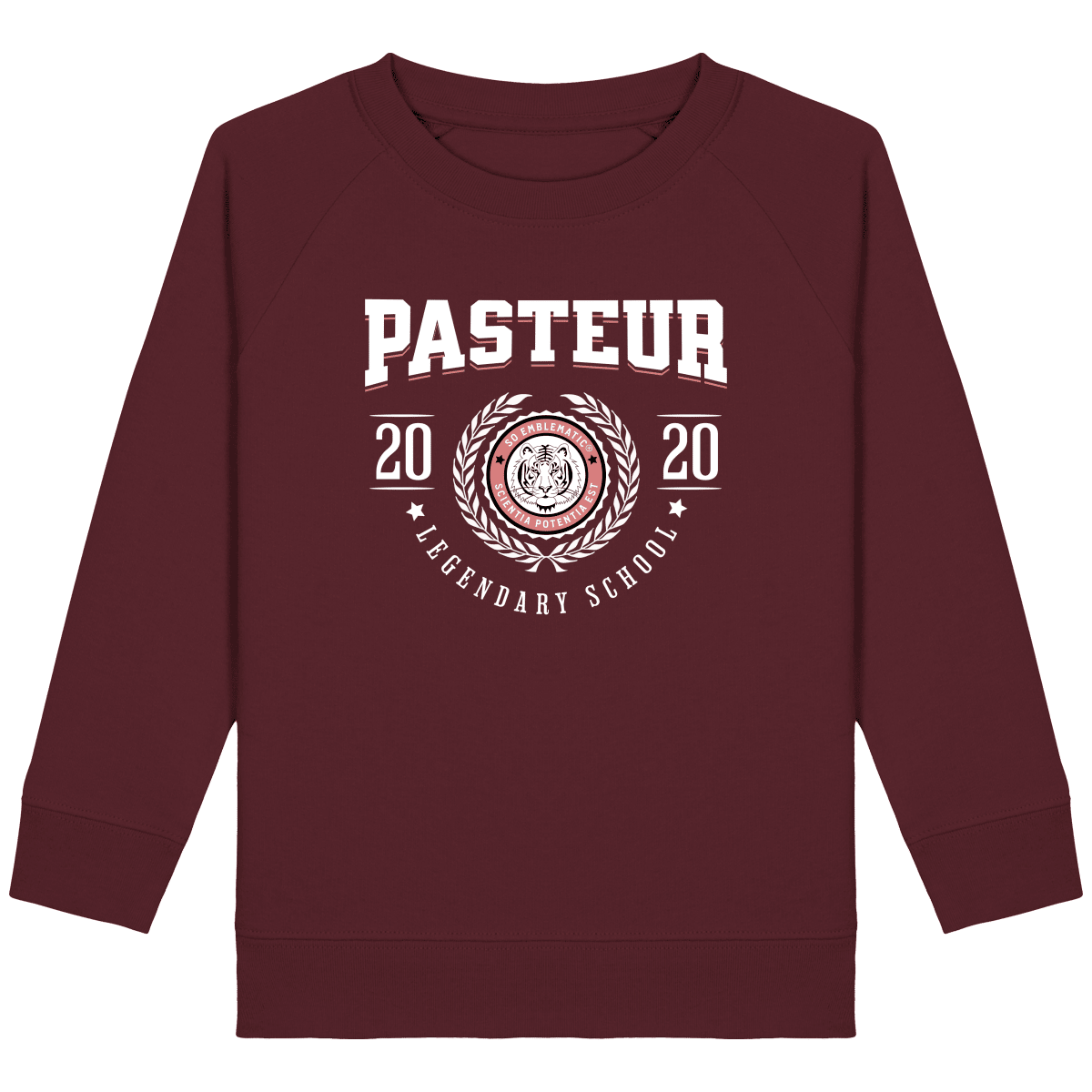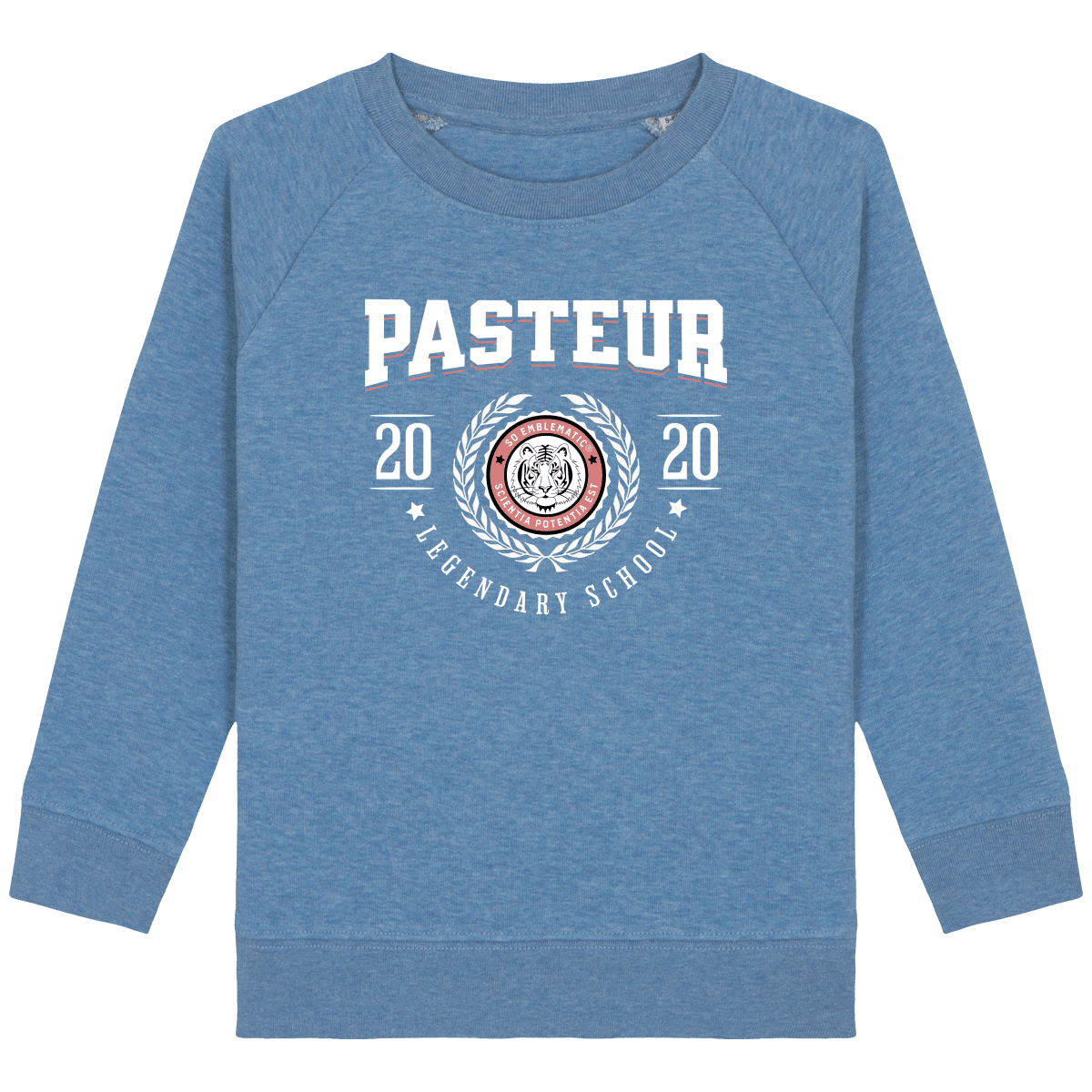 Sweat Enfant University PASTEUR. Sweat enfant col rond en coton BIO de la marque STANLEY STELLA. Manches raglan, Col en côte 1×1. Bande de propreté intérieur col en jersey. 1/2 lune intérieur col dans la matière principale, Côte 1×1 au bas de manches et bas de corps. Surpiqûre double aux emmanchures, bas de manches et bas de corps. Sweat intérieur en molleton non brossé (non duveteux). 85% coton biologique filé et peigné, 15% polyester recyclé. Coupe normale du 3/4 ans au 12/14 ans. 300 G/M².
