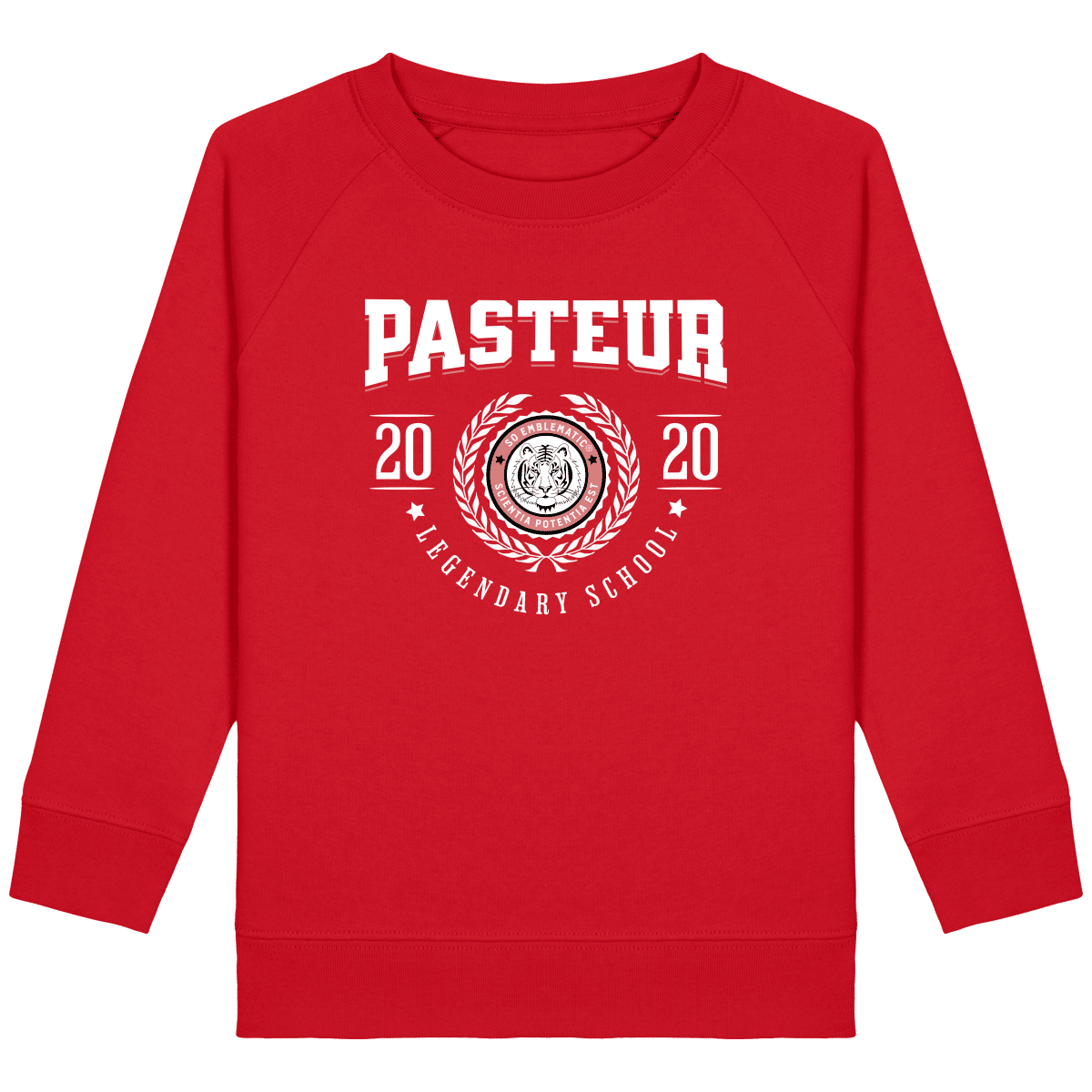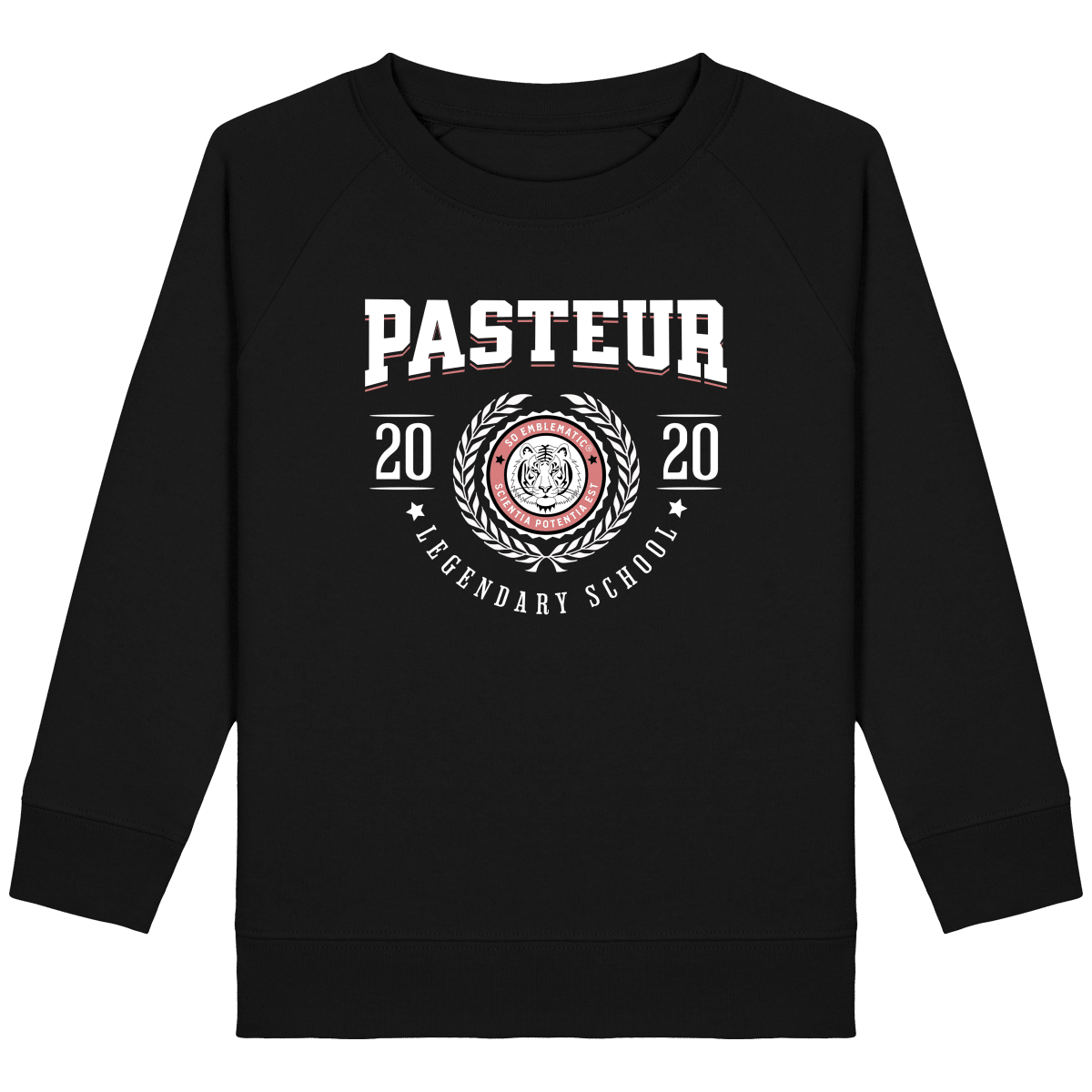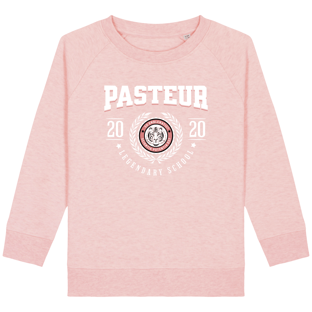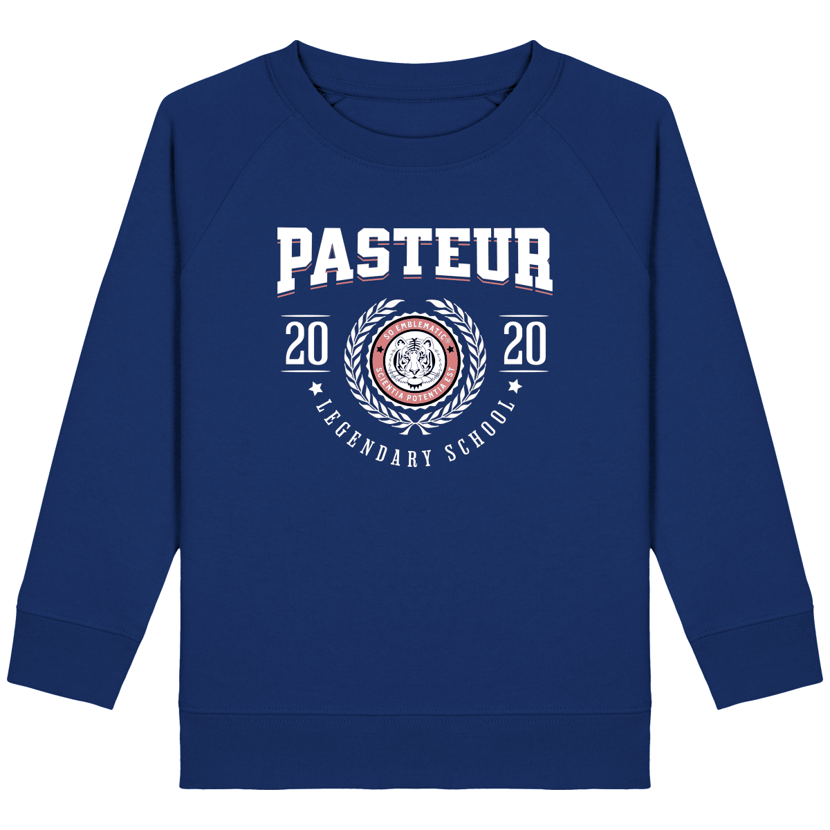 Sweat Enfant University PASTEUR. Sweat enfant col rond en coton BIO de la marque STANLEY STELLA. Manches raglan, Col en côte 1×1. Bande de propreté intérieur col en jersey. 1/2 lune intérieur col dans la matière principale, Côte 1×1 au bas de manches et bas de corps. Surpiqûre double aux emmanchures, bas de manches et bas de corps. Sweat intérieur en molleton non brossé (non duveteux). 85% coton biologique filé et peigné, 15% polyester recyclé. Coupe normale du 3/4 ans au 12/14 ans. 300 G/M².
