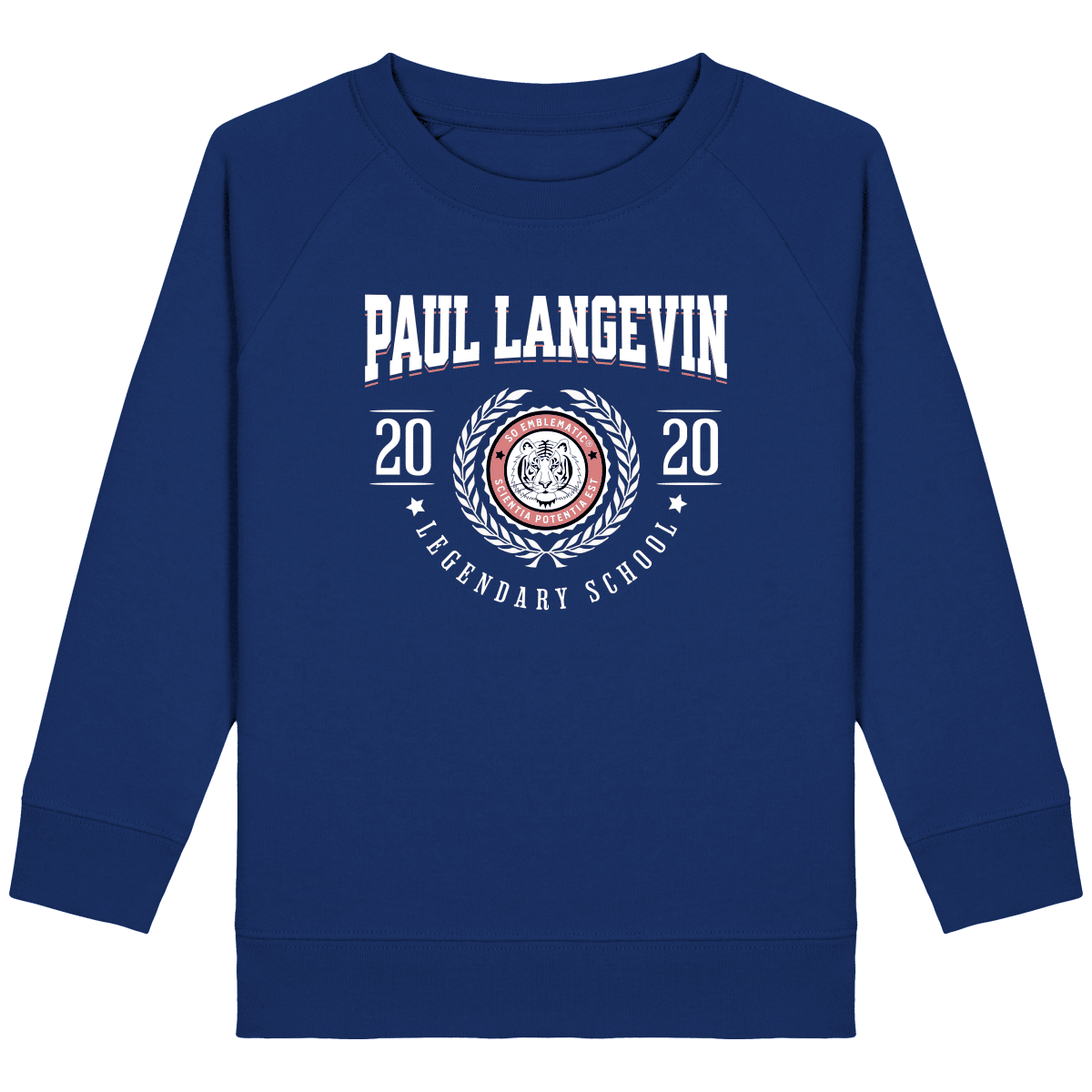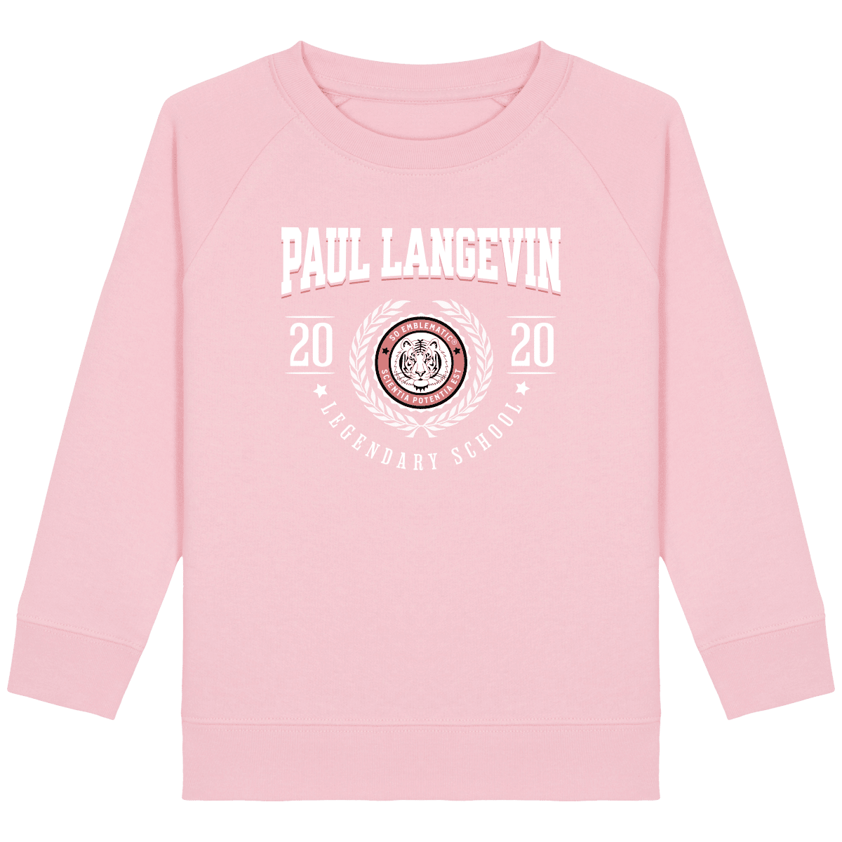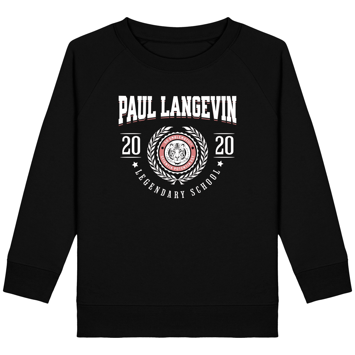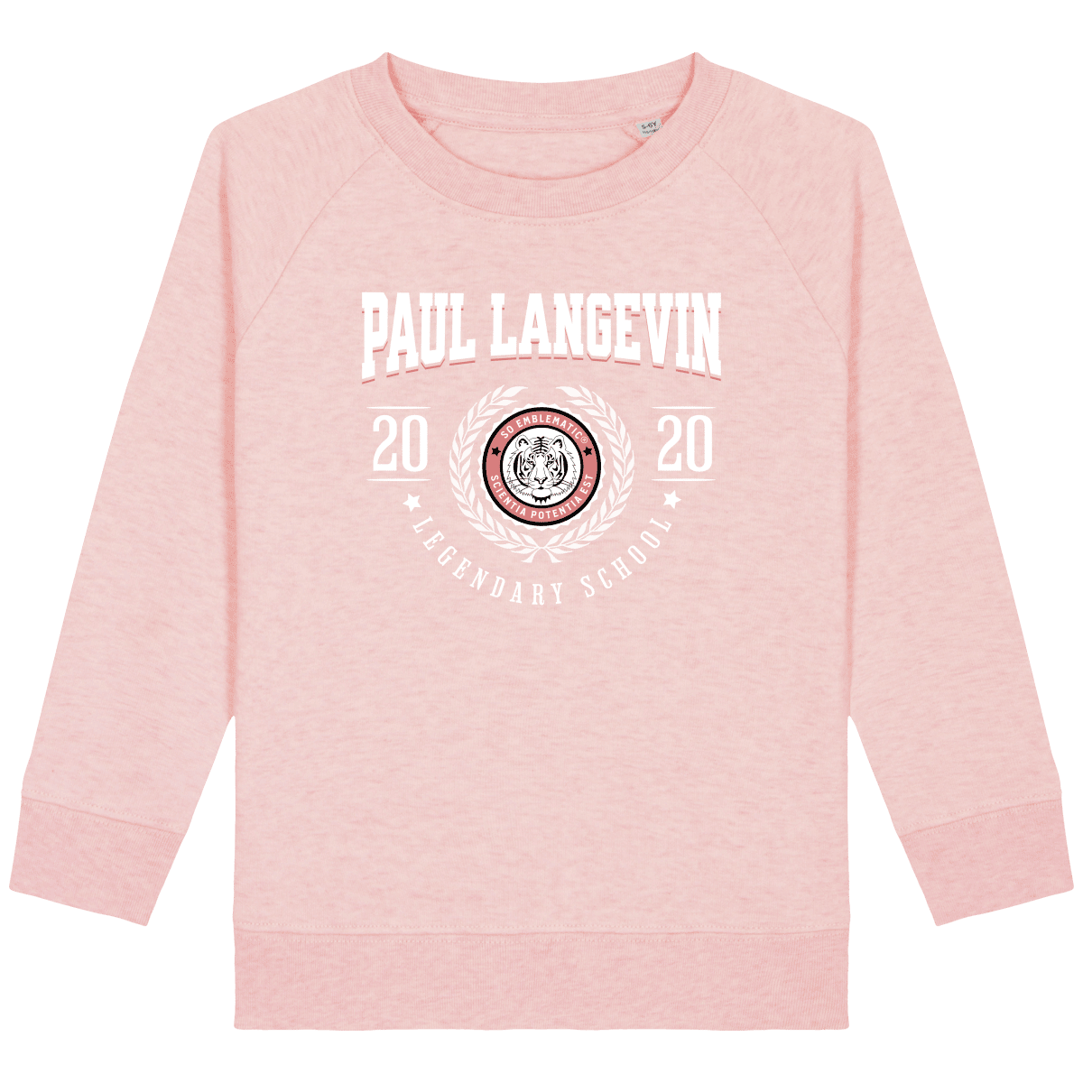 Sweat Enfant University PAUL LANGEVIN. Sweat enfant col rond en coton BIO de la marque STANLEY STELLA. Manches raglan, Col en côte 1×1. Bande de propreté intérieur col en jersey. 1/2 lune intérieur col dans la matière principale, Côte 1×1 au bas de manches et bas de corps. Surpiqûre double aux emmanchures, bas de manches et bas de corps. Sweat intérieur en molleton non brossé (non duveteux). 85% coton biologique filé et peigné, 15% polyester recyclé. Coupe normale du 3/4 ans au 12/14 ans. 300 G/M².