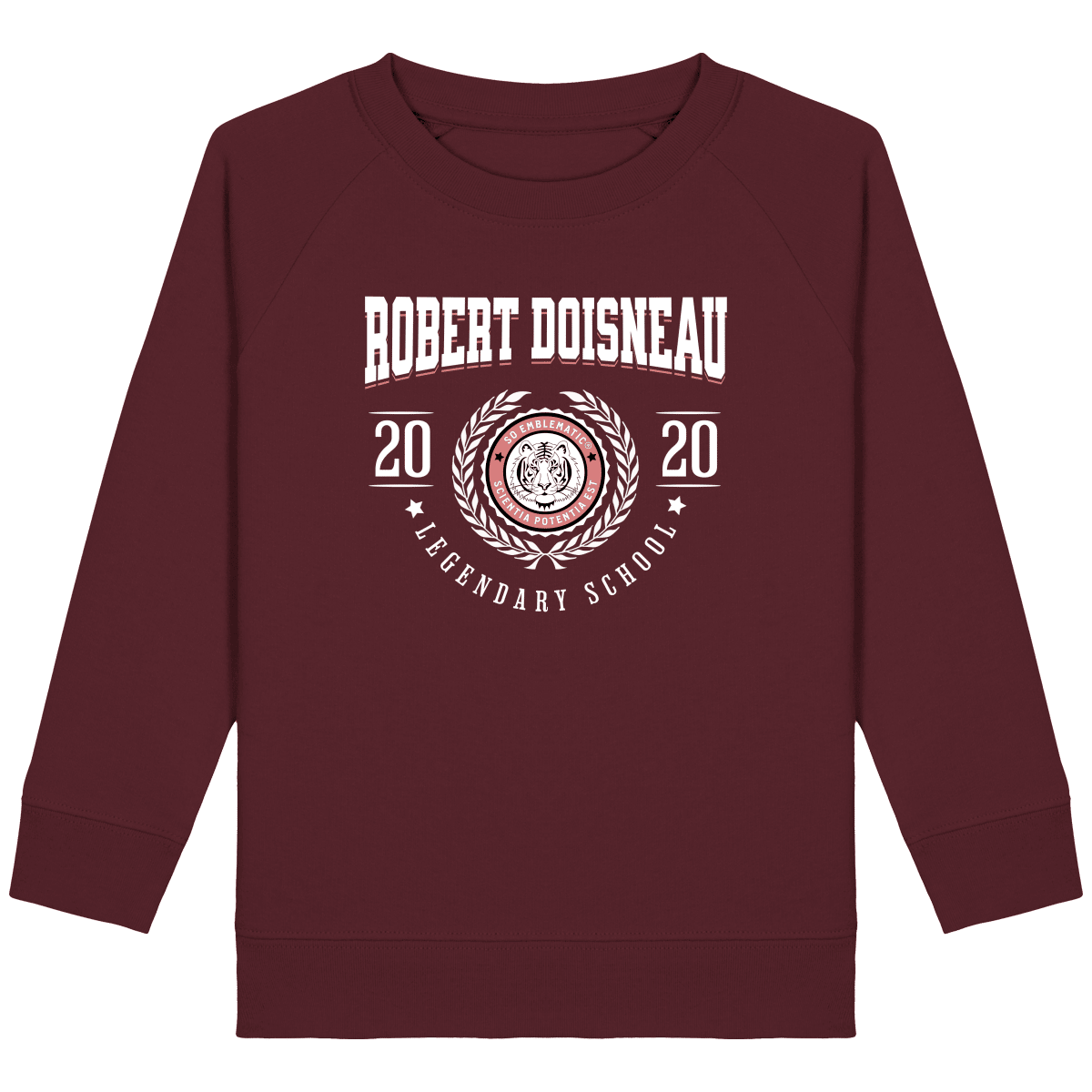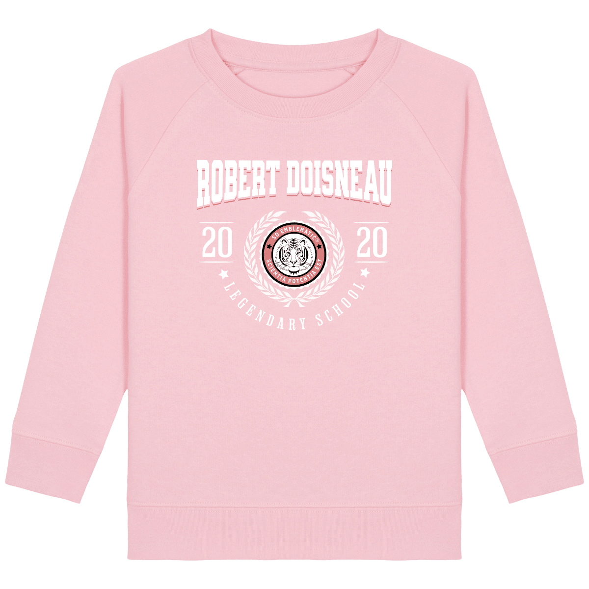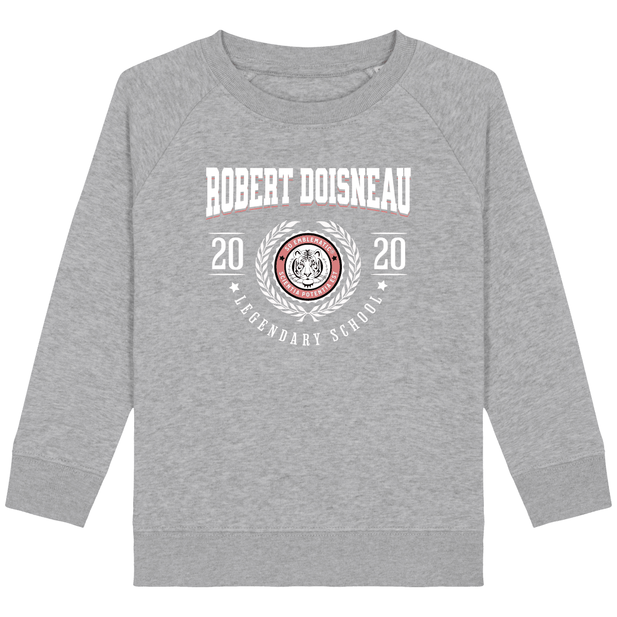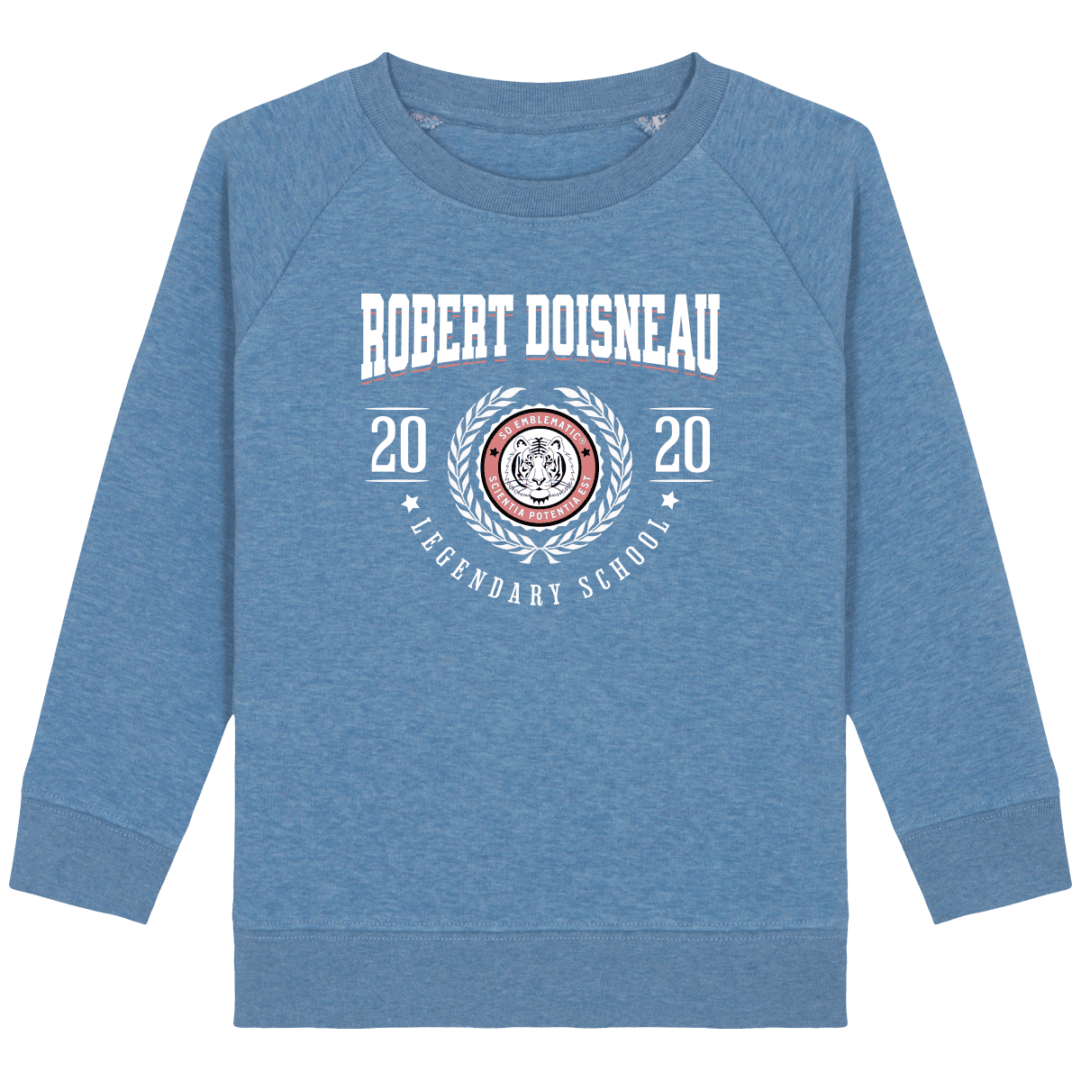 Sweat Enfant University ROBERT DOISNEAU. Sweat enfant col rond en coton BIO de la marque STANLEY STELLA. Manches raglan, Col en côte 1×1. Bande de propreté intérieur col en jersey. 1/2 lune intérieur col dans la matière principale, Côte 1×1 au bas de manches et bas de corps. Surpiqûre double aux emmanchures, bas de manches et bas de corps. Sweat intérieur en molleton non brossé (non duveteux). 85% coton biologique filé et peigné, 15% polyester recyclé. Coupe normale du 3/4 ans au 12/14 ans. 300 G/M².